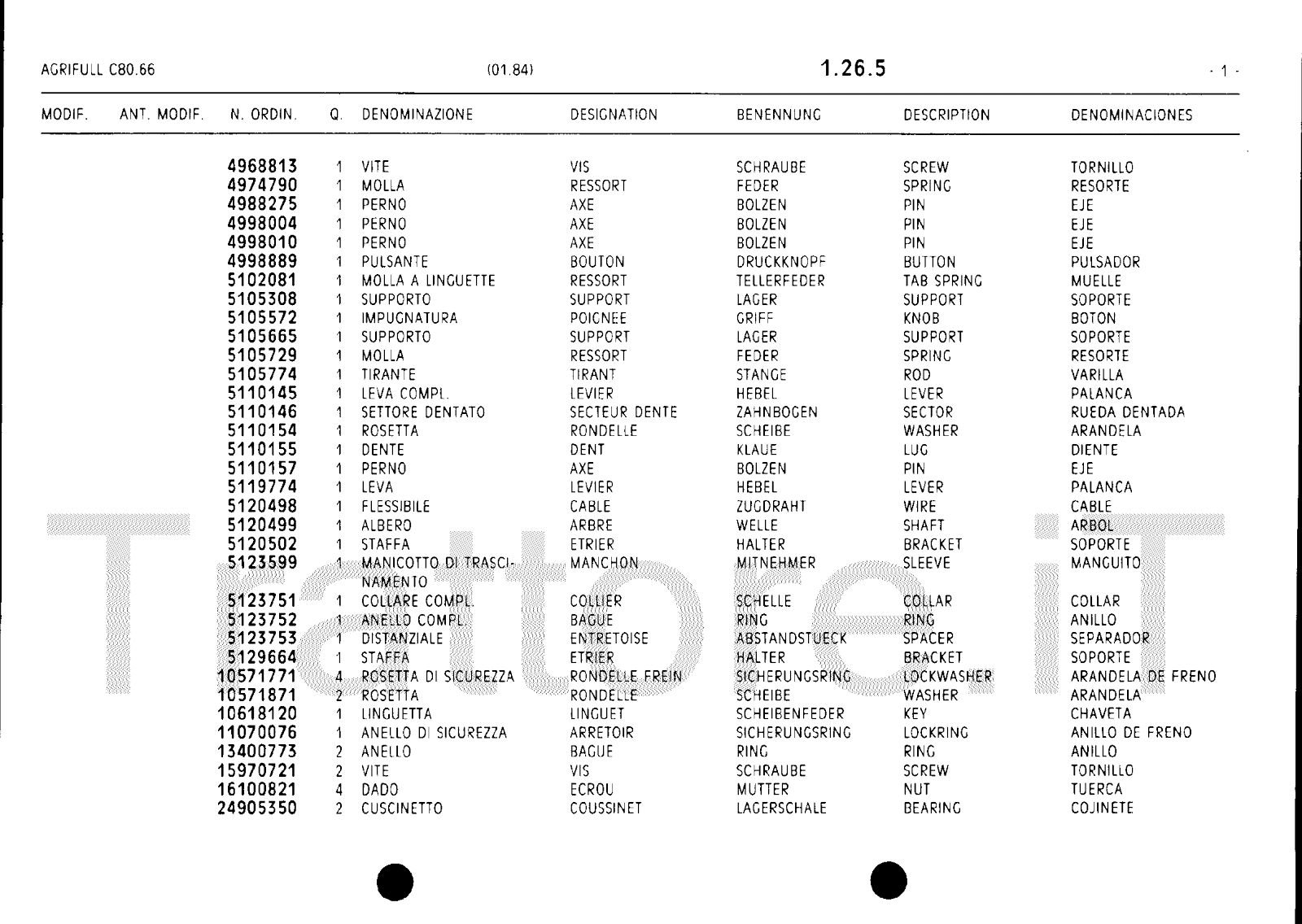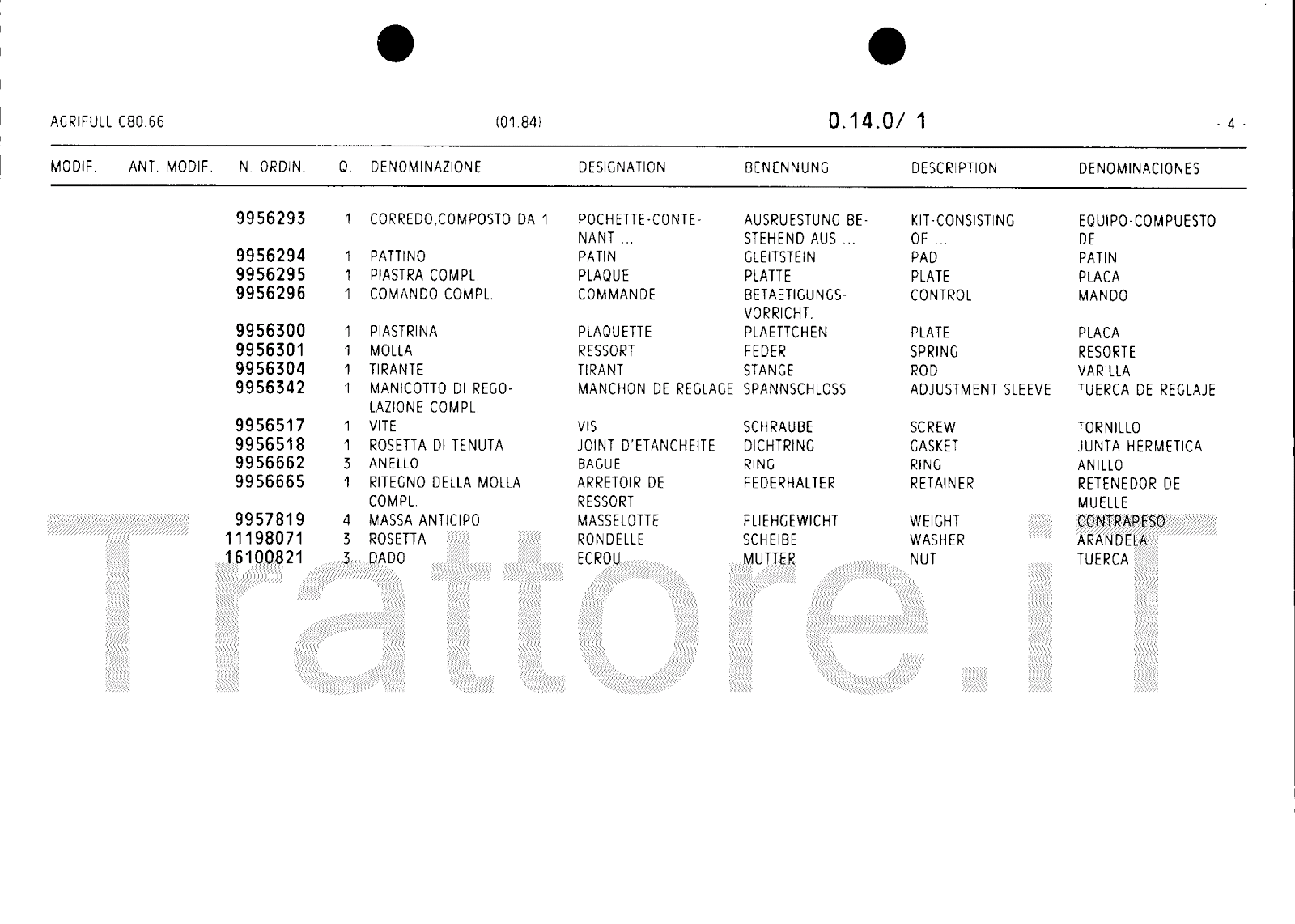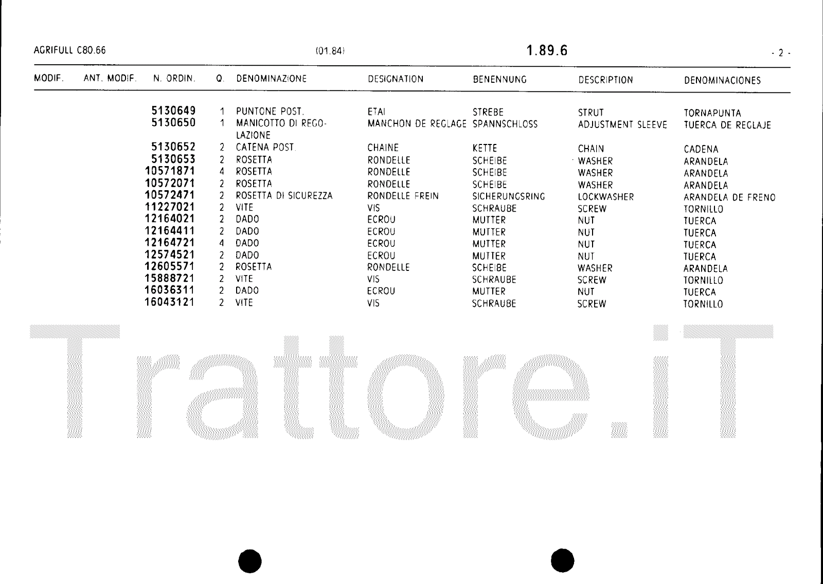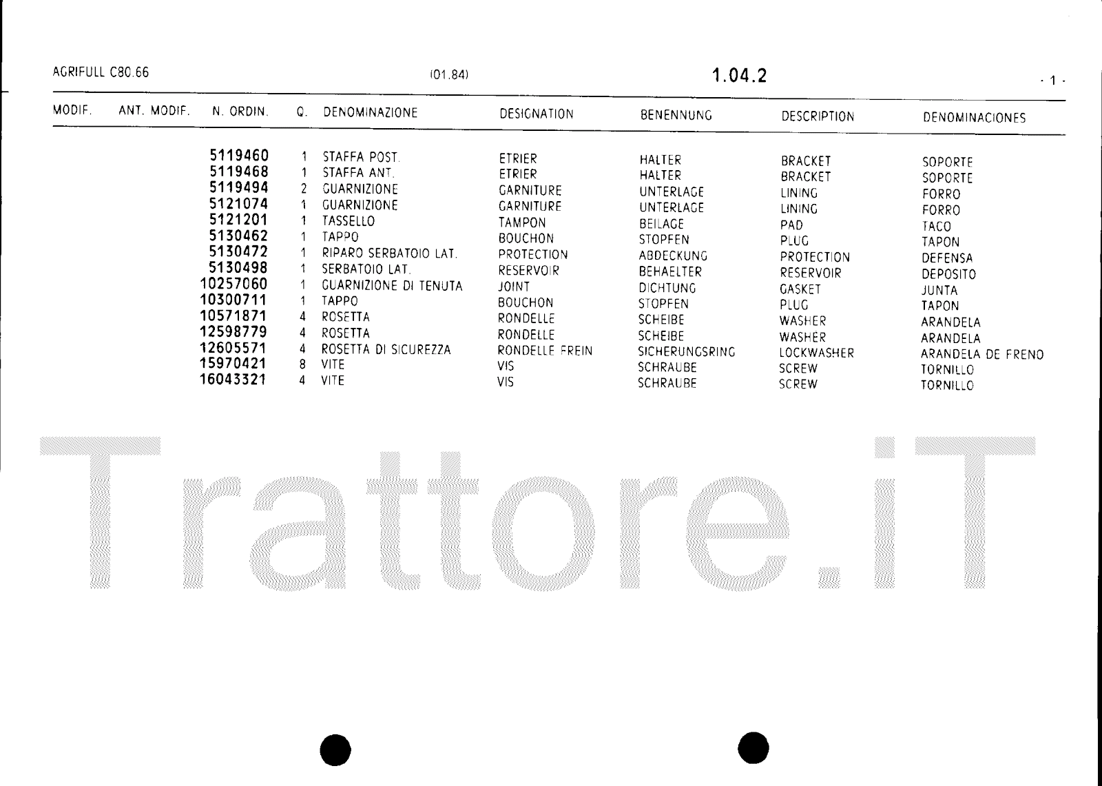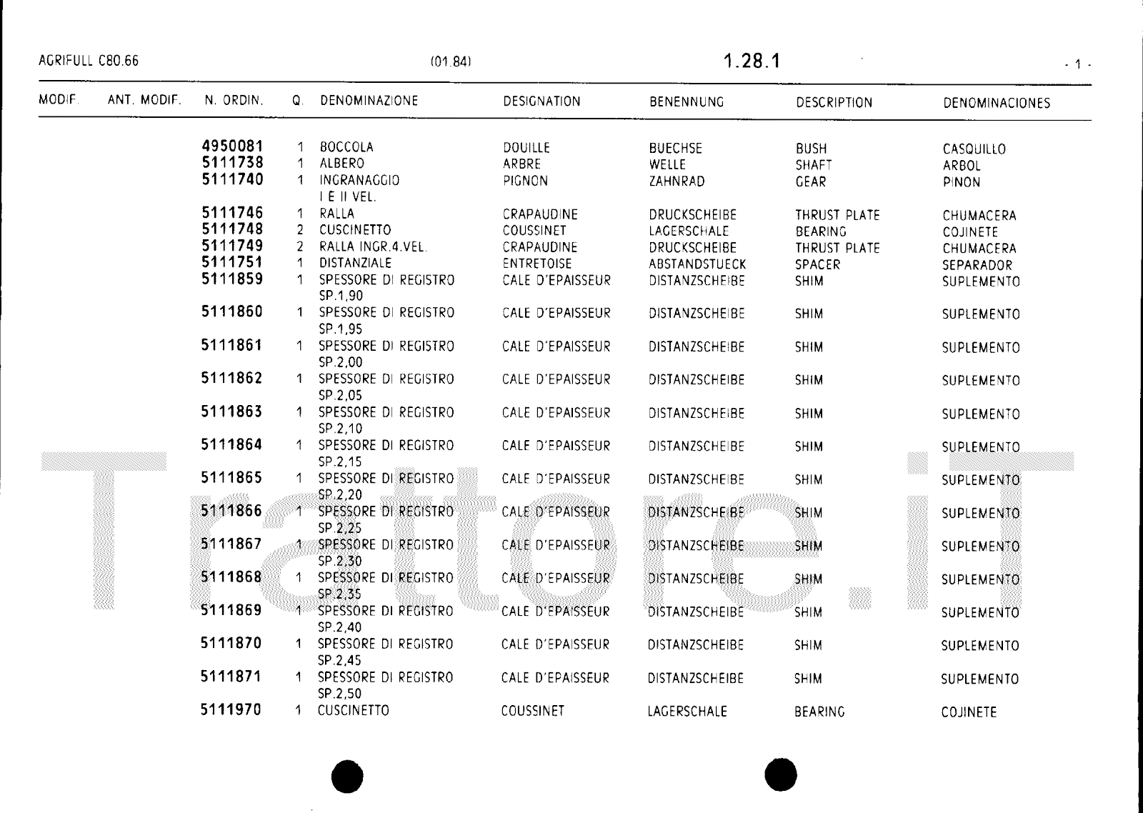 Manuale (esploso meccanico) trattore Agrifull serie C80-66