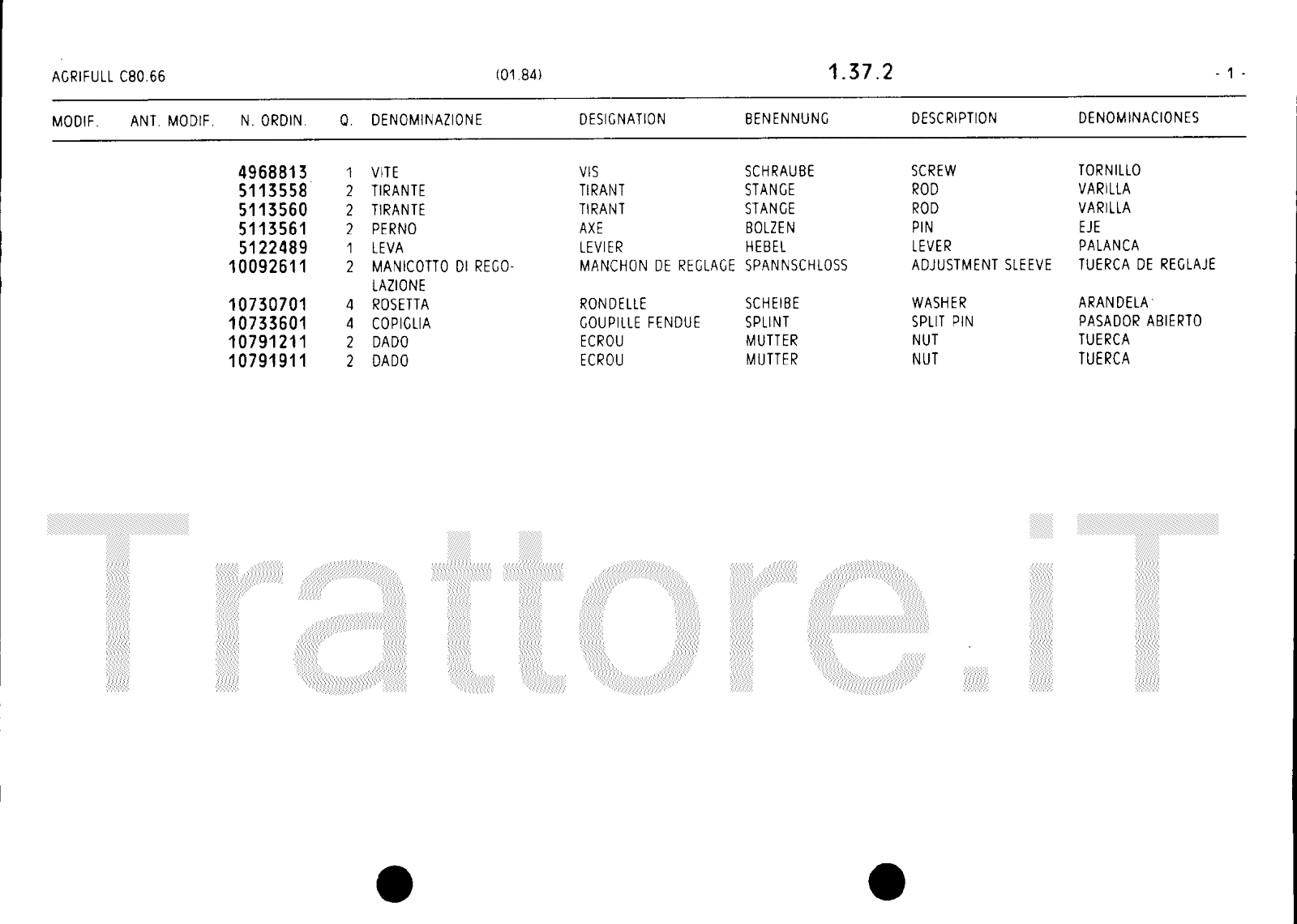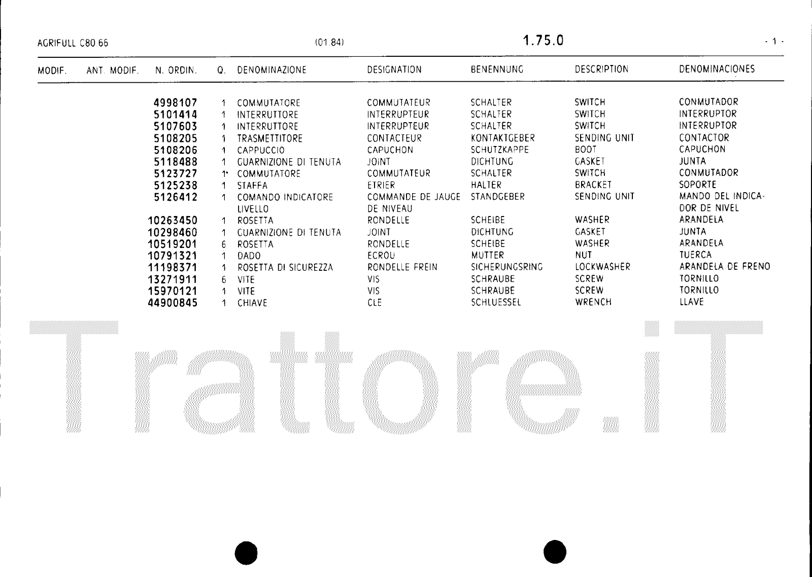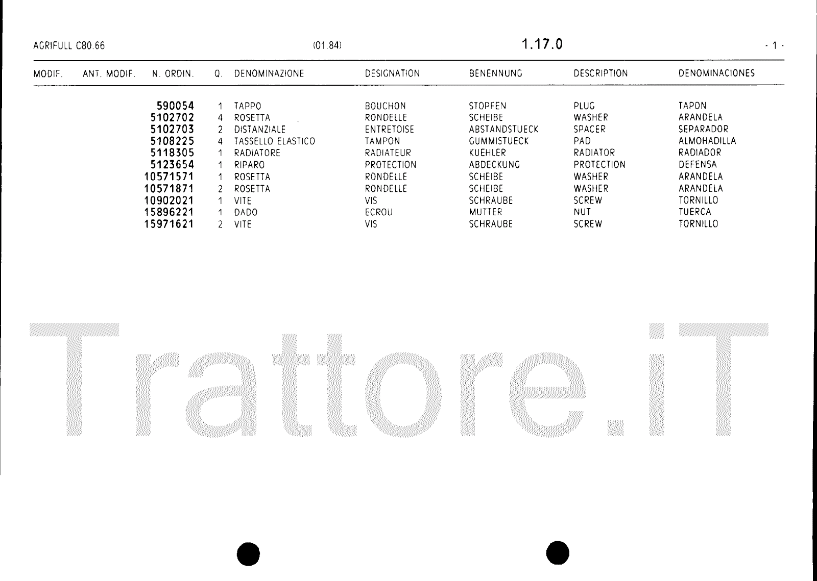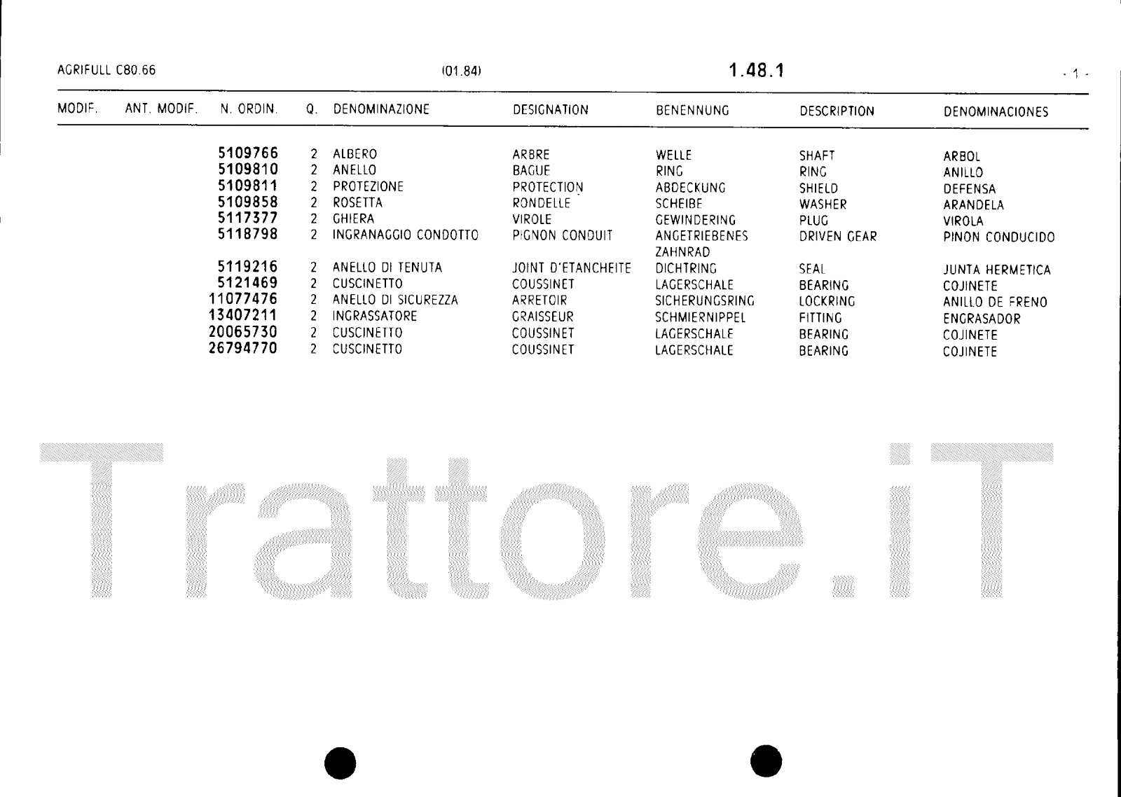 Manuale (esploso meccanico) trattore Agrifull serie C80-66