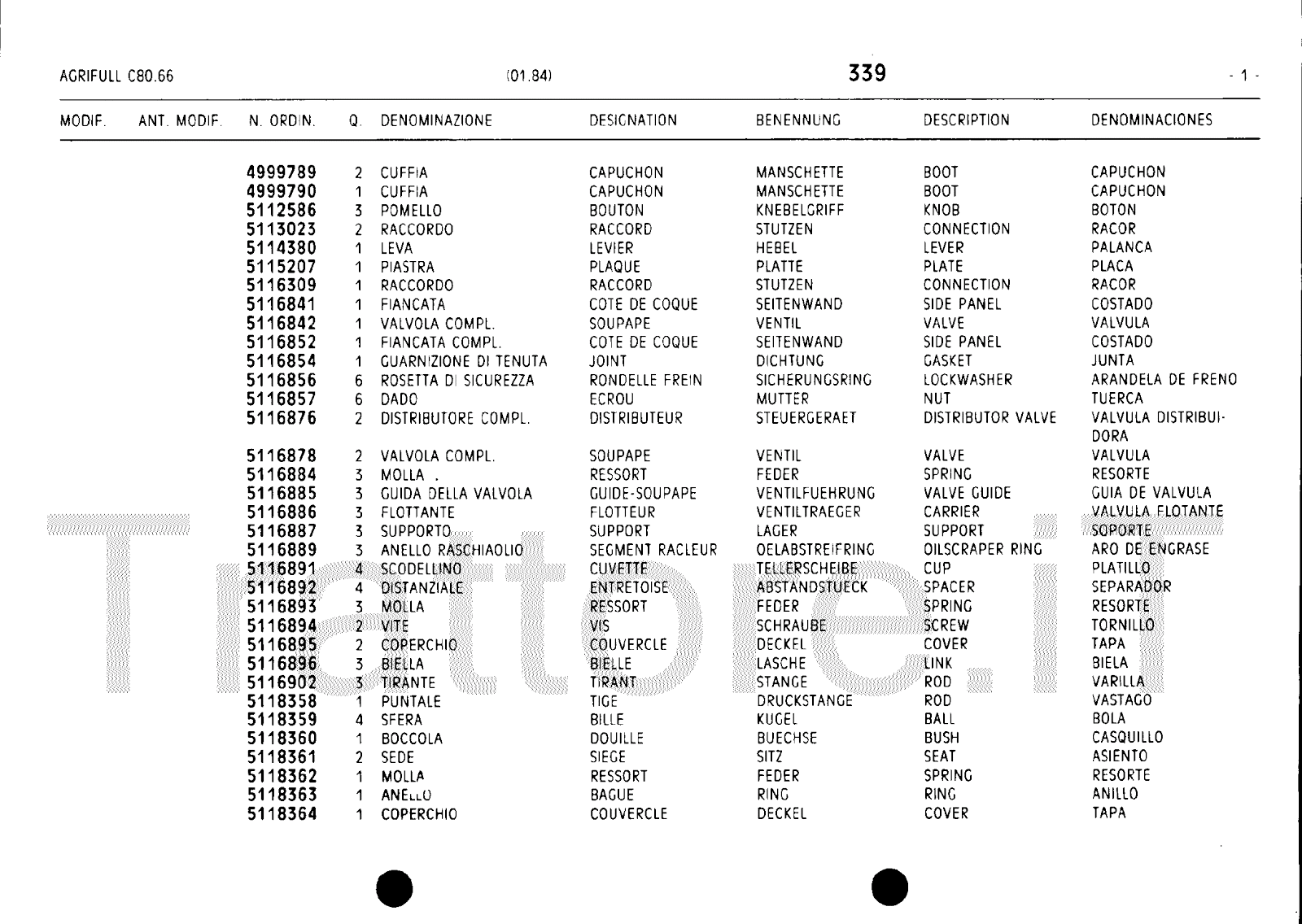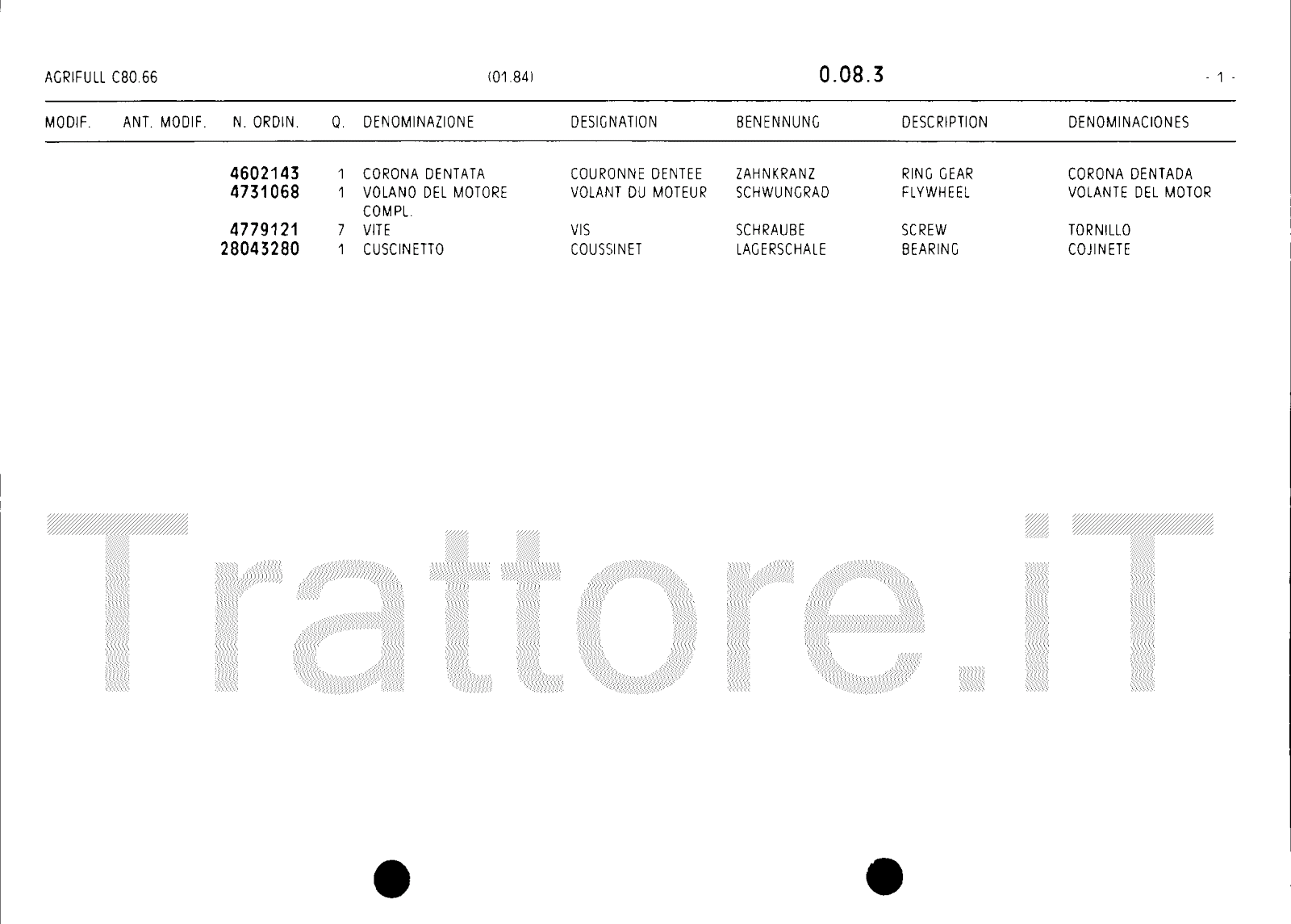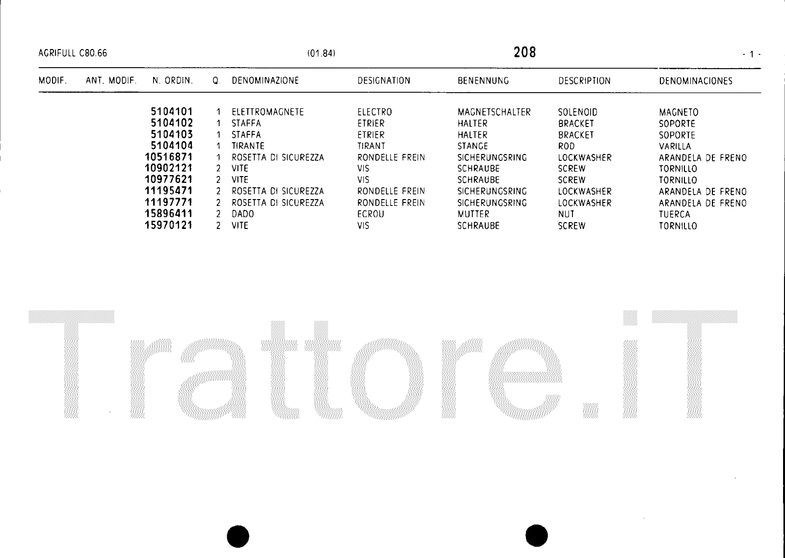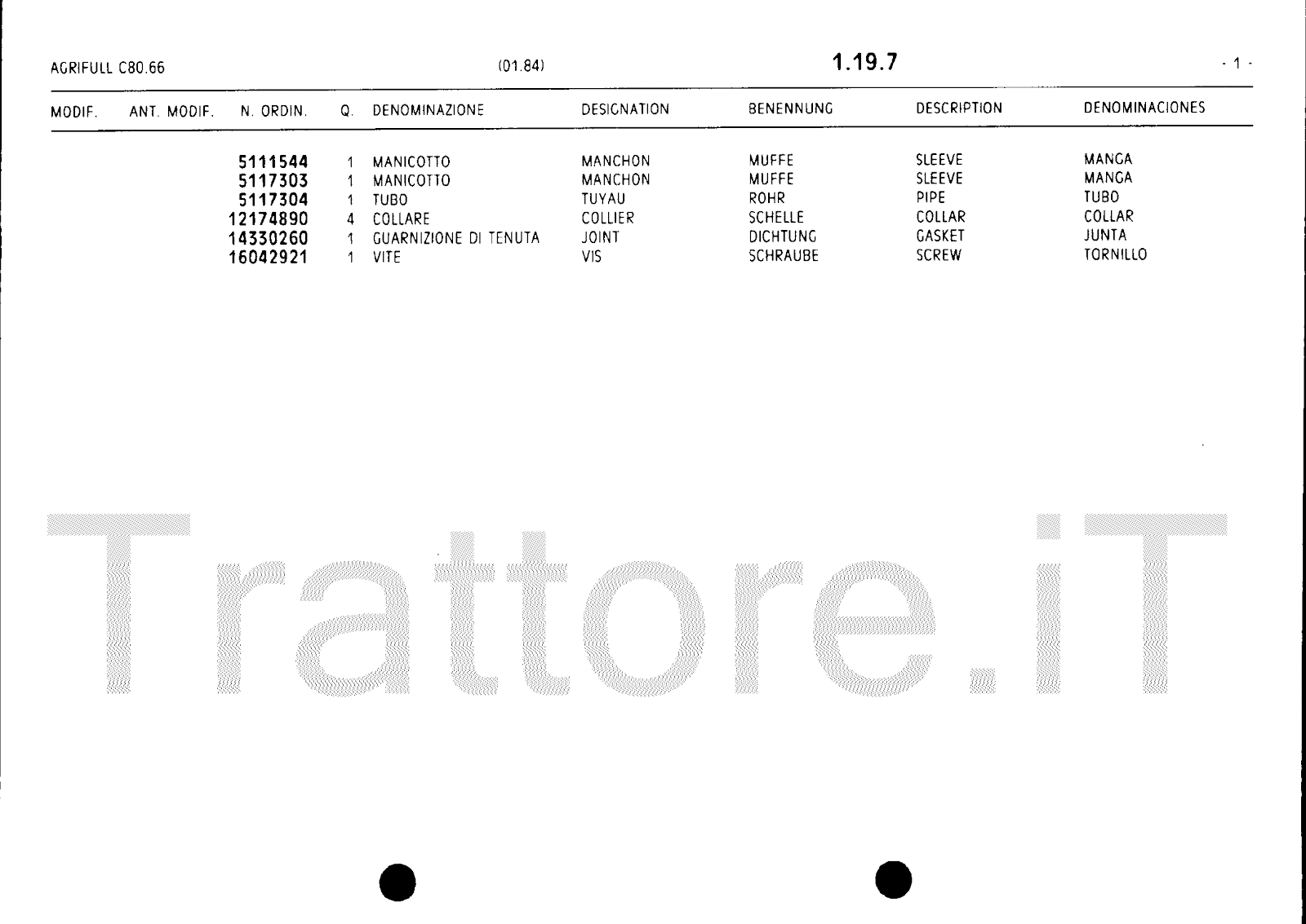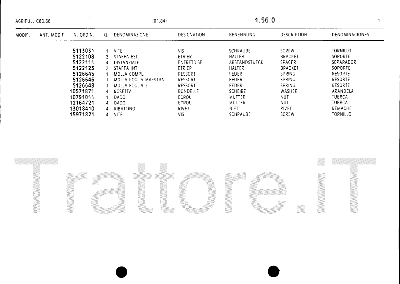 Manuale (esploso meccanico) trattore Agrifull serie C80-66