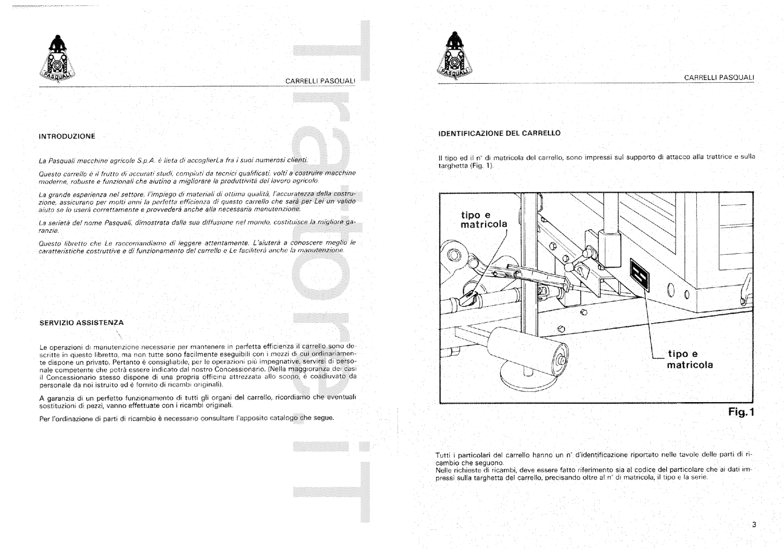 Carrello Pasquali 413.11 manuale manutenzione e ricambi