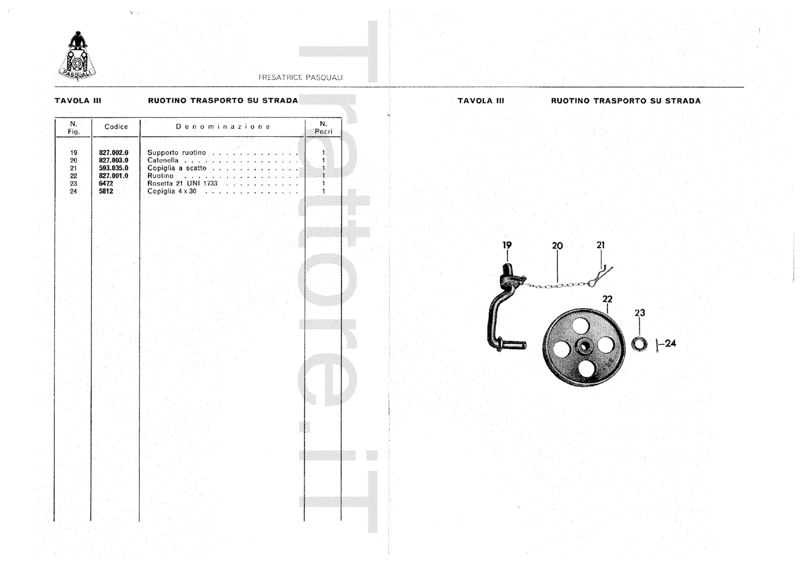 Fresatrice Pasquali 590 per motocoltivatore 921 Manuale Manutenzione e ricambi