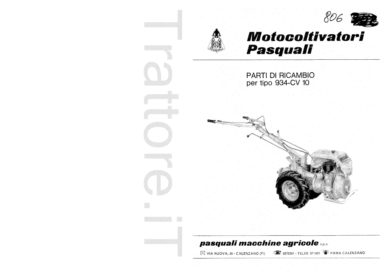 Motocoltivatore Pasquali 934 CV 10 manuale ricambi