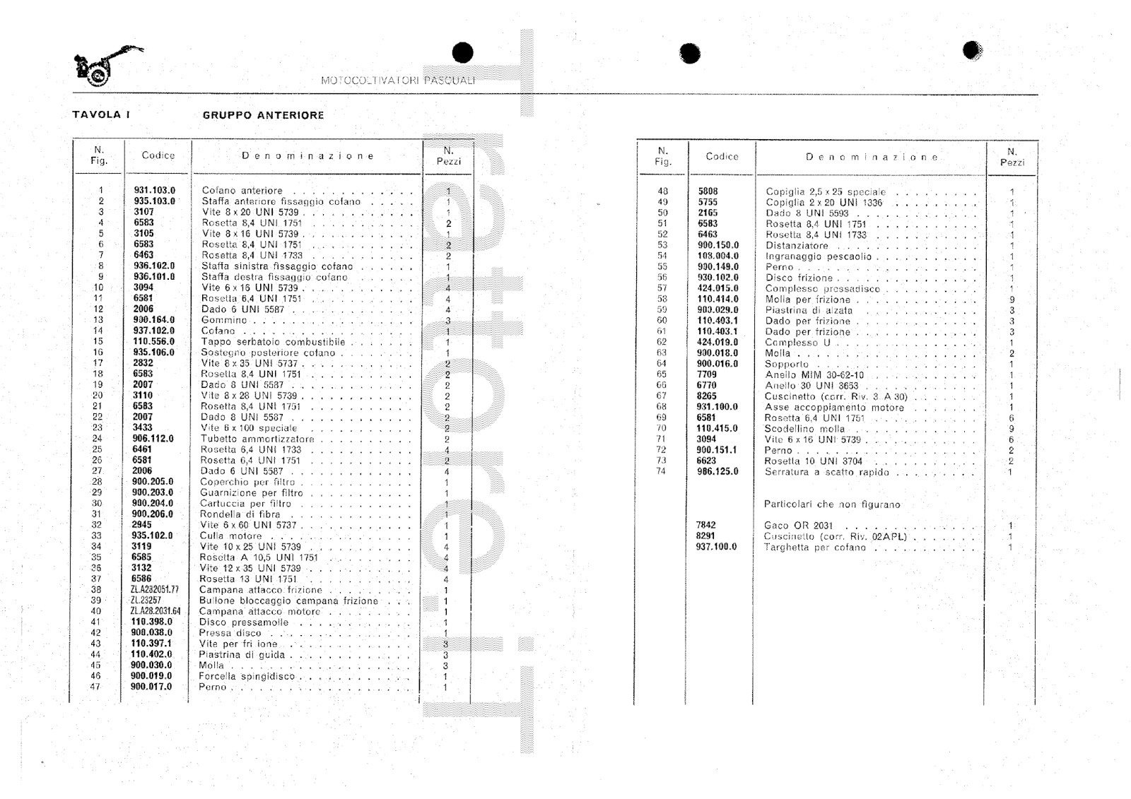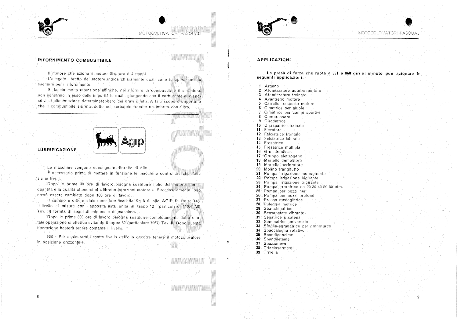Motocoltivatore Pasquali 937 CV 14 manuale manutenzione e ricambi 1976