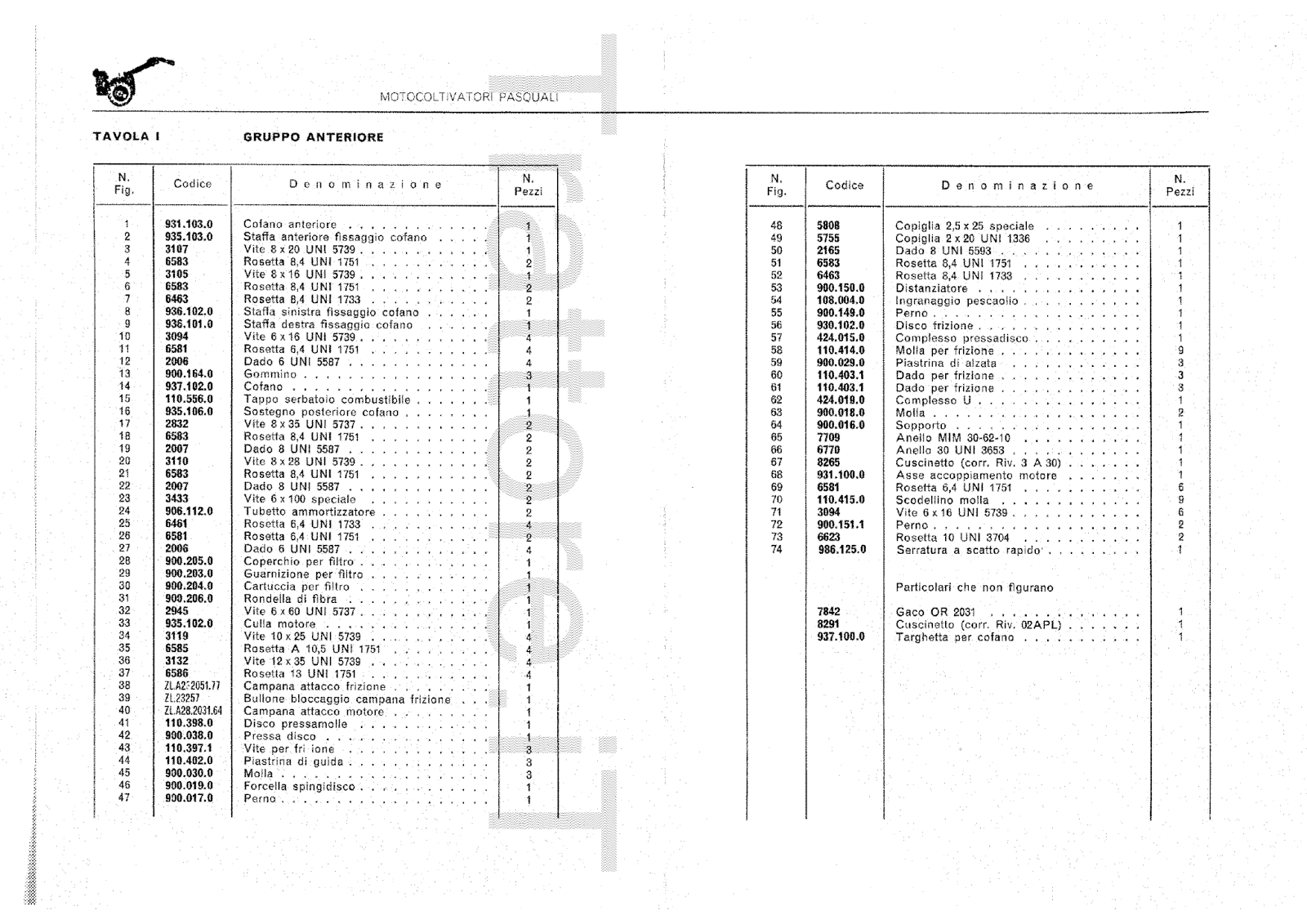Motocoltivatore Pasquali 937 CV 14 manuale manutenzione e ricambi 1977
