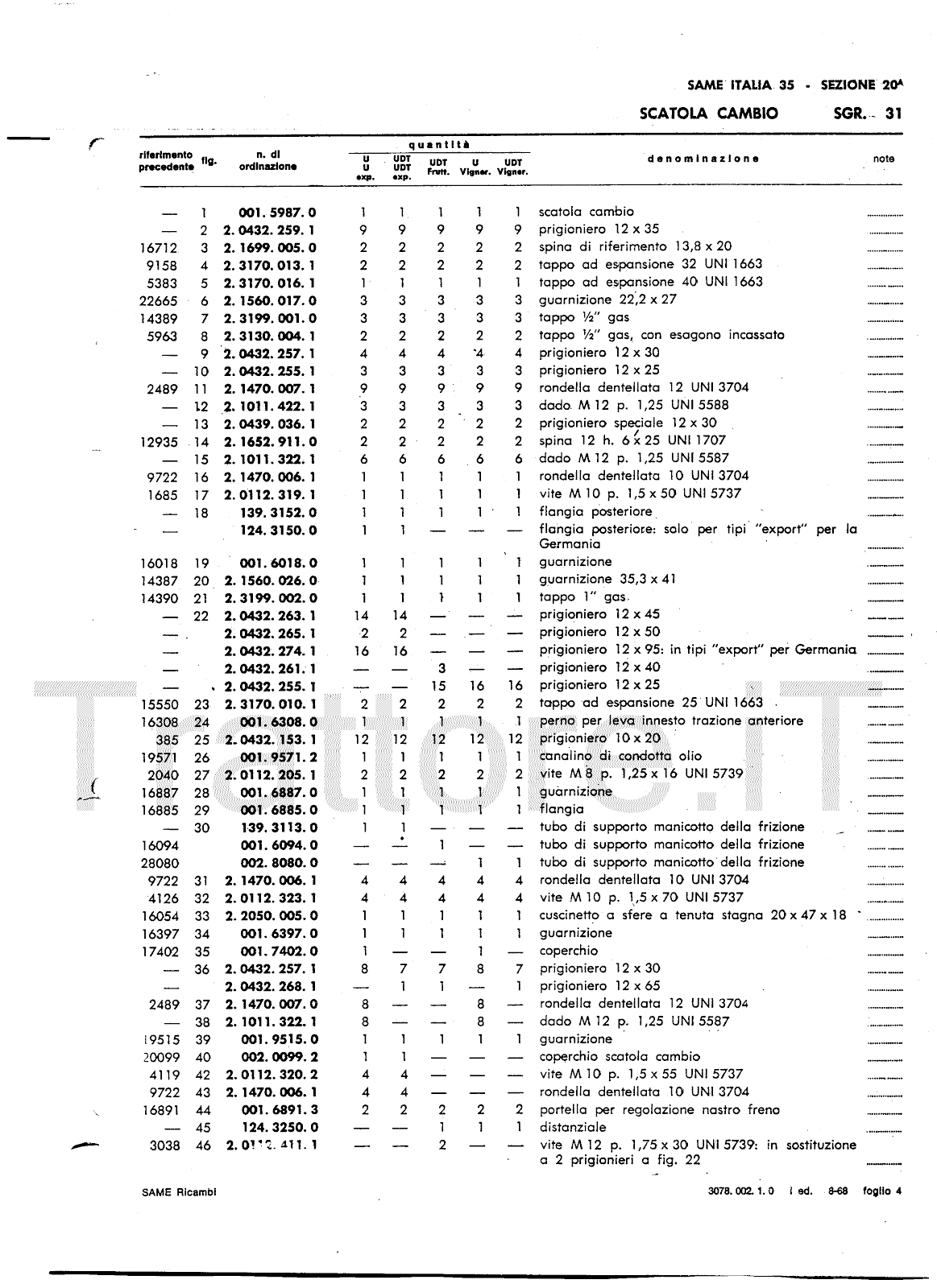 Manuale (esploso meccanico) per Trattore/Trattrice Same Italia 35 HP 33/Frutteto/Vignerino