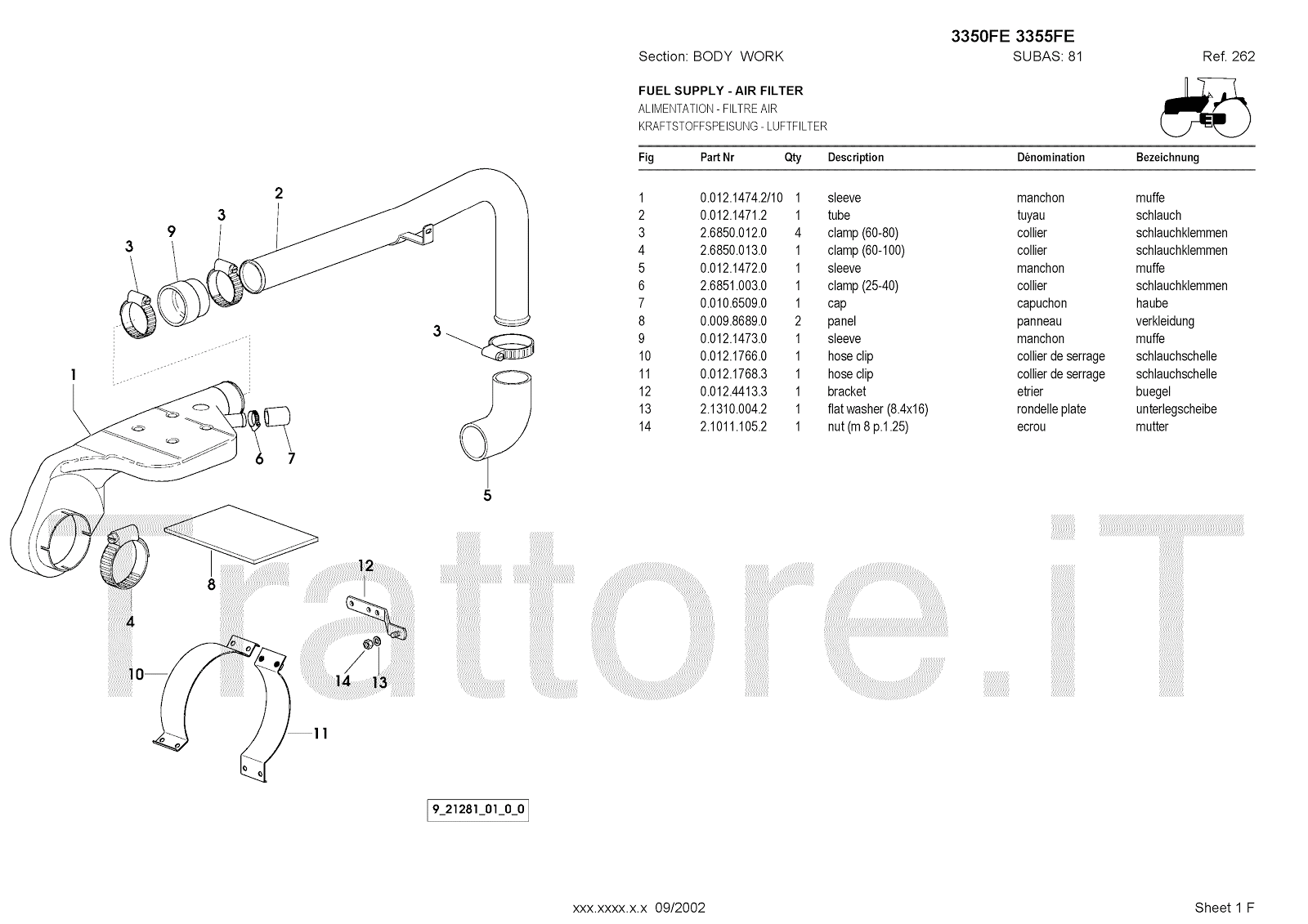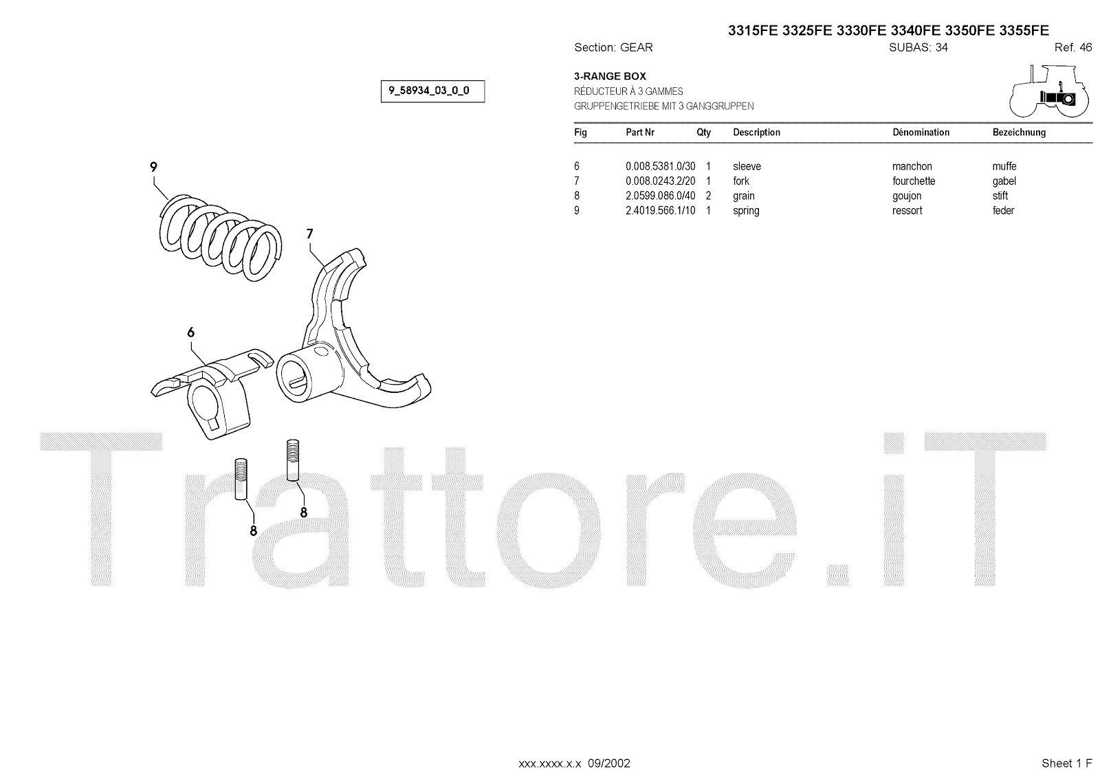 Manuale (esploso meccanico) per trattore / trattrice Massey Ferguson 3330FE