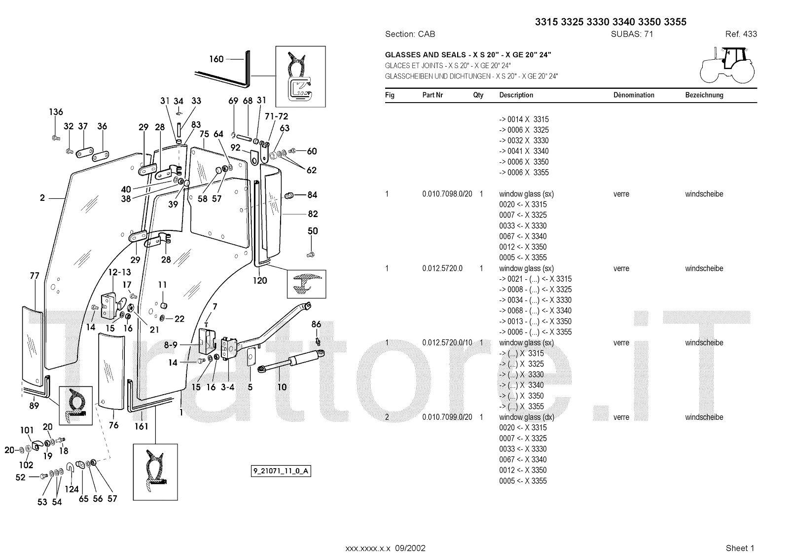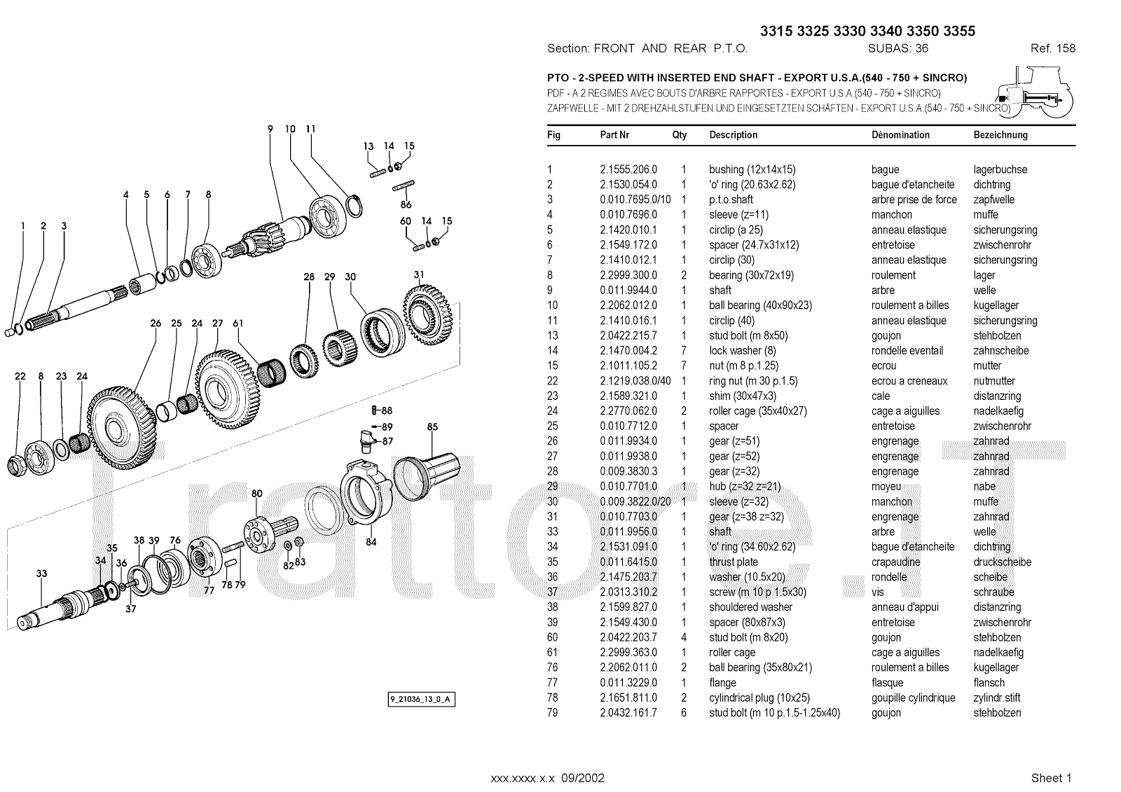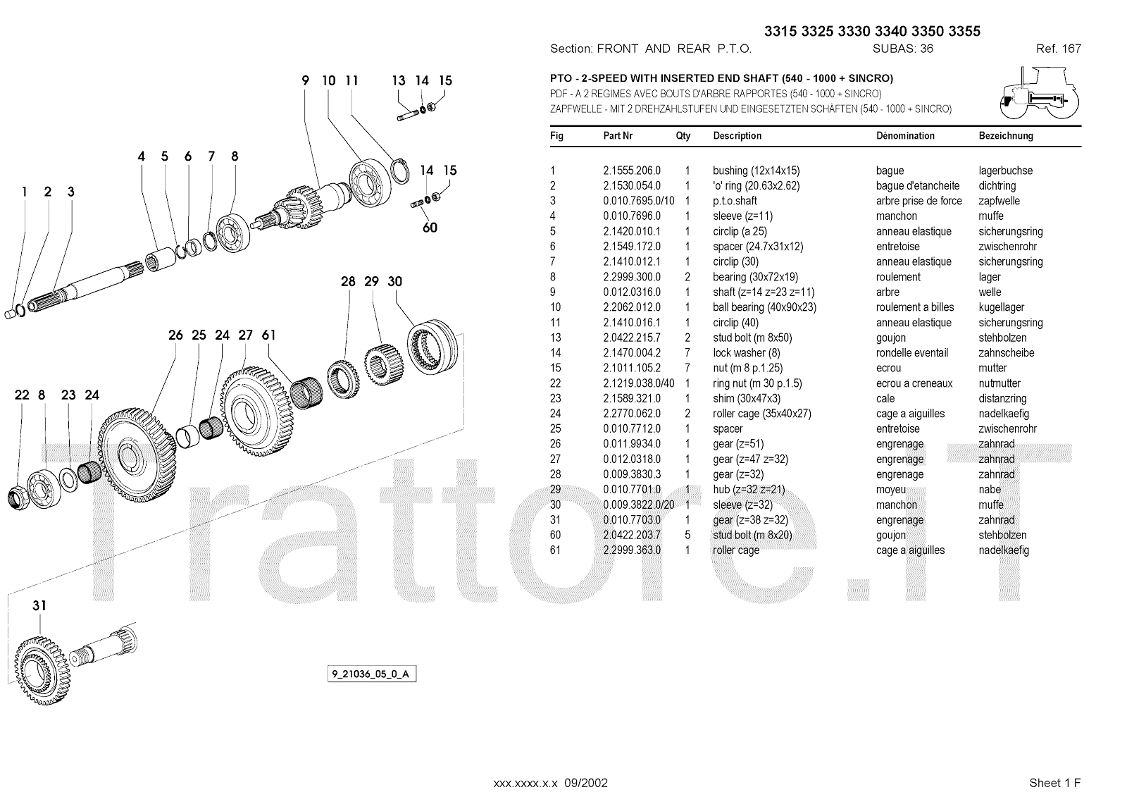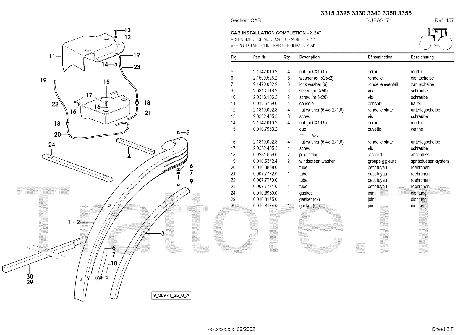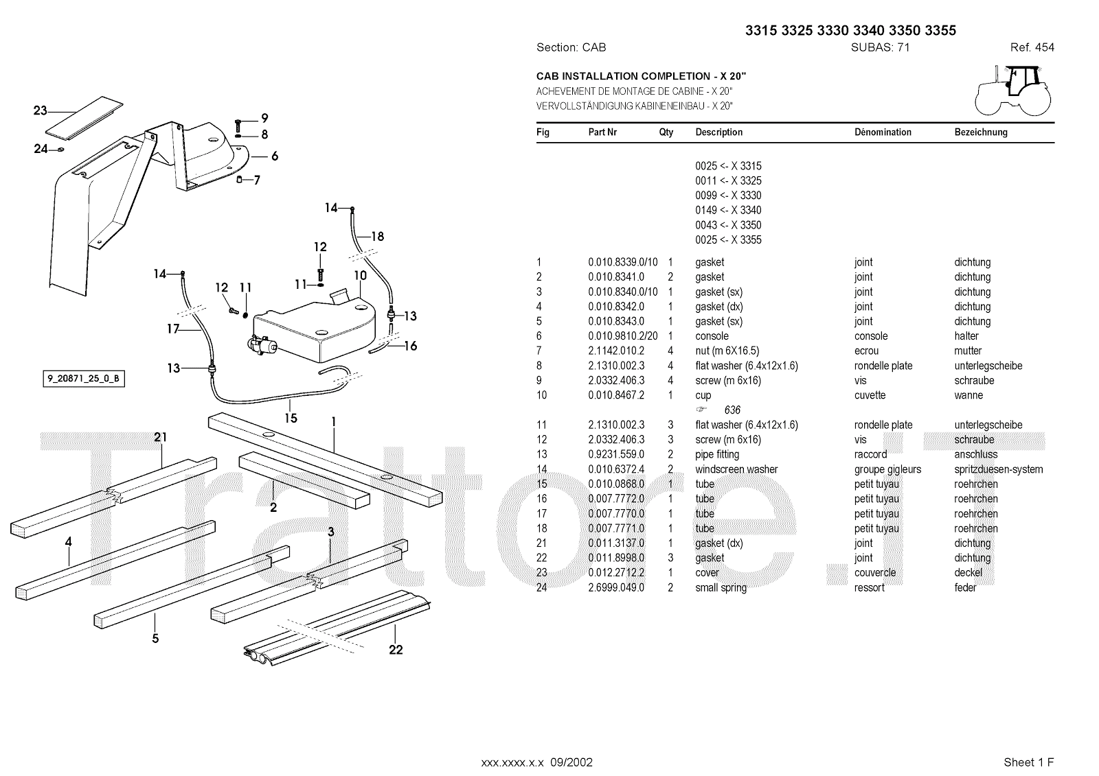Manuale (esploso meccanico) per trattore / trattrice Massey Ferguson 3325