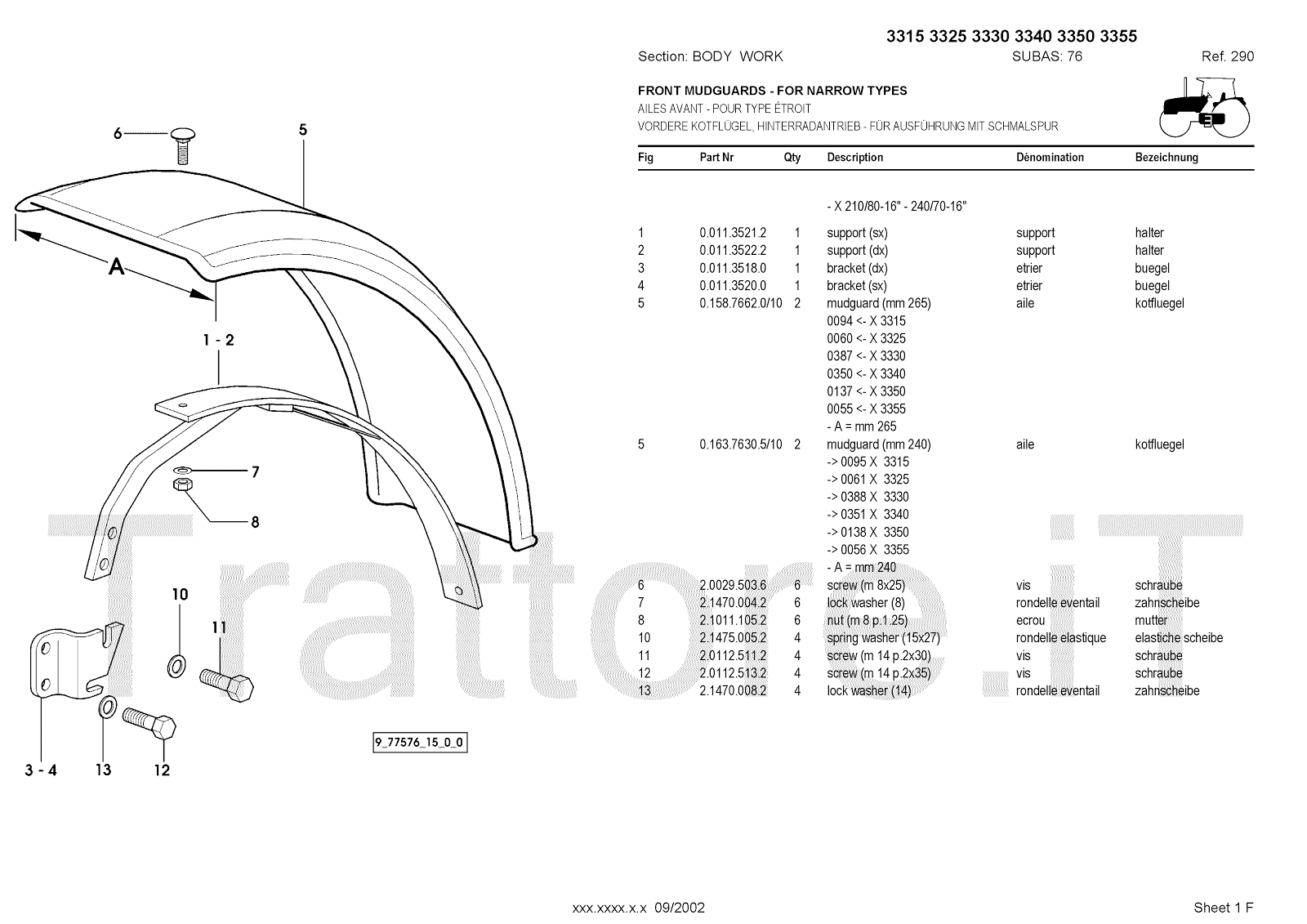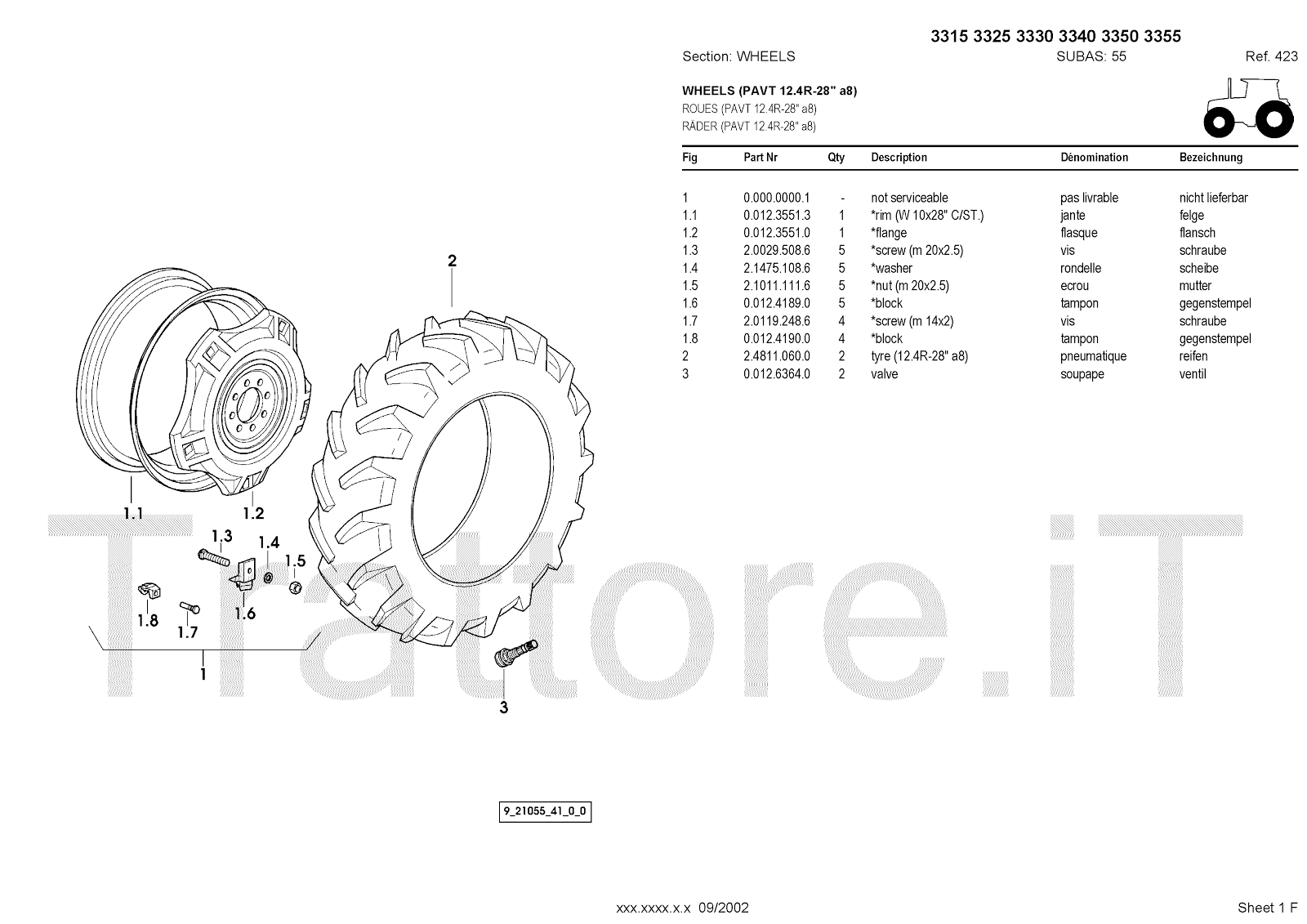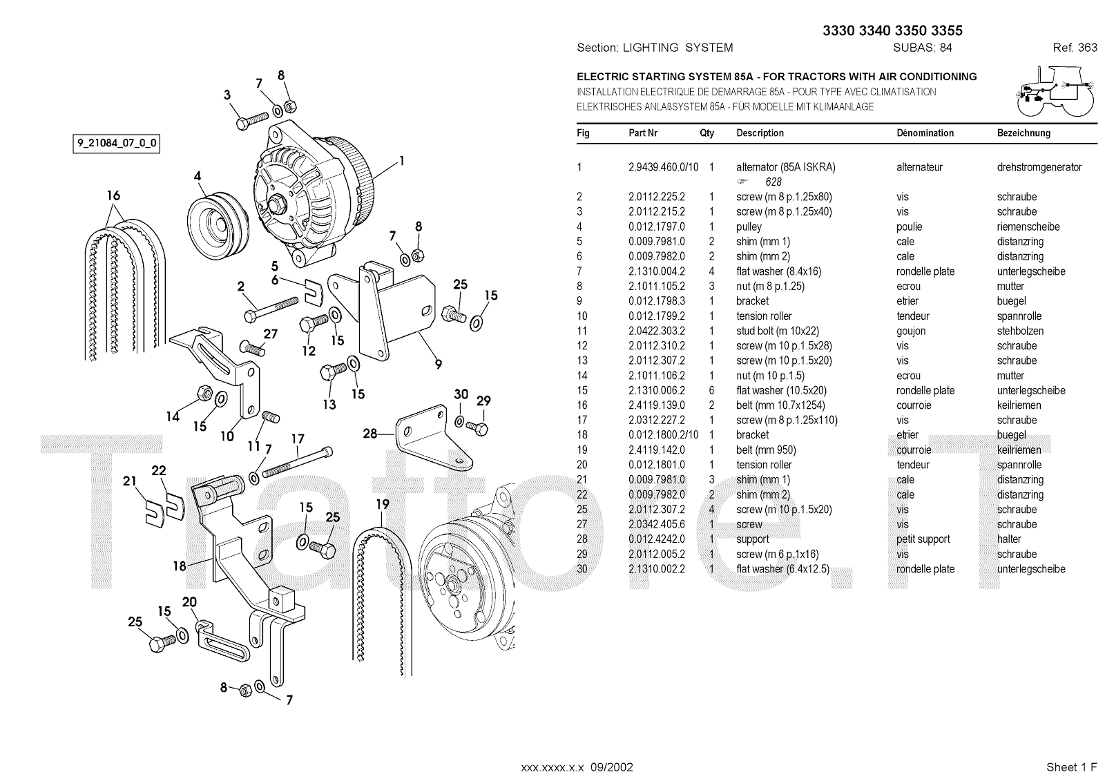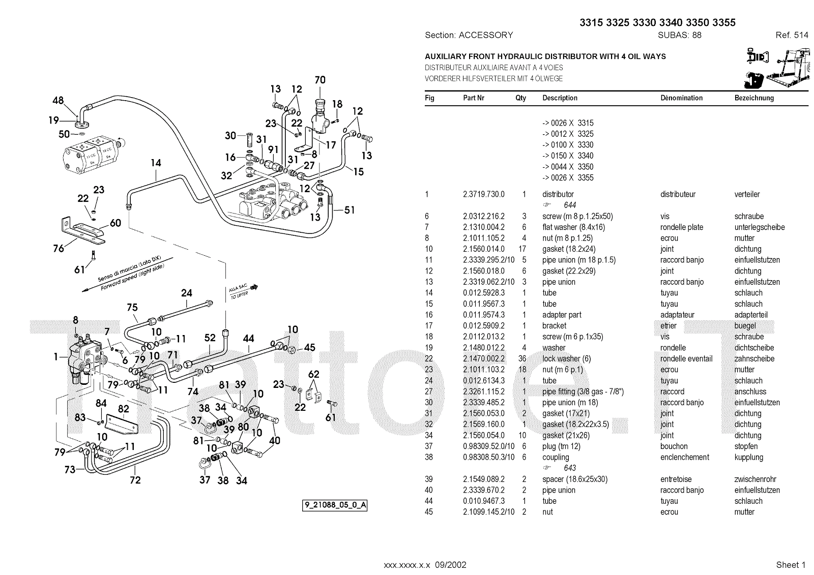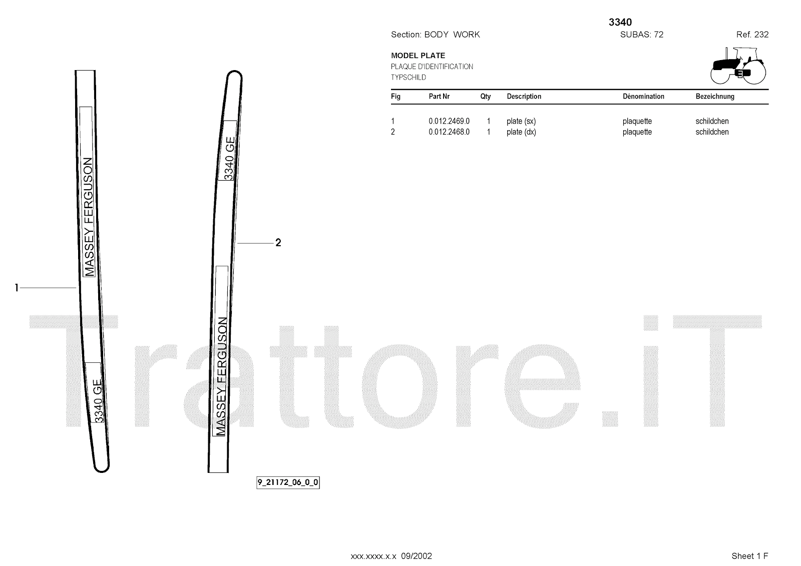 Manuale (esploso meccanico) per trattore / trattrice Massey Ferguson 3325