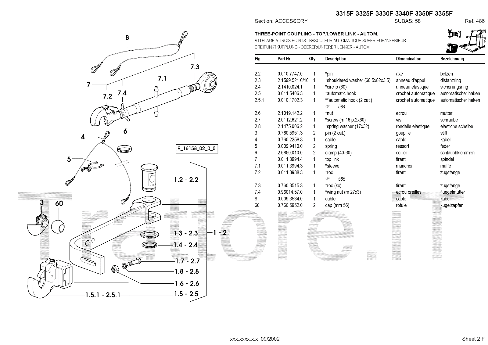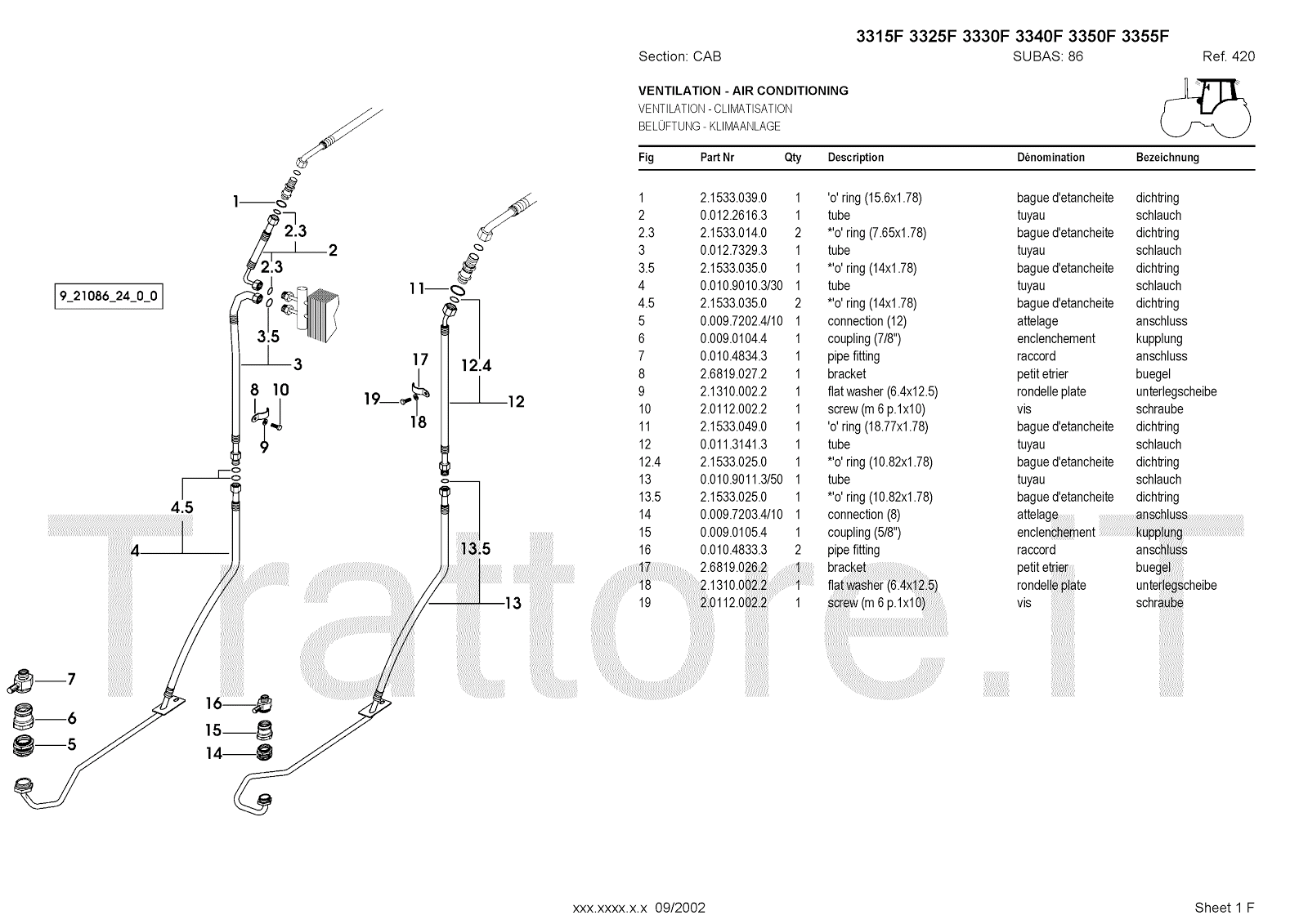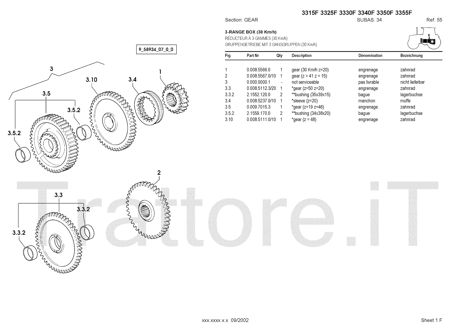 Manuale (esploso meccanico) per trattore / trattrice Massey Ferguson 3355F