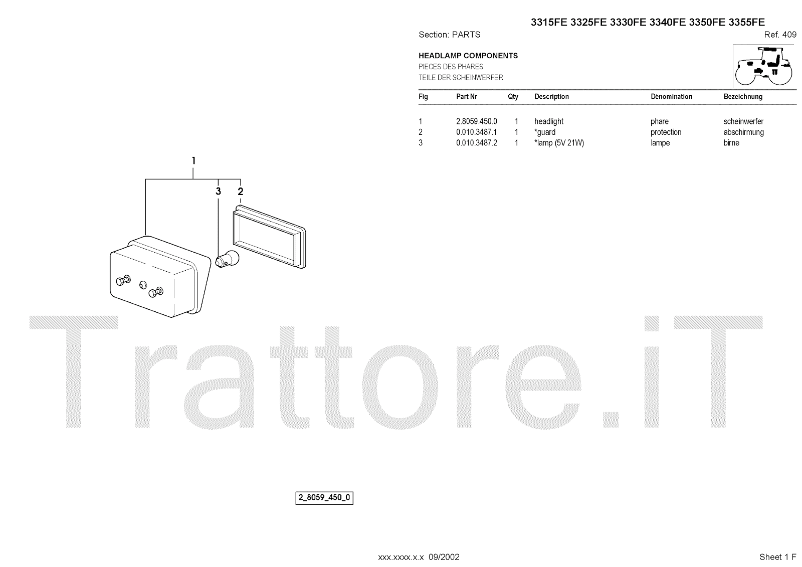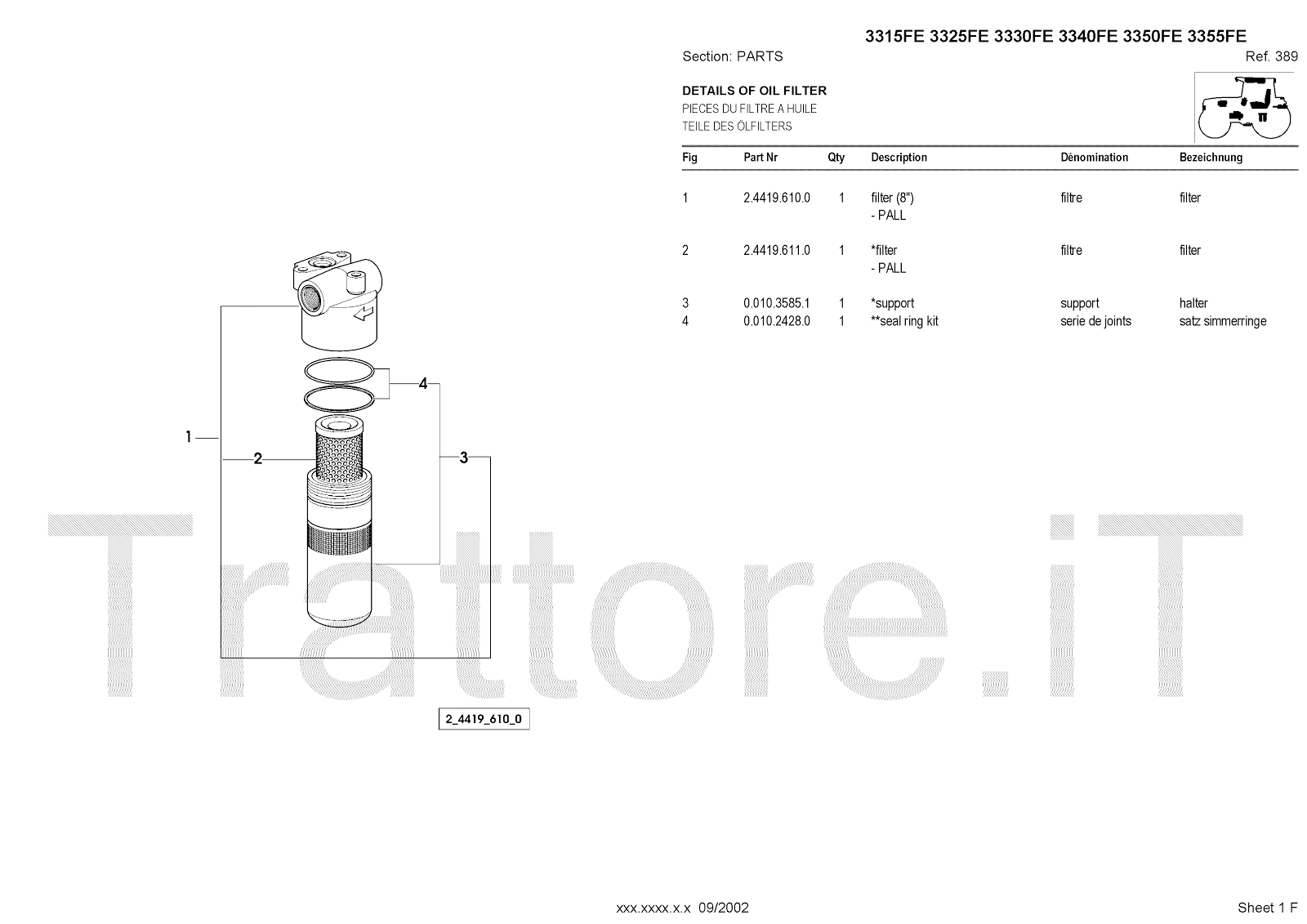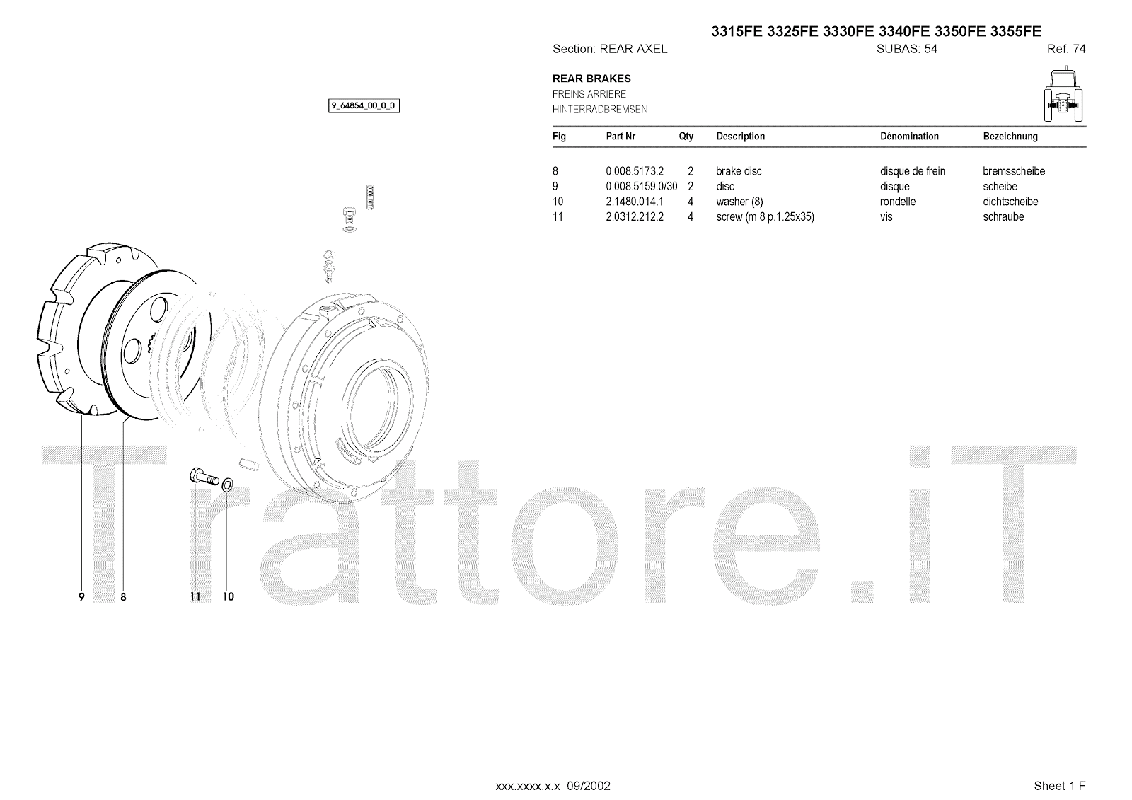 Manuale (esploso meccanico) per trattore / trattrice Massey Ferguson 3340FE