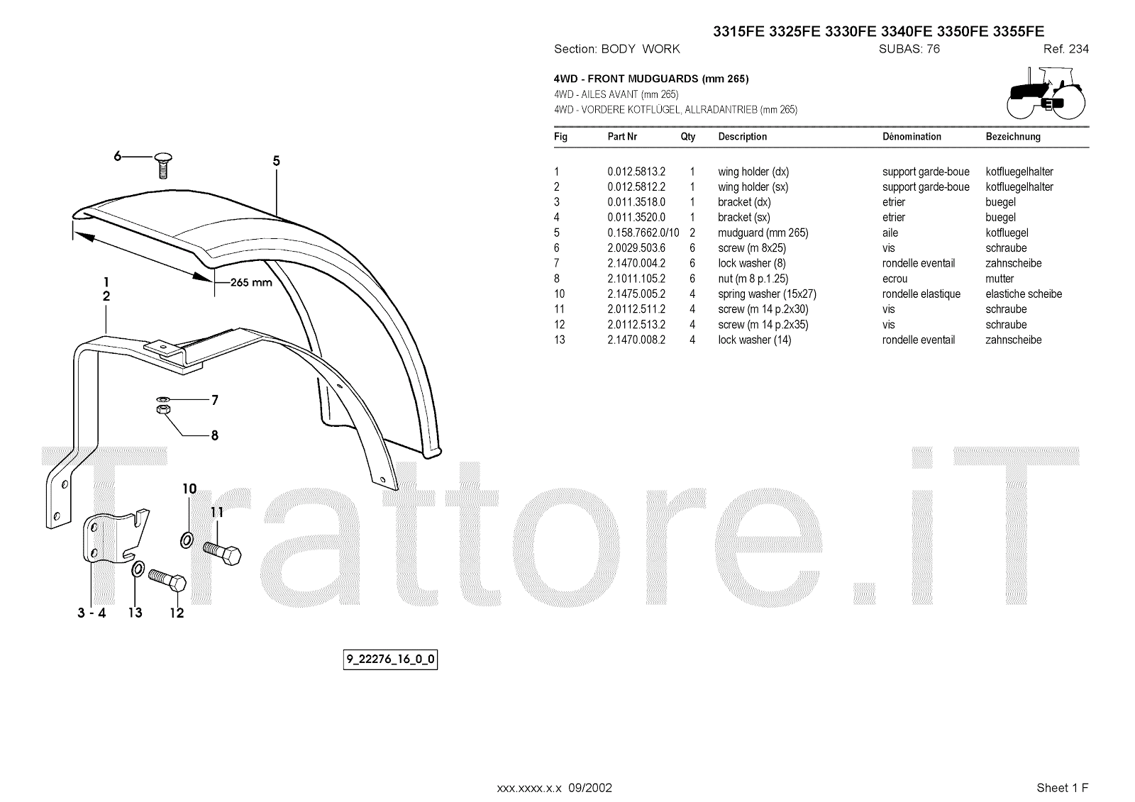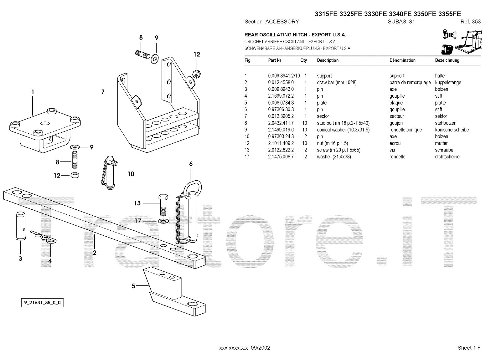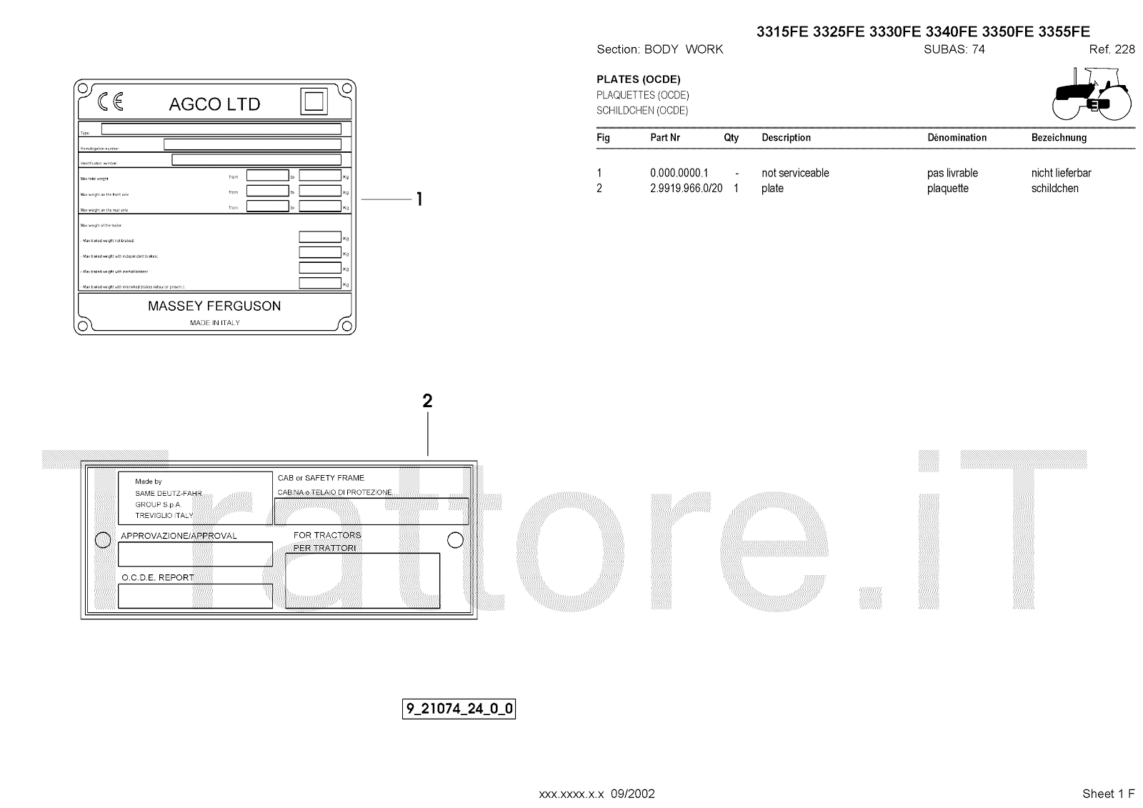 Manuale (esploso meccanico) per trattore / trattrice Massey Ferguson 3340FE