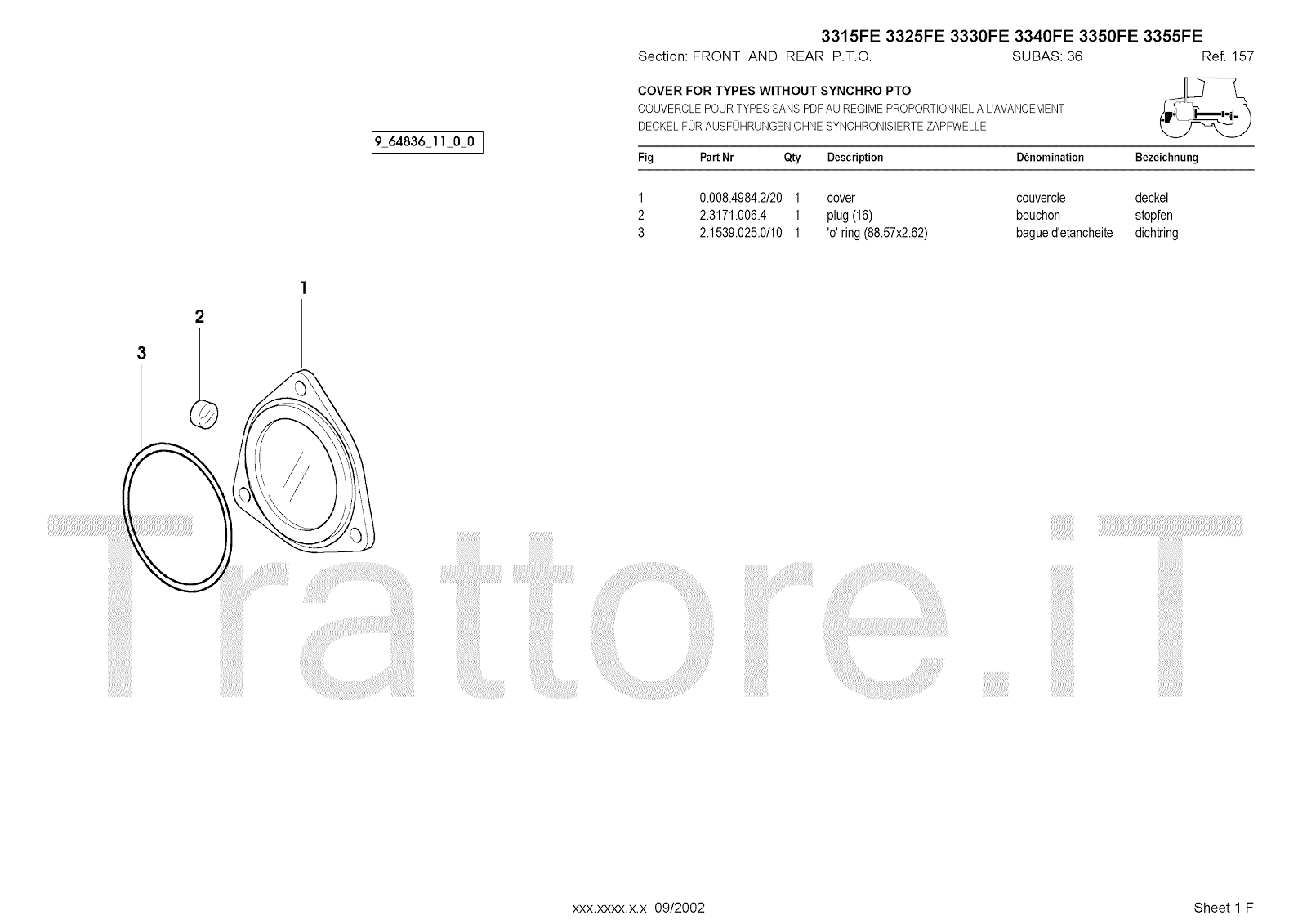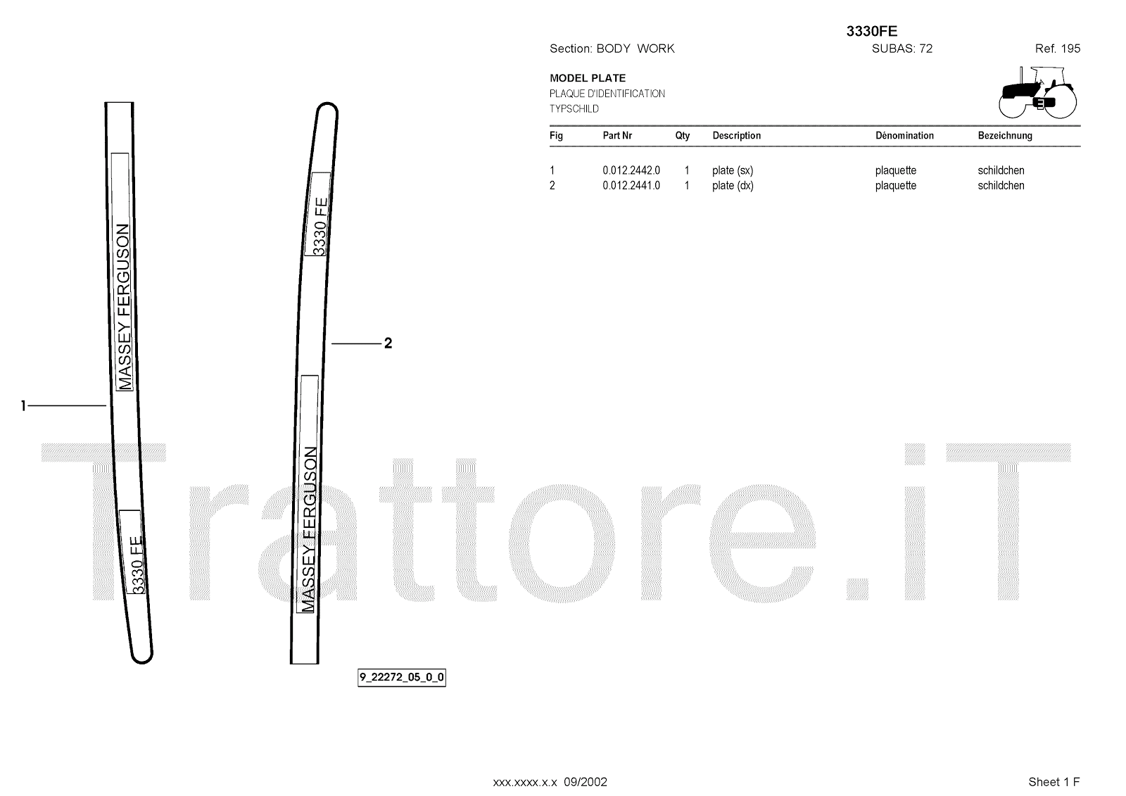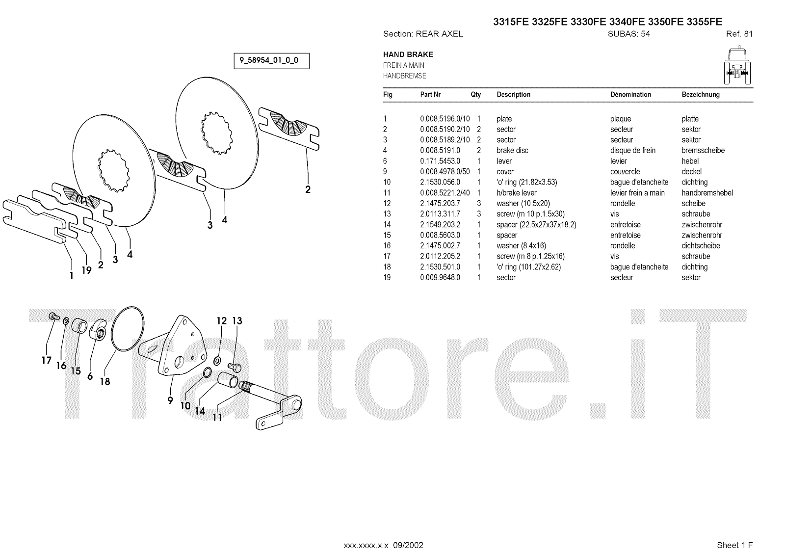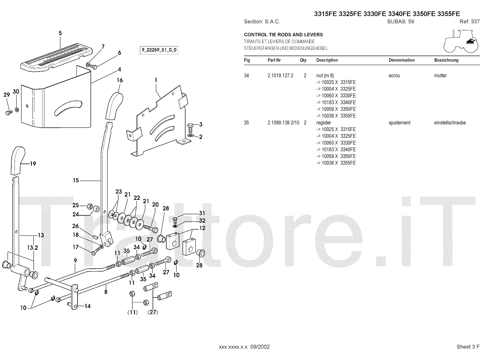 Manuale (esploso meccanico) per trattore / trattrice Massey Ferguson 3350FE