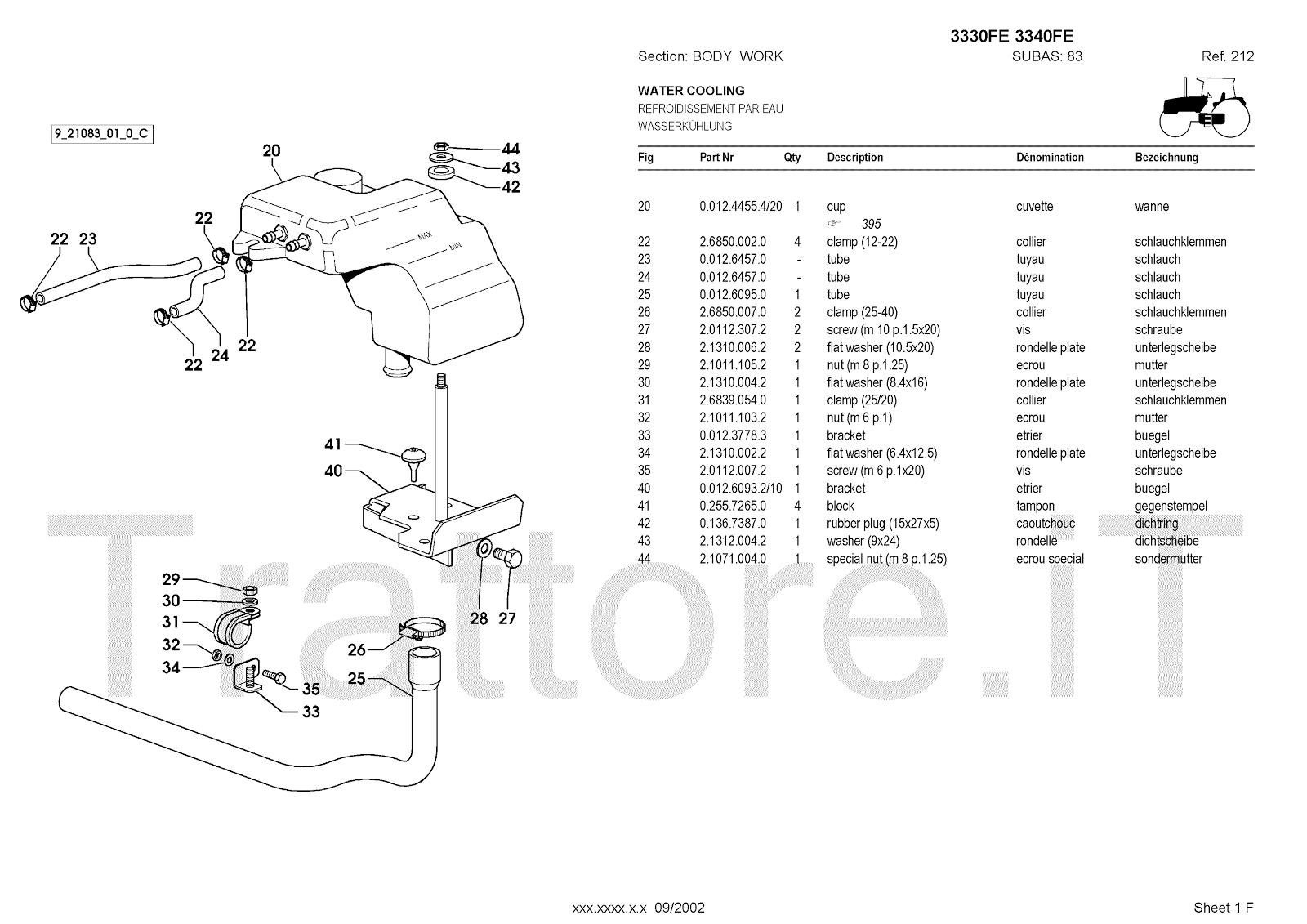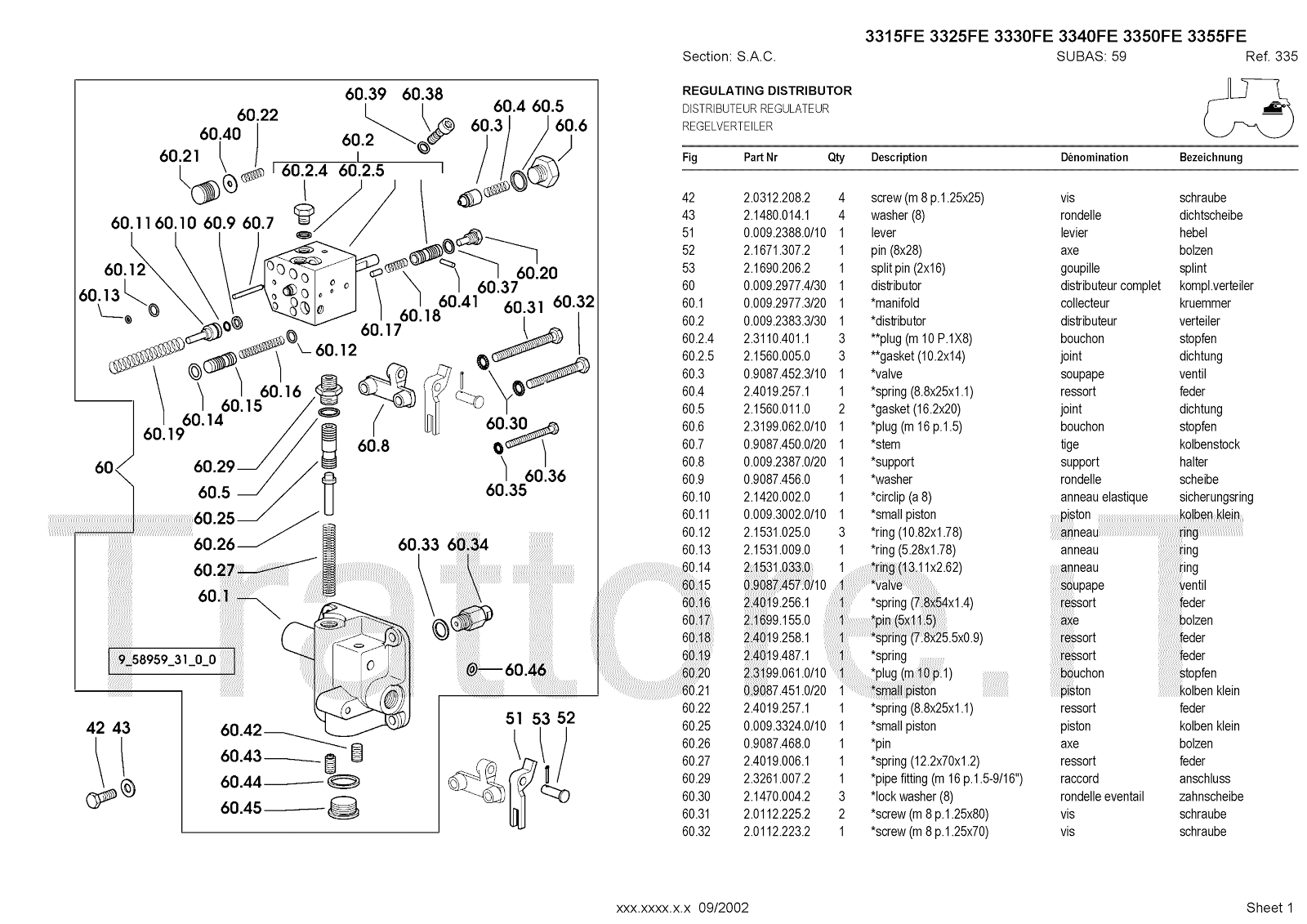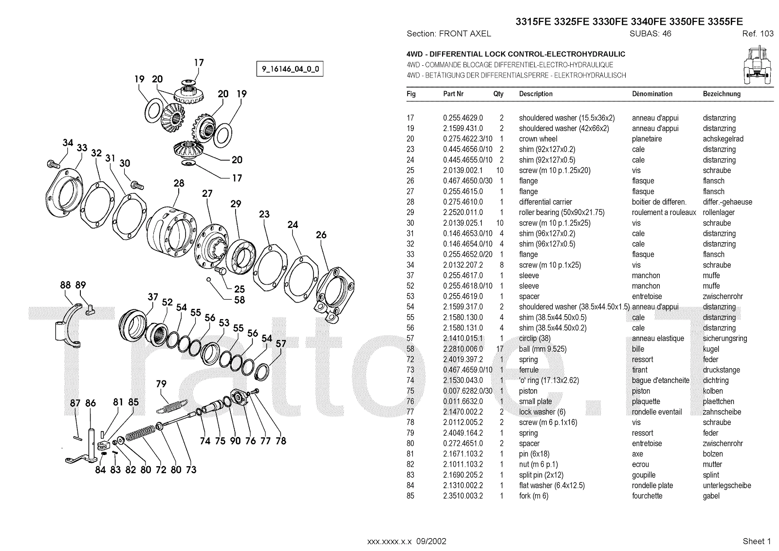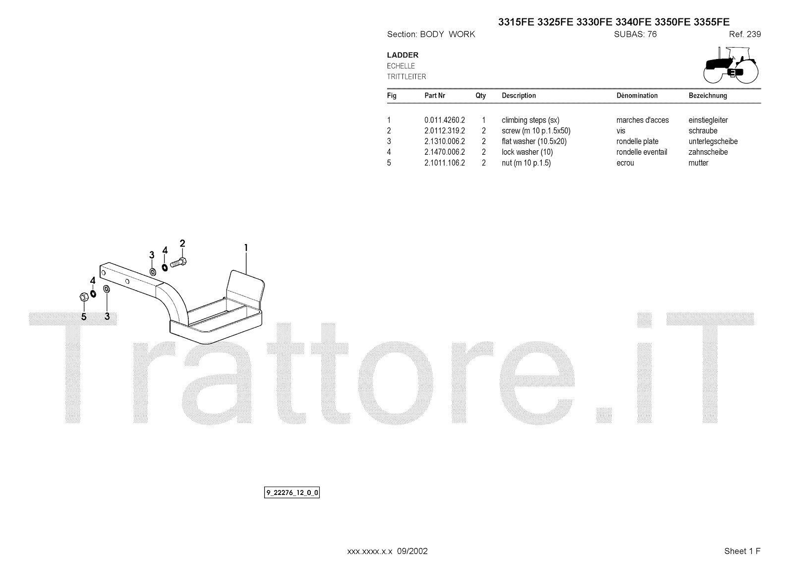 Manuale (esploso meccanico) per trattore / trattrice Massey Ferguson 3350FE