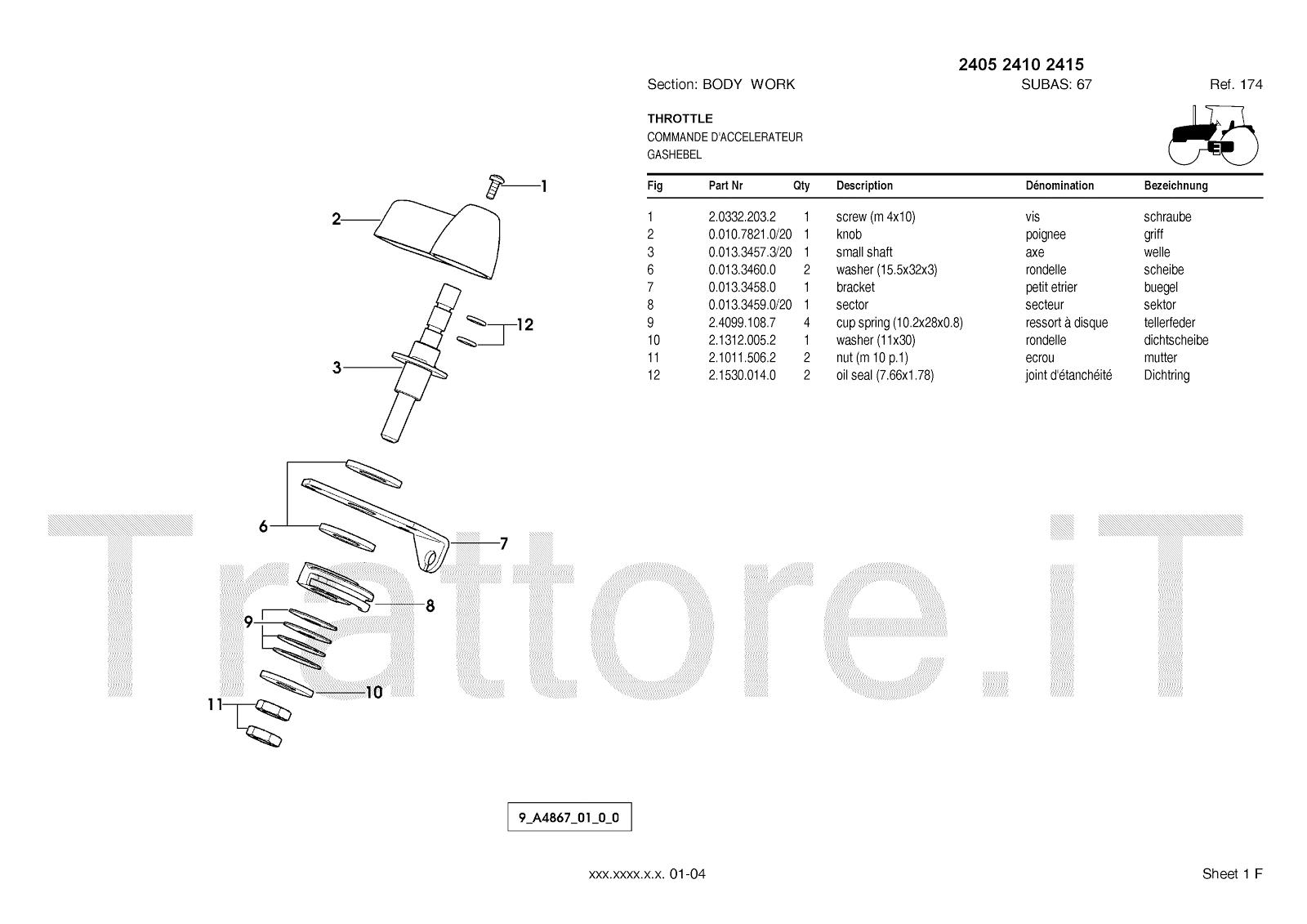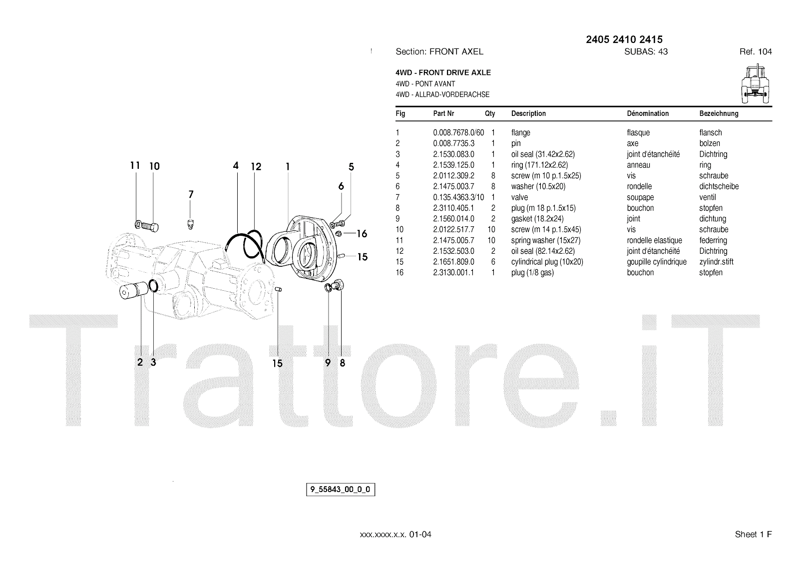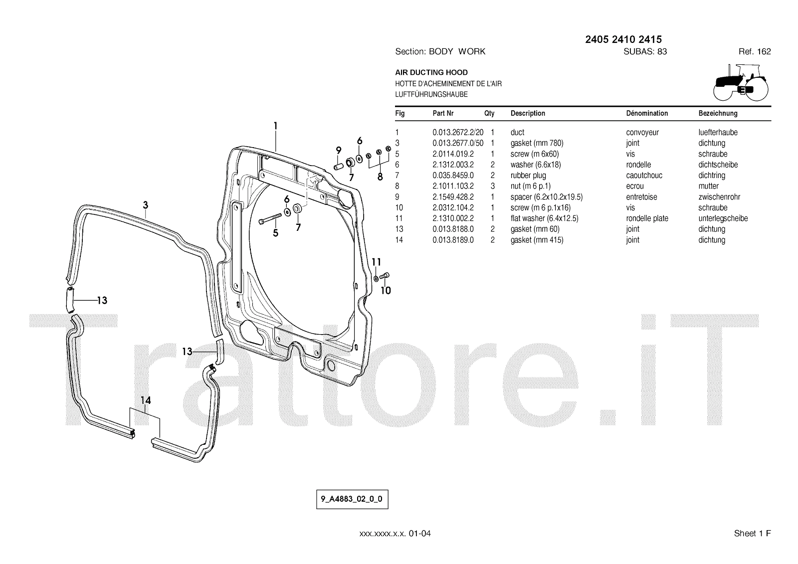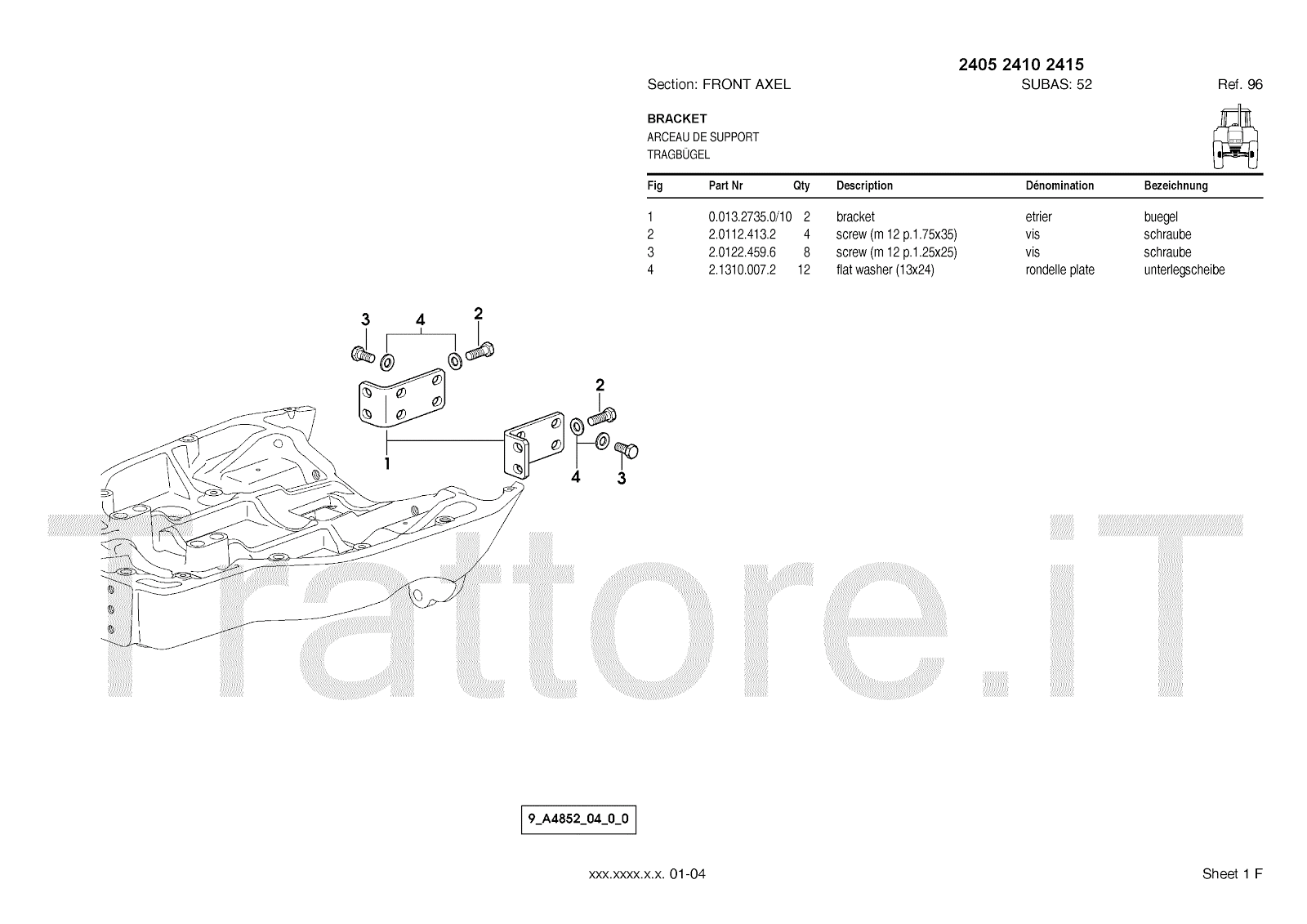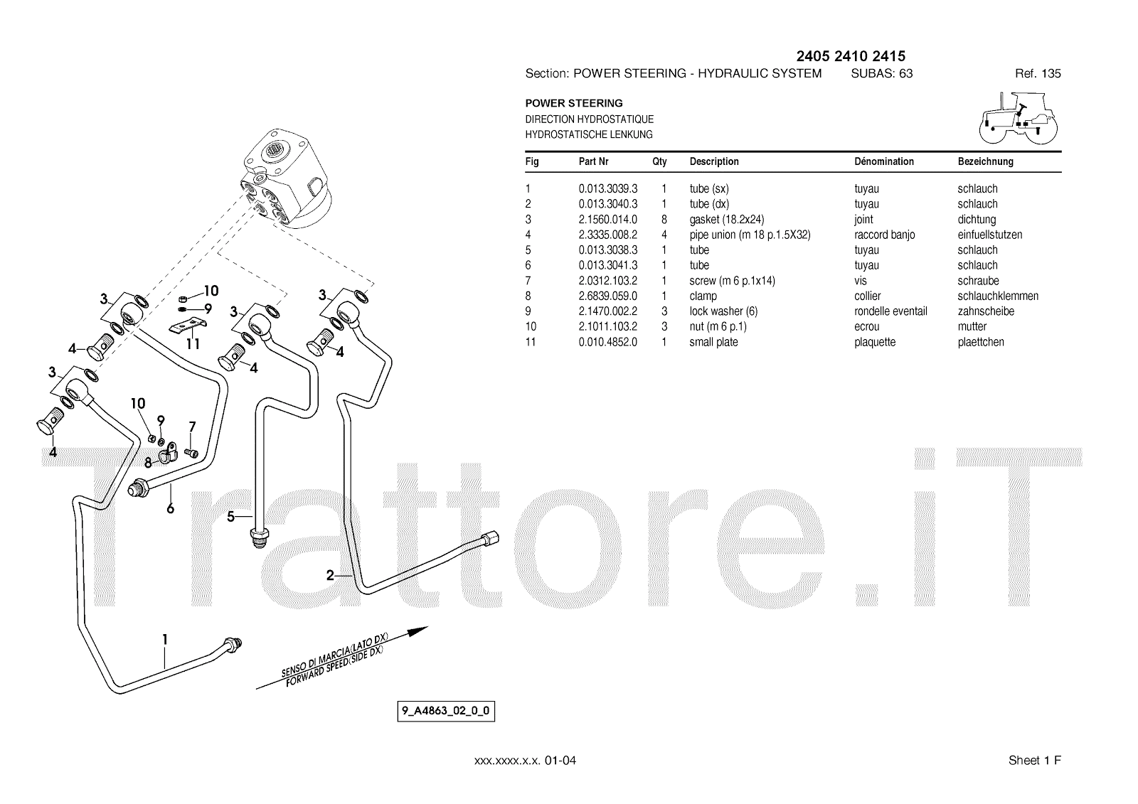 Manuale (esploso meccanico) per trattore / trattrice Massey Ferguson 2405