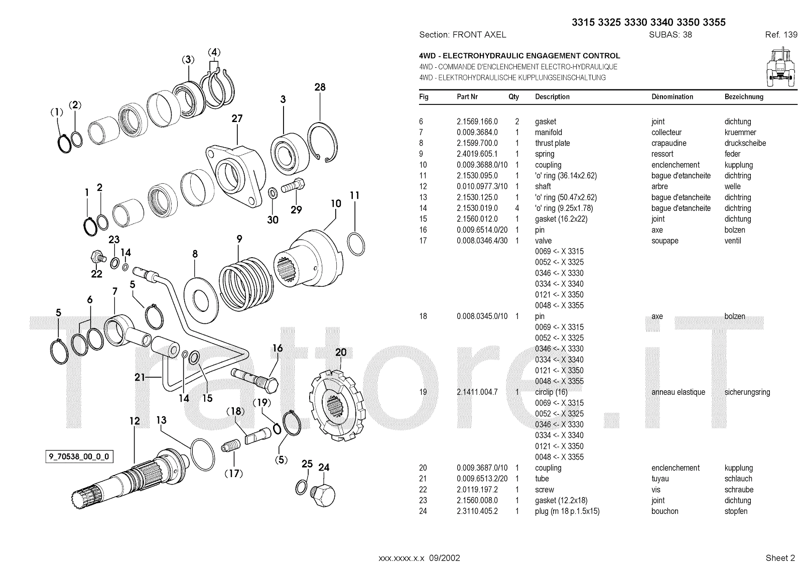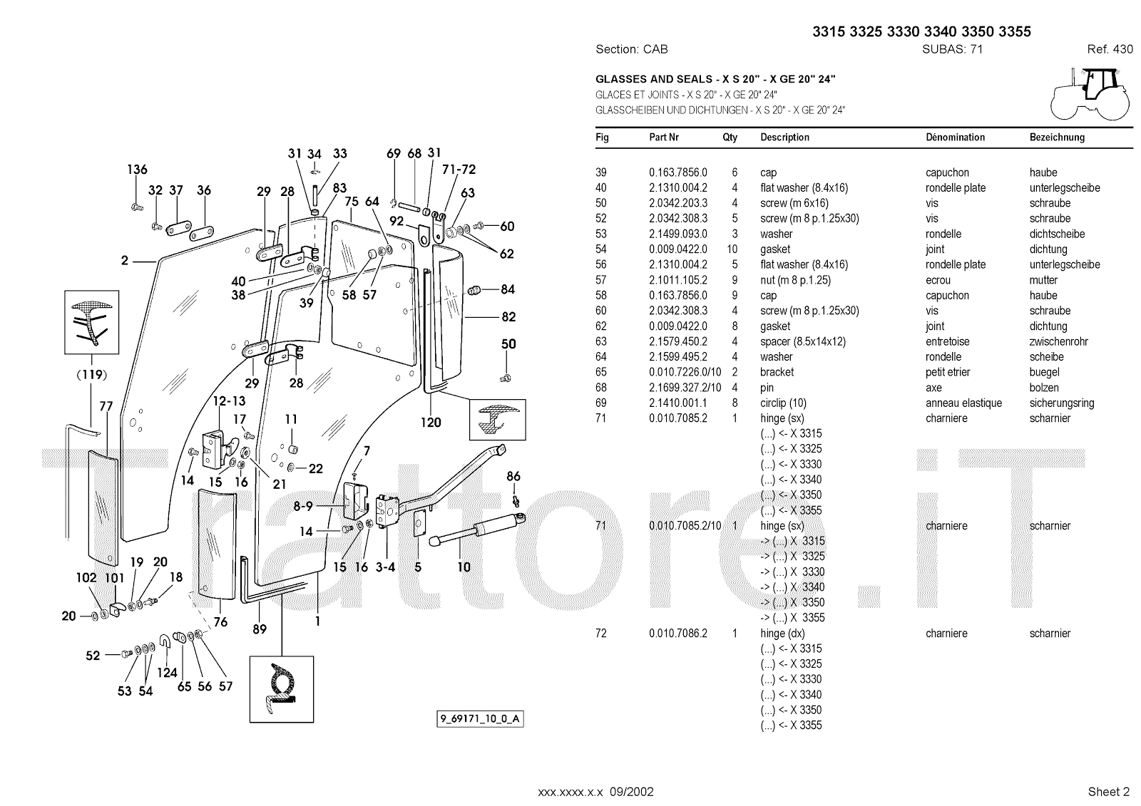 Manuale (esploso meccanico) per trattore / trattrice Massey Ferguson 3340