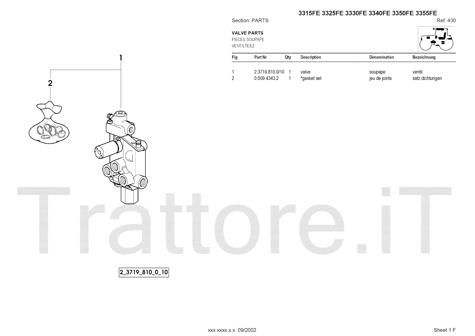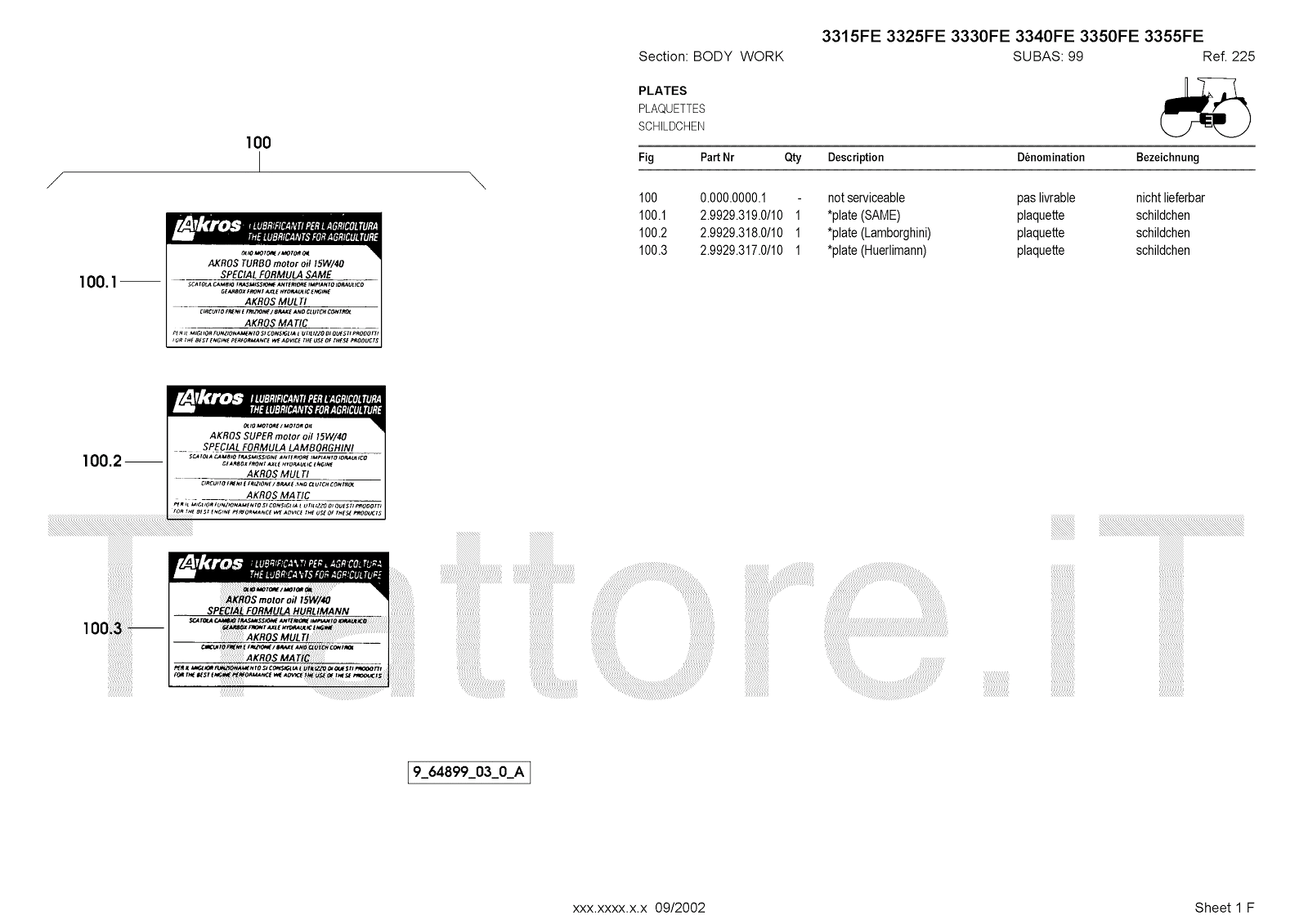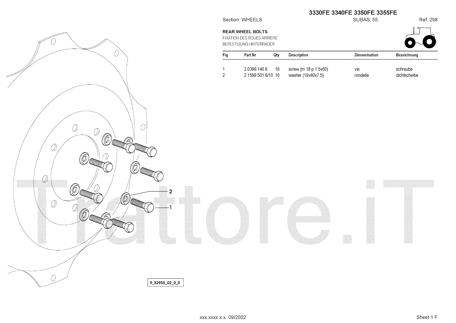 Manuale (esploso meccanico) per trattore / trattrice Massey Ferguson 3355FE
