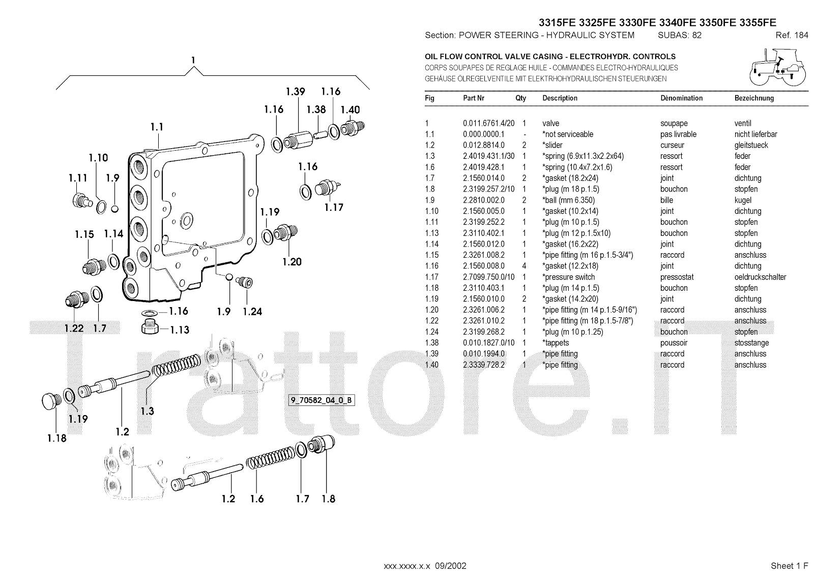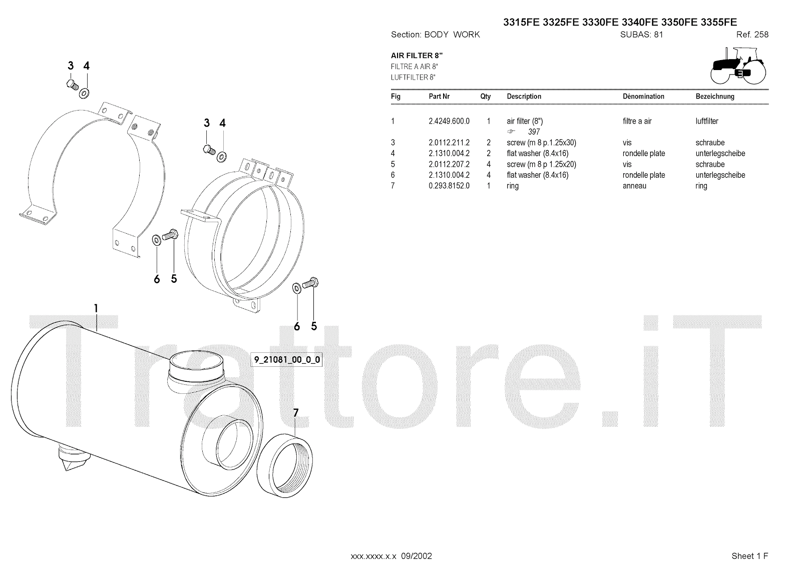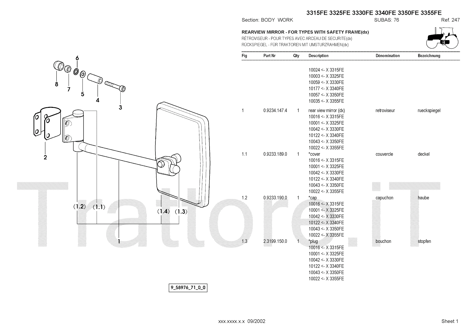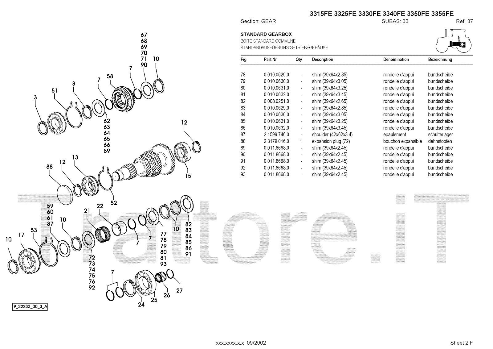 Manuale (esploso meccanico) per trattore / trattrice Massey Ferguson 3355FE