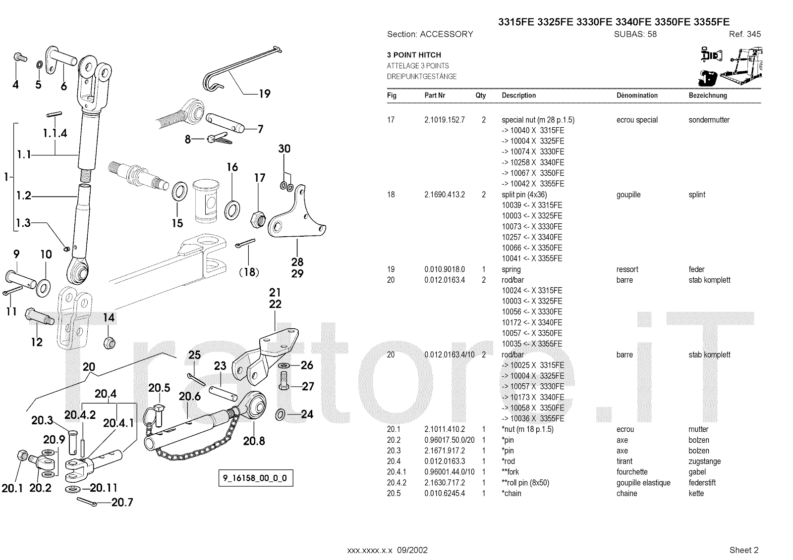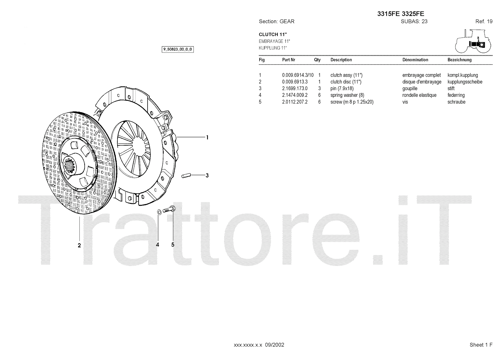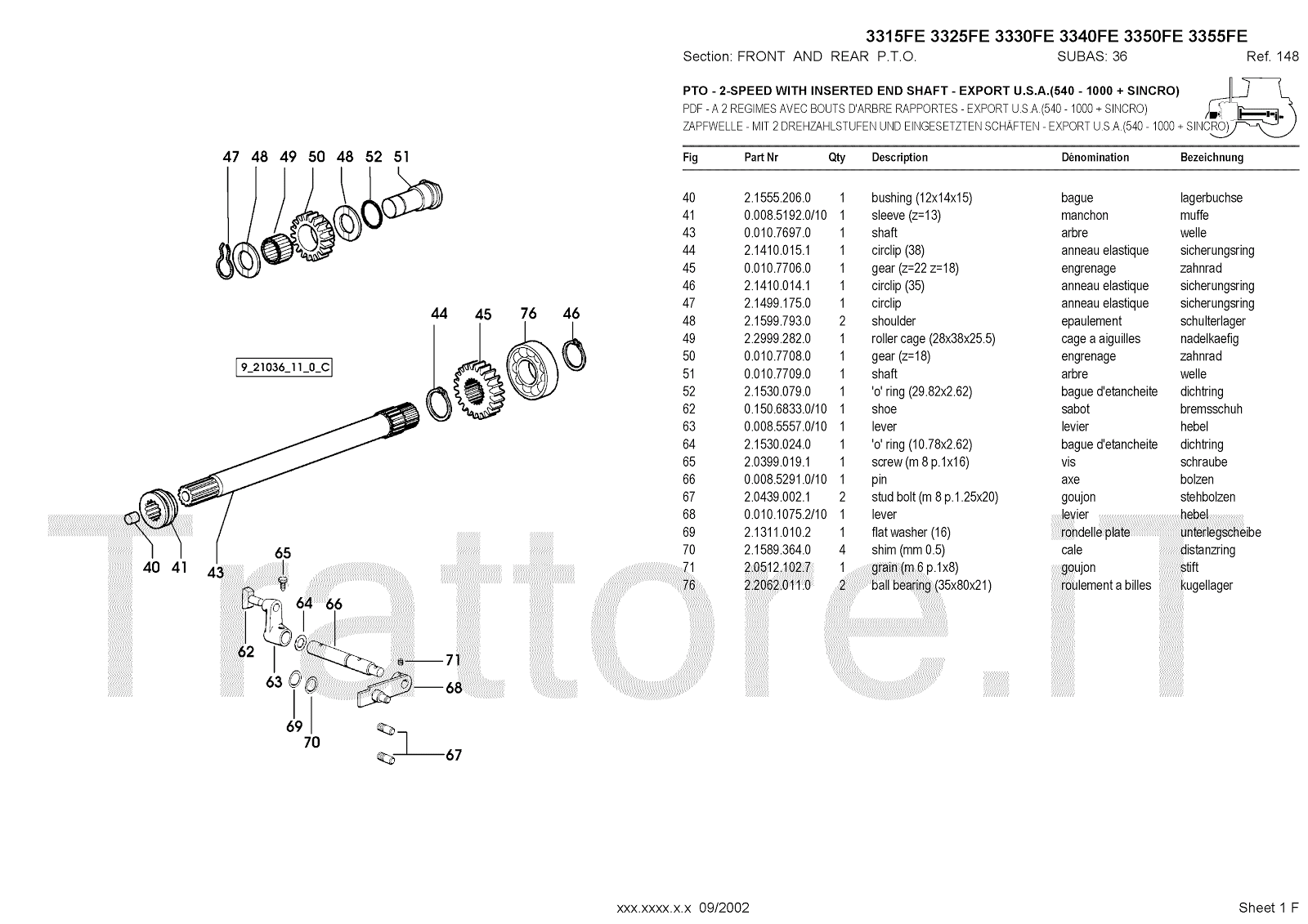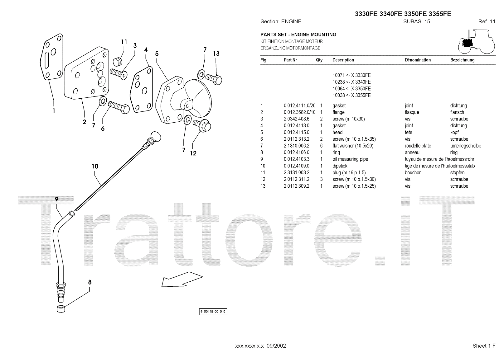 Manuale (esploso meccanico) per trattore / trattrice Massey Ferguson 3325FE