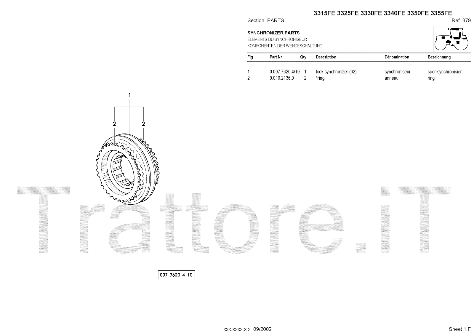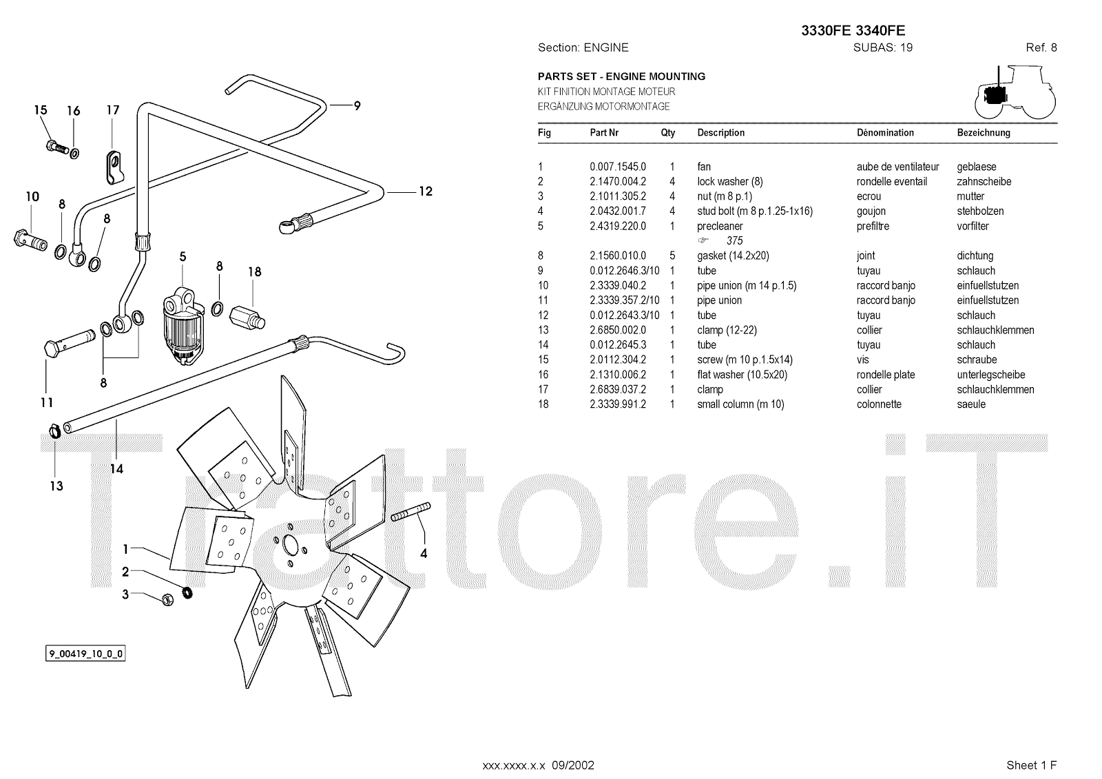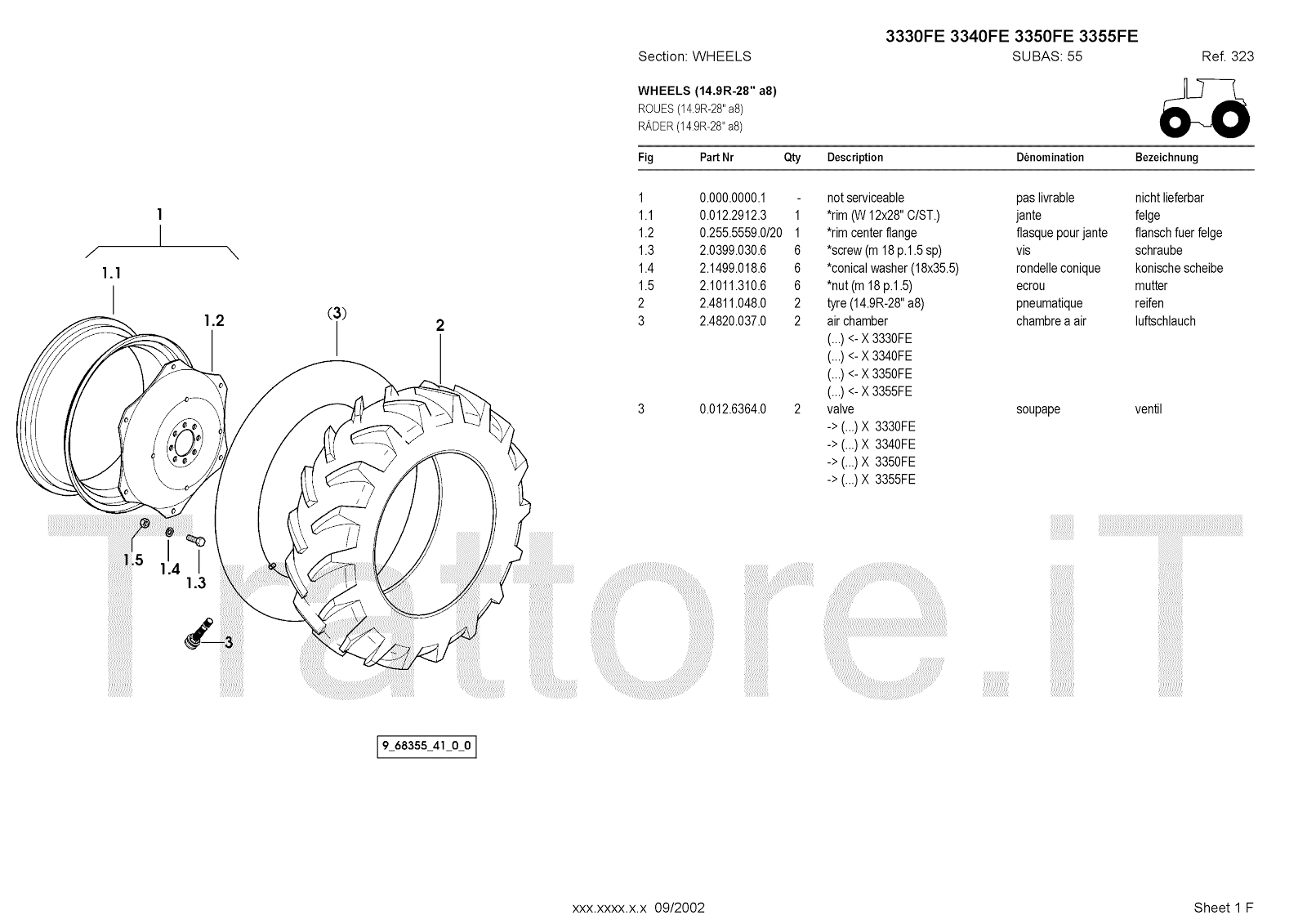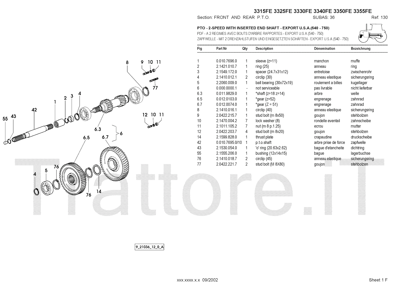 Manuale (esploso meccanico) per trattore / trattrice Massey Ferguson 3325FE