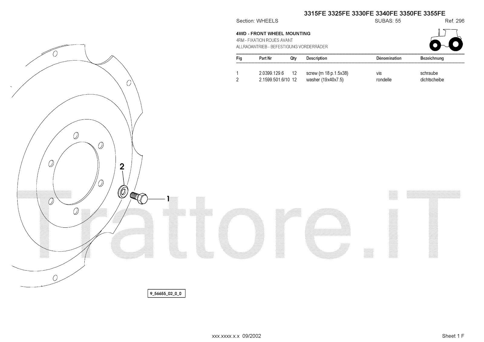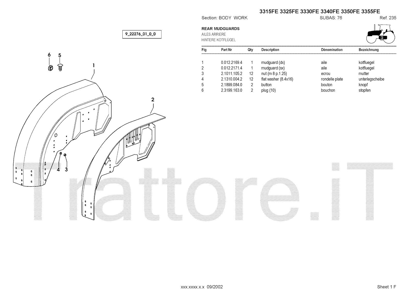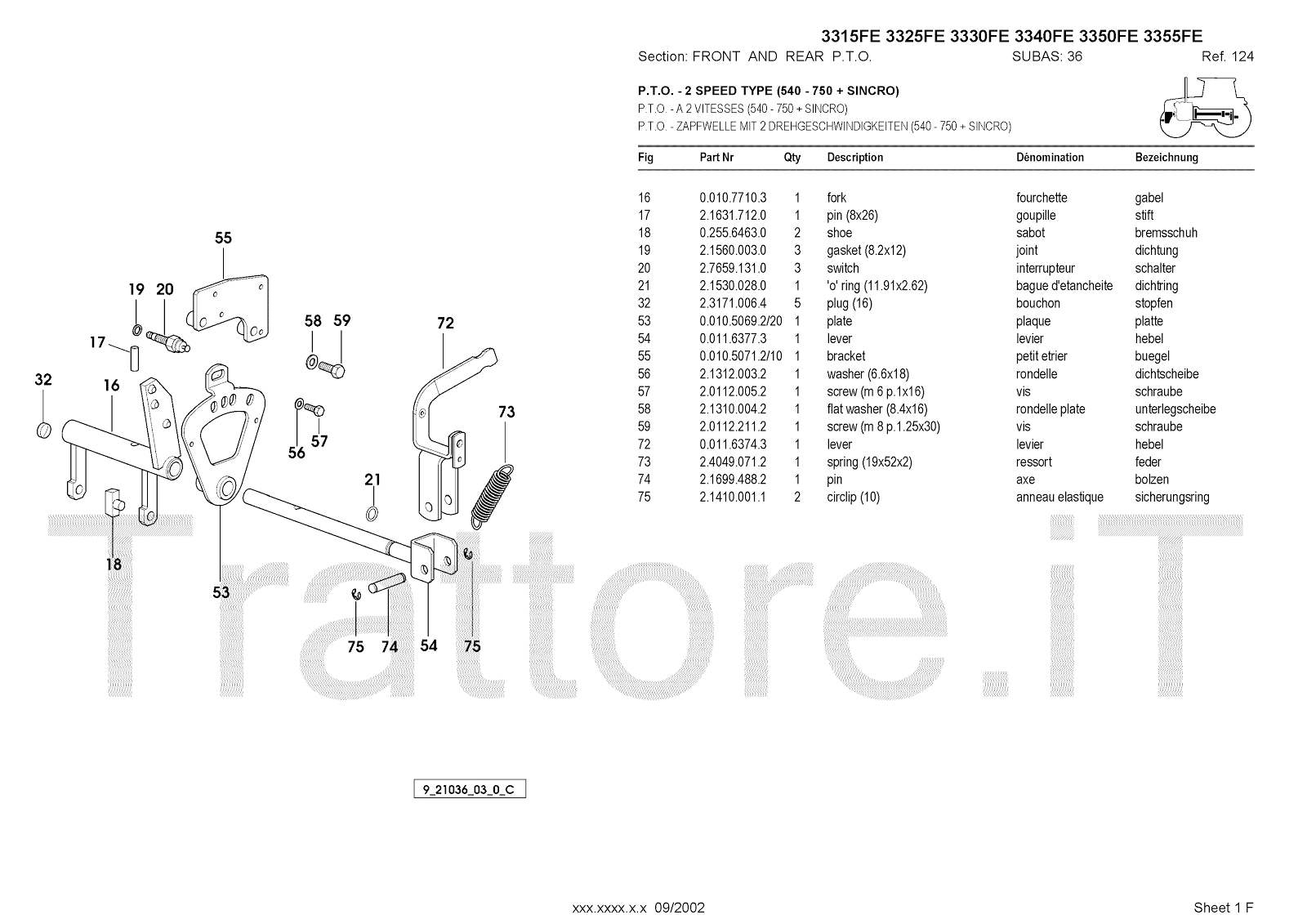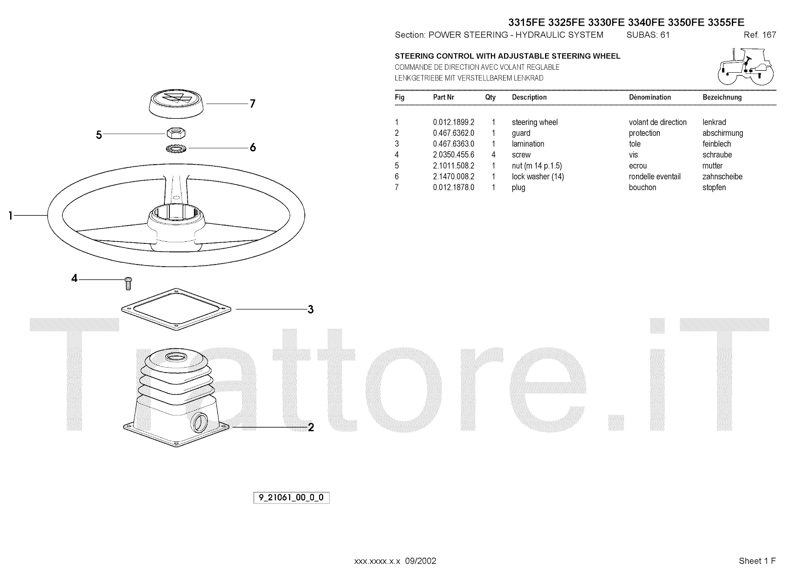 Manuale (esploso meccanico) per trattore / trattrice Massey Ferguson 3325FE