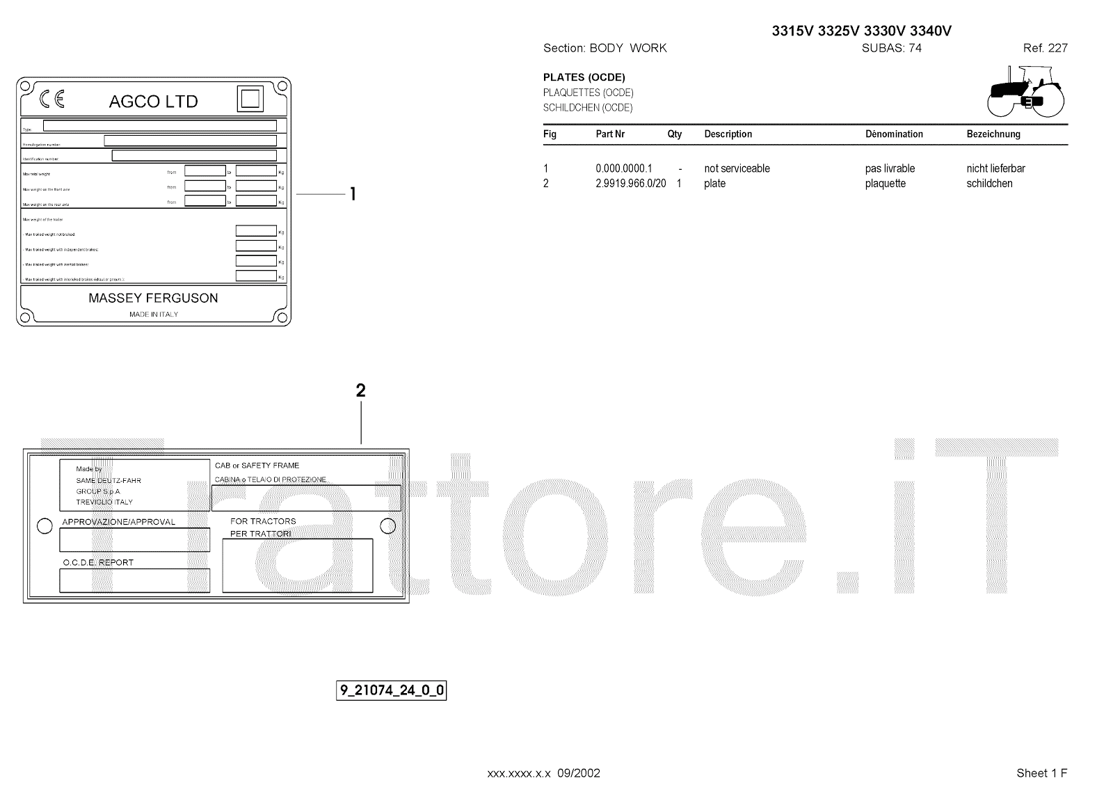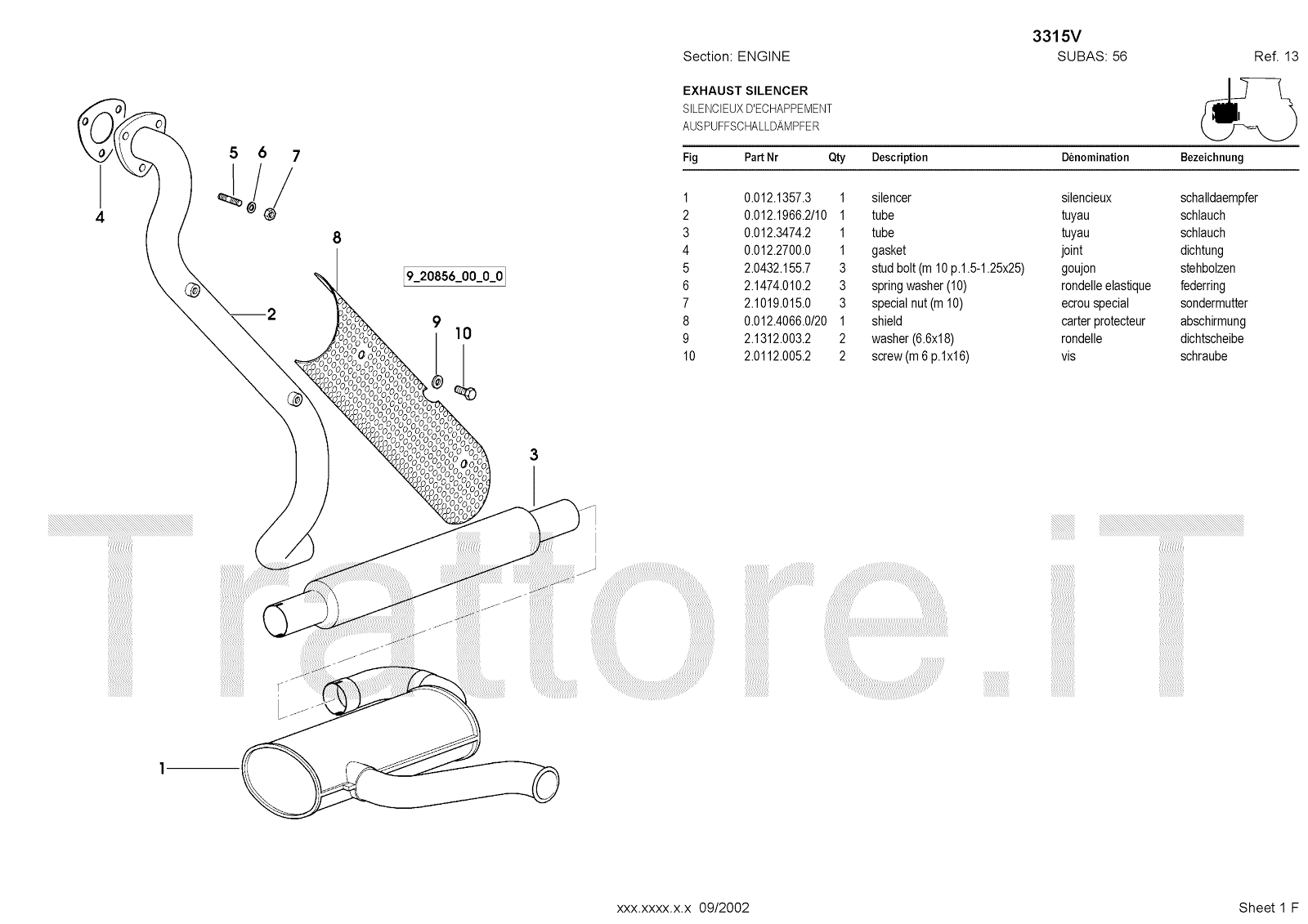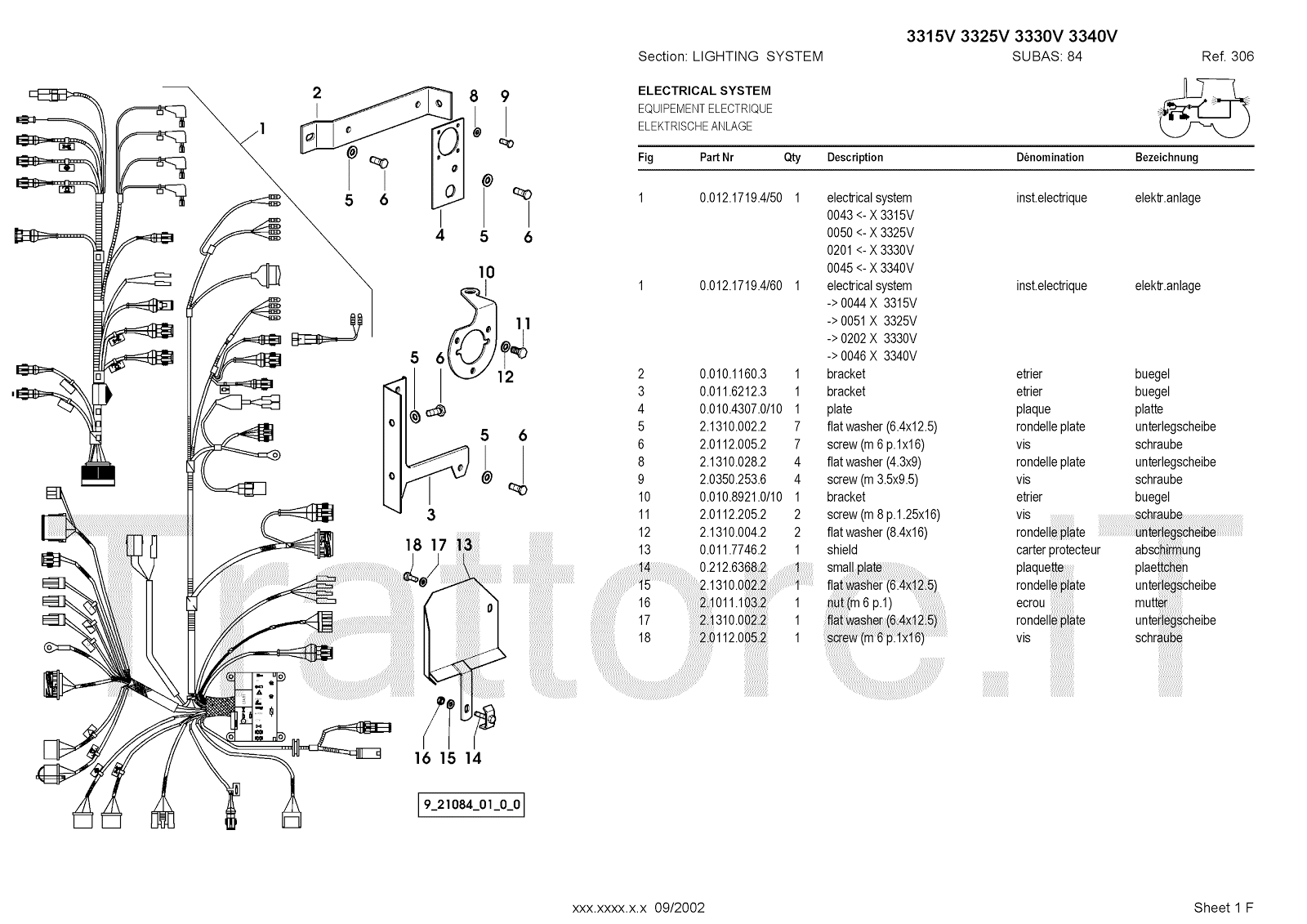 Manuale (esploso meccanico) per trattore / trattrice Massey Ferguson 3315V
