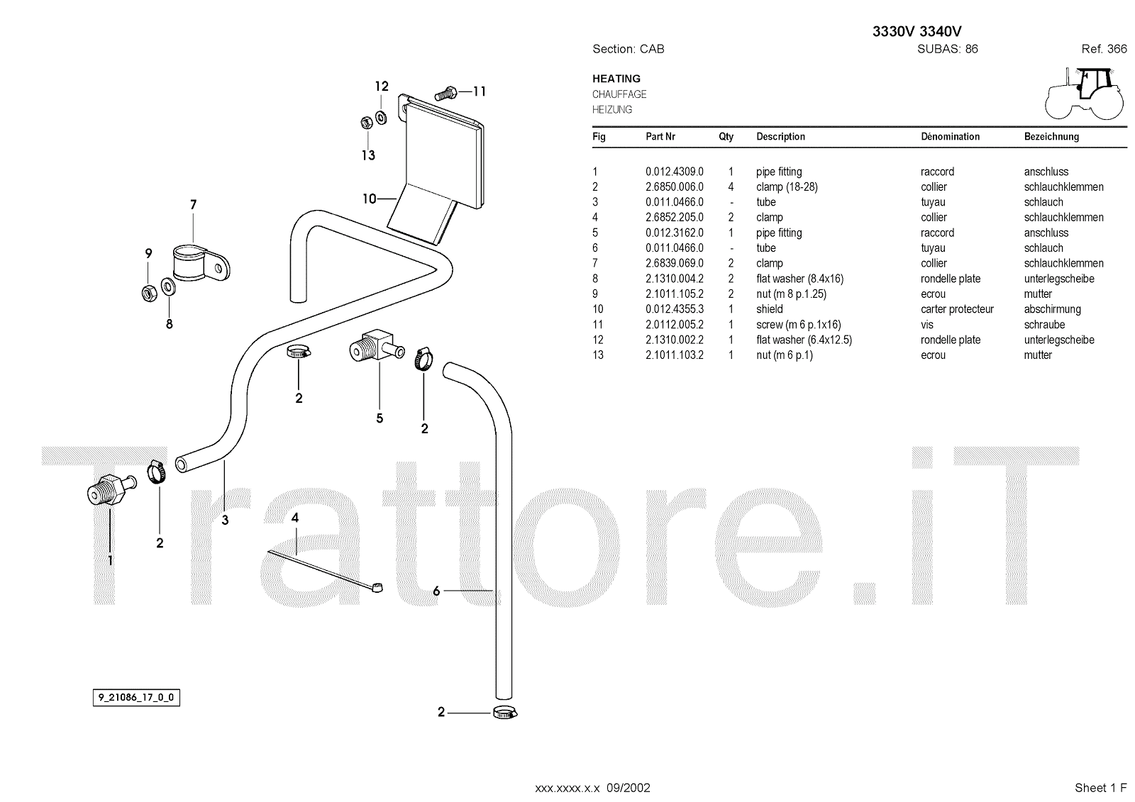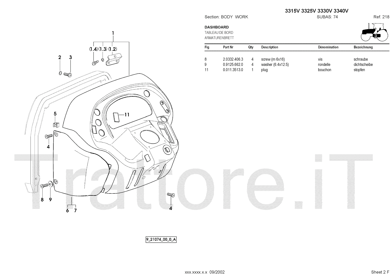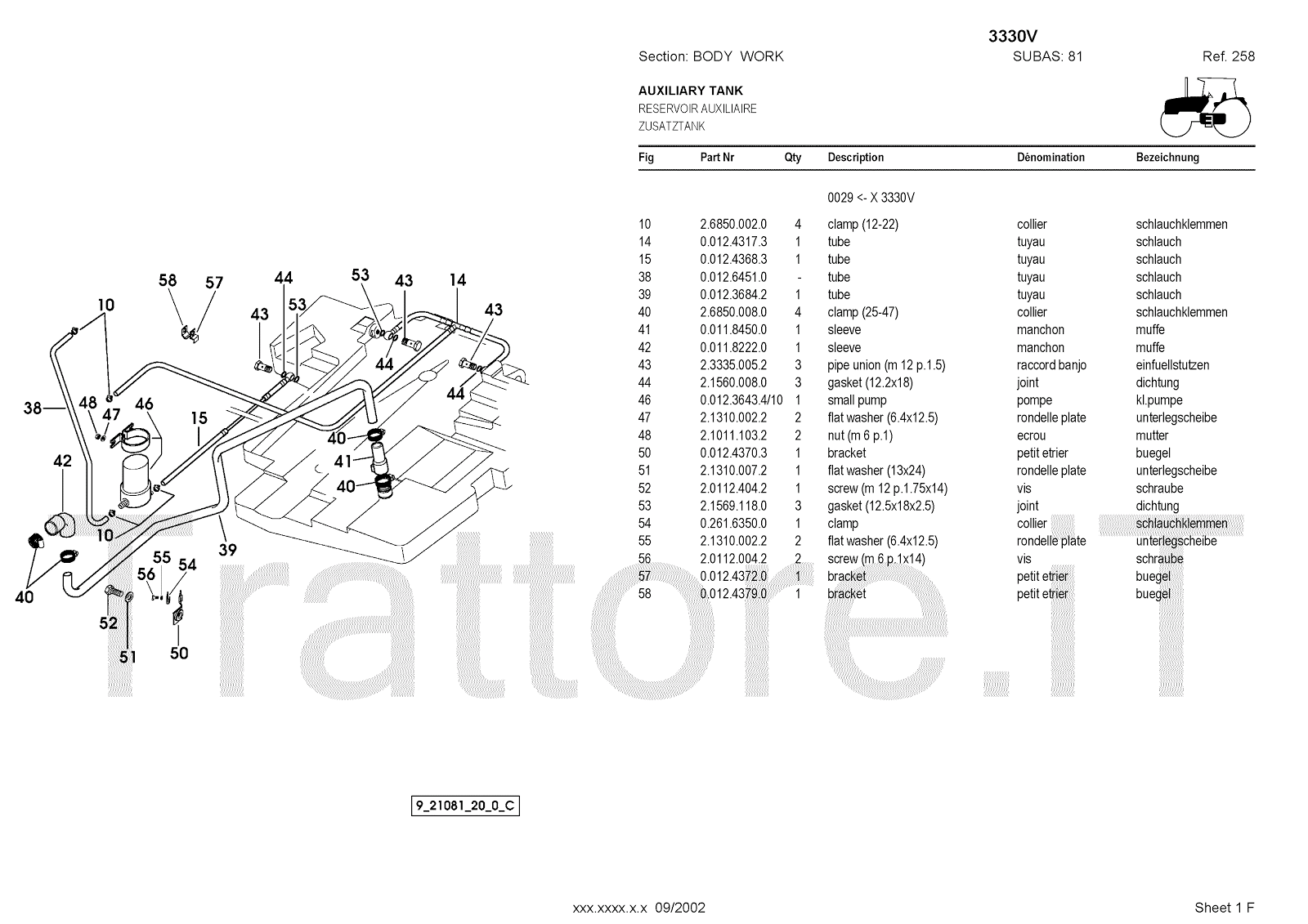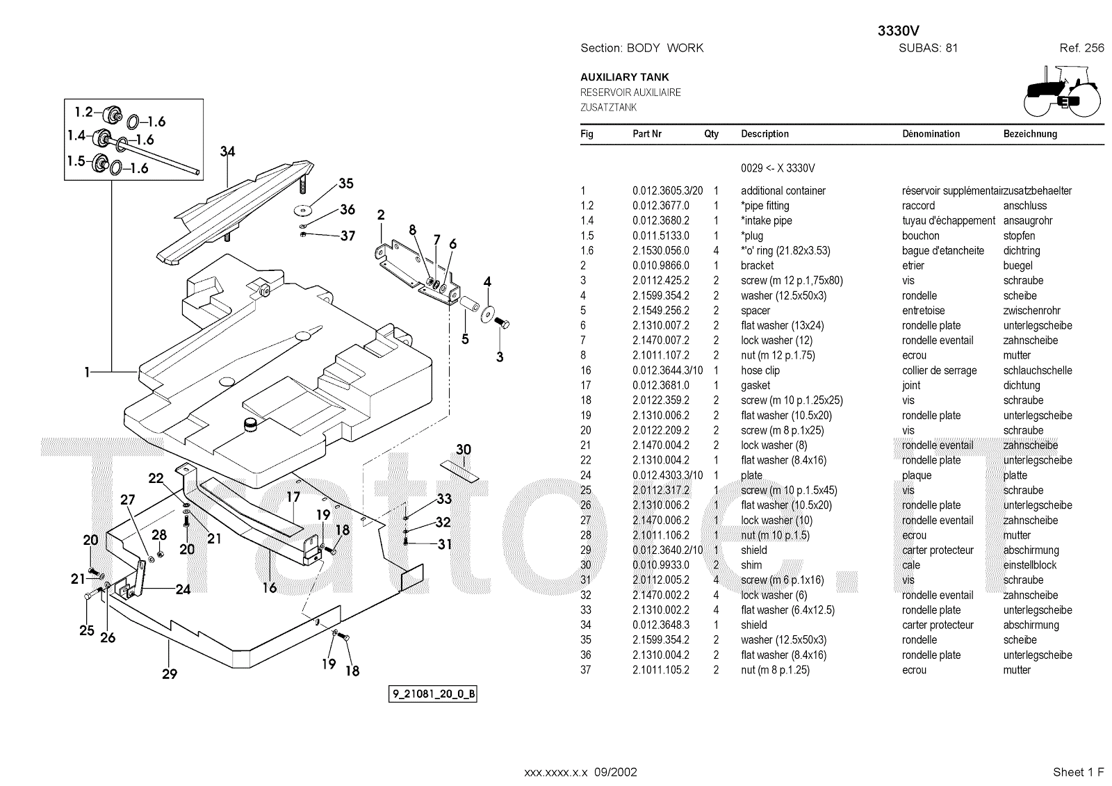 Manuale (esploso meccanico) per trattore / trattrice Massey Ferguson 3315V
