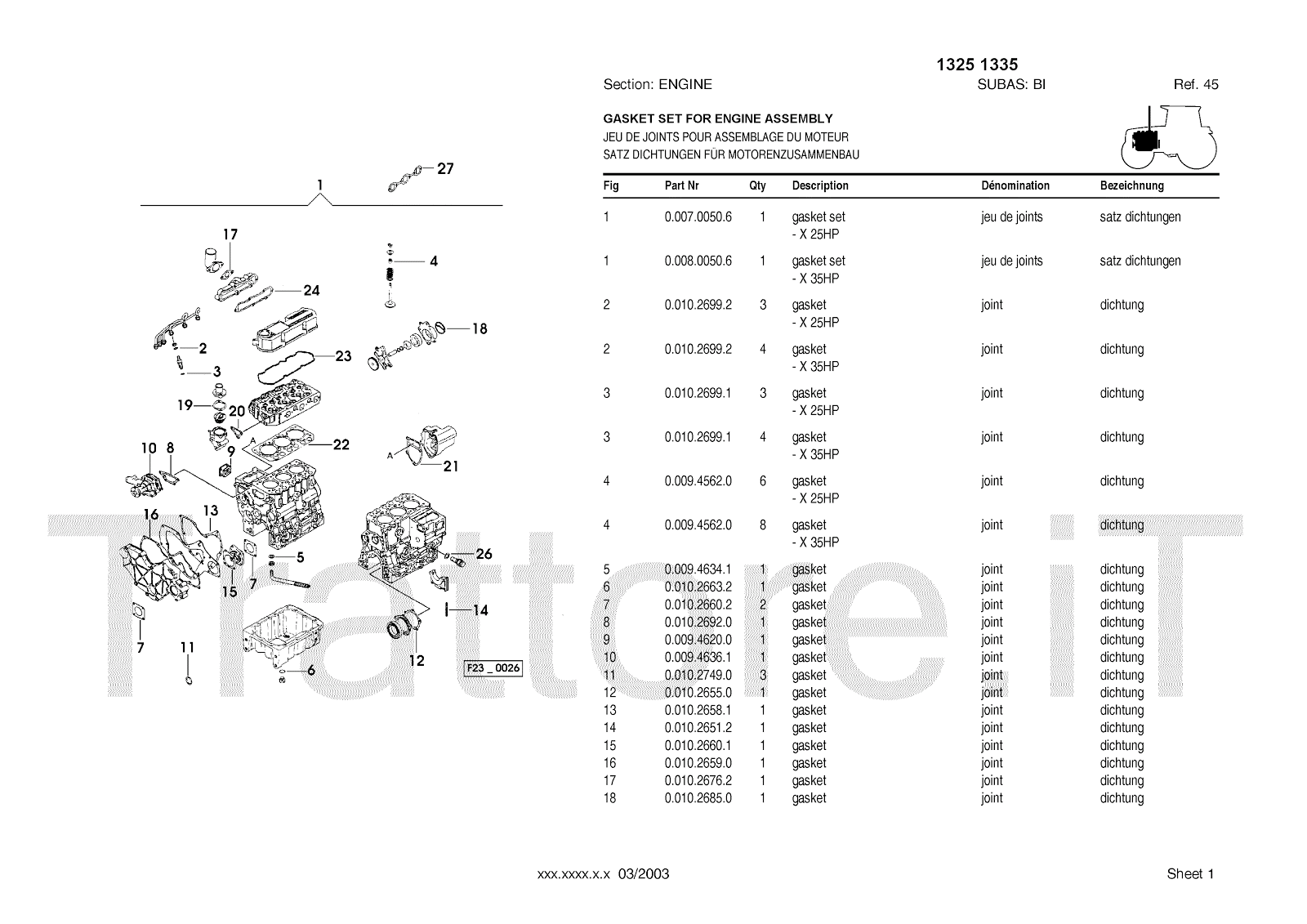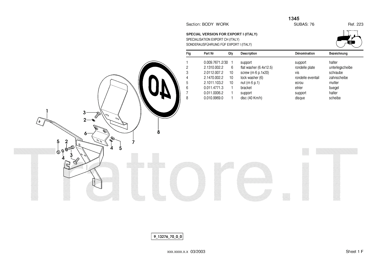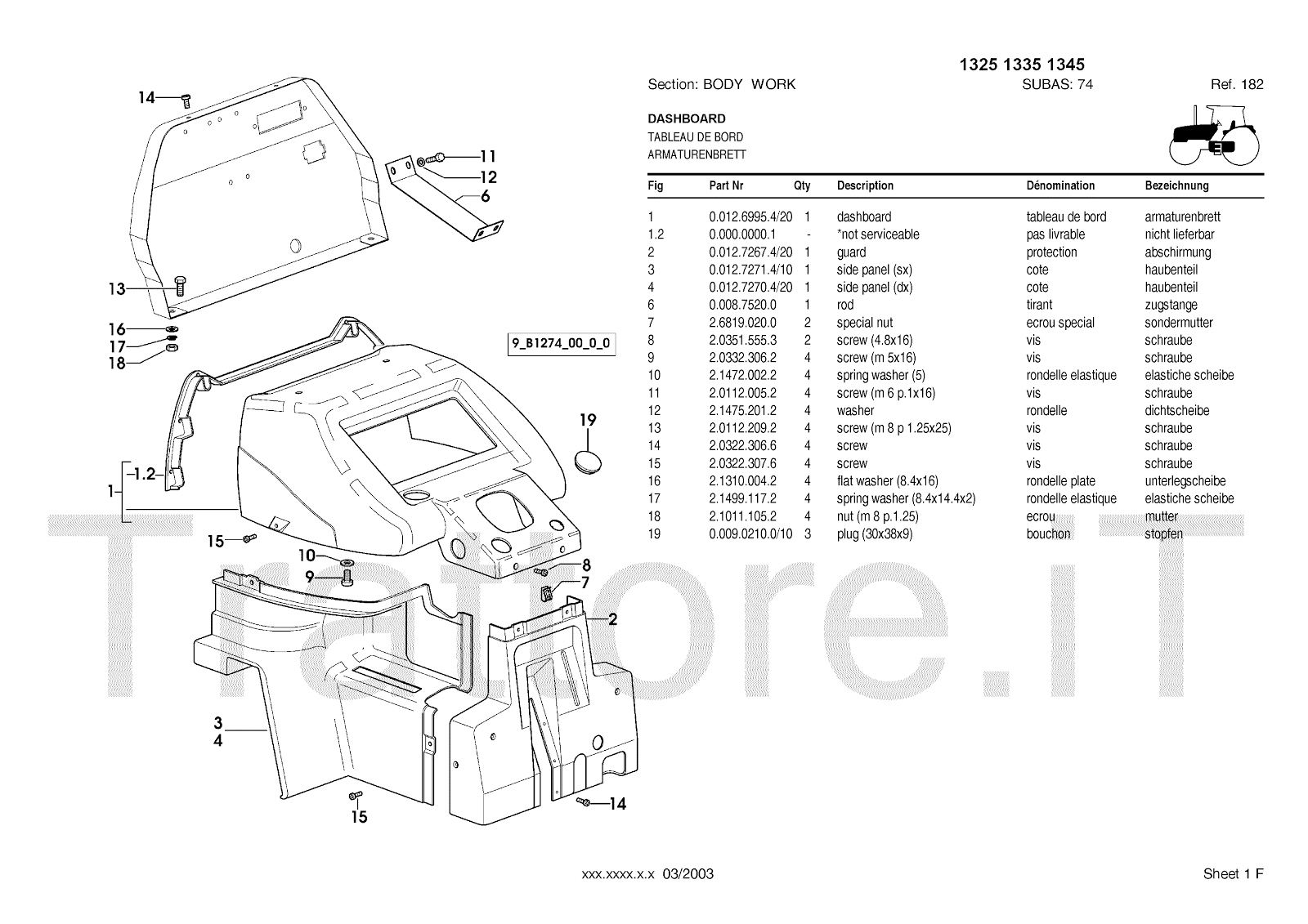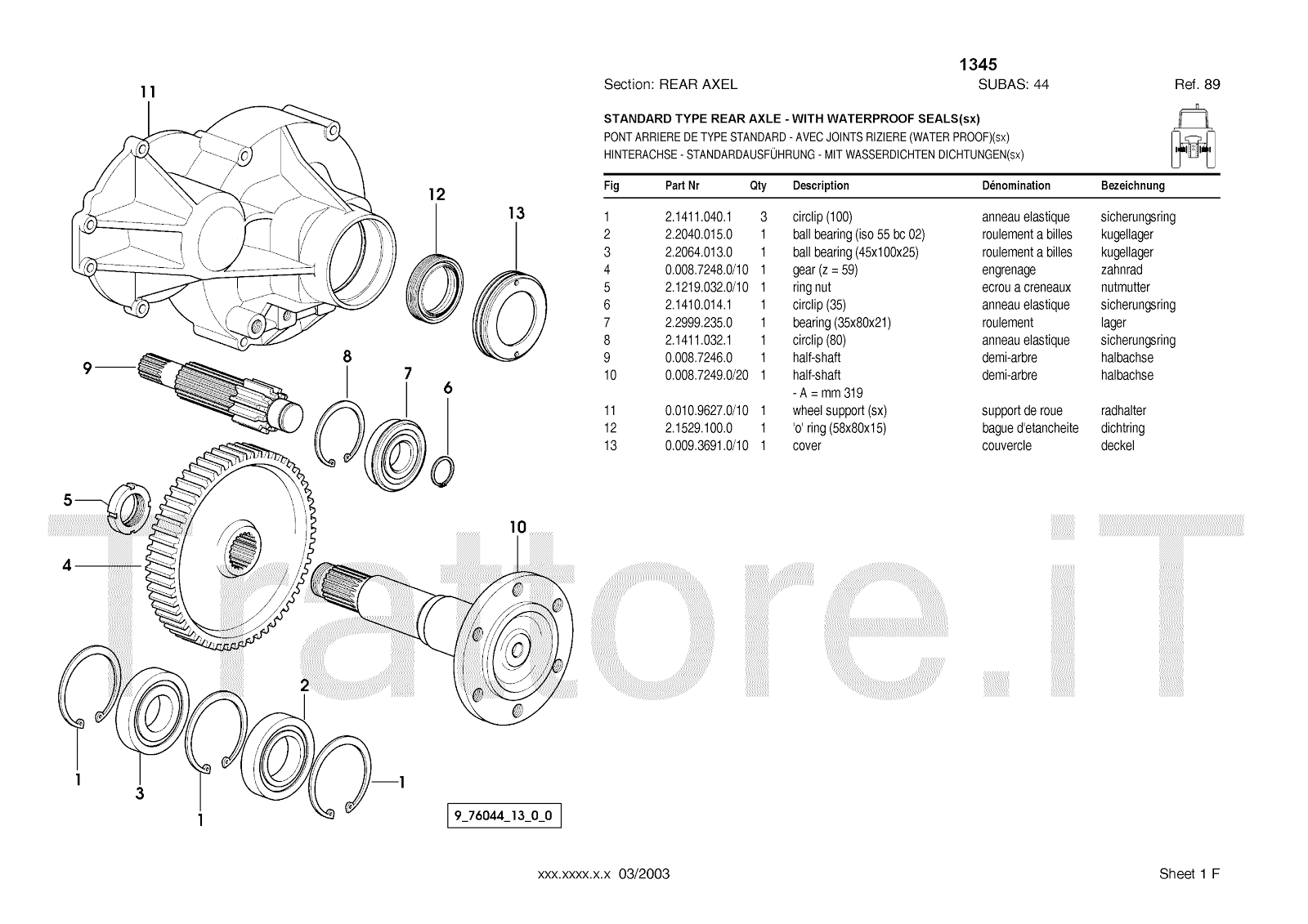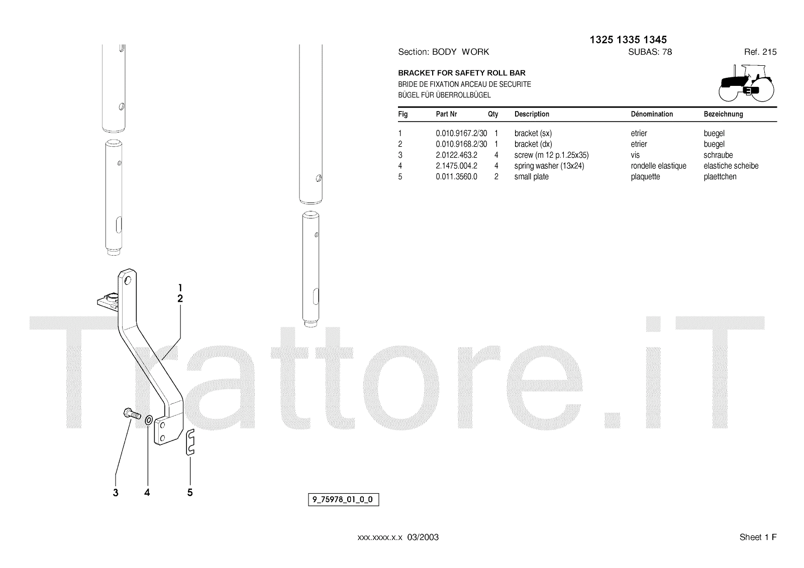 Manuale (esploso meccanico) per trattore / trattrice Massey Ferguson 1345