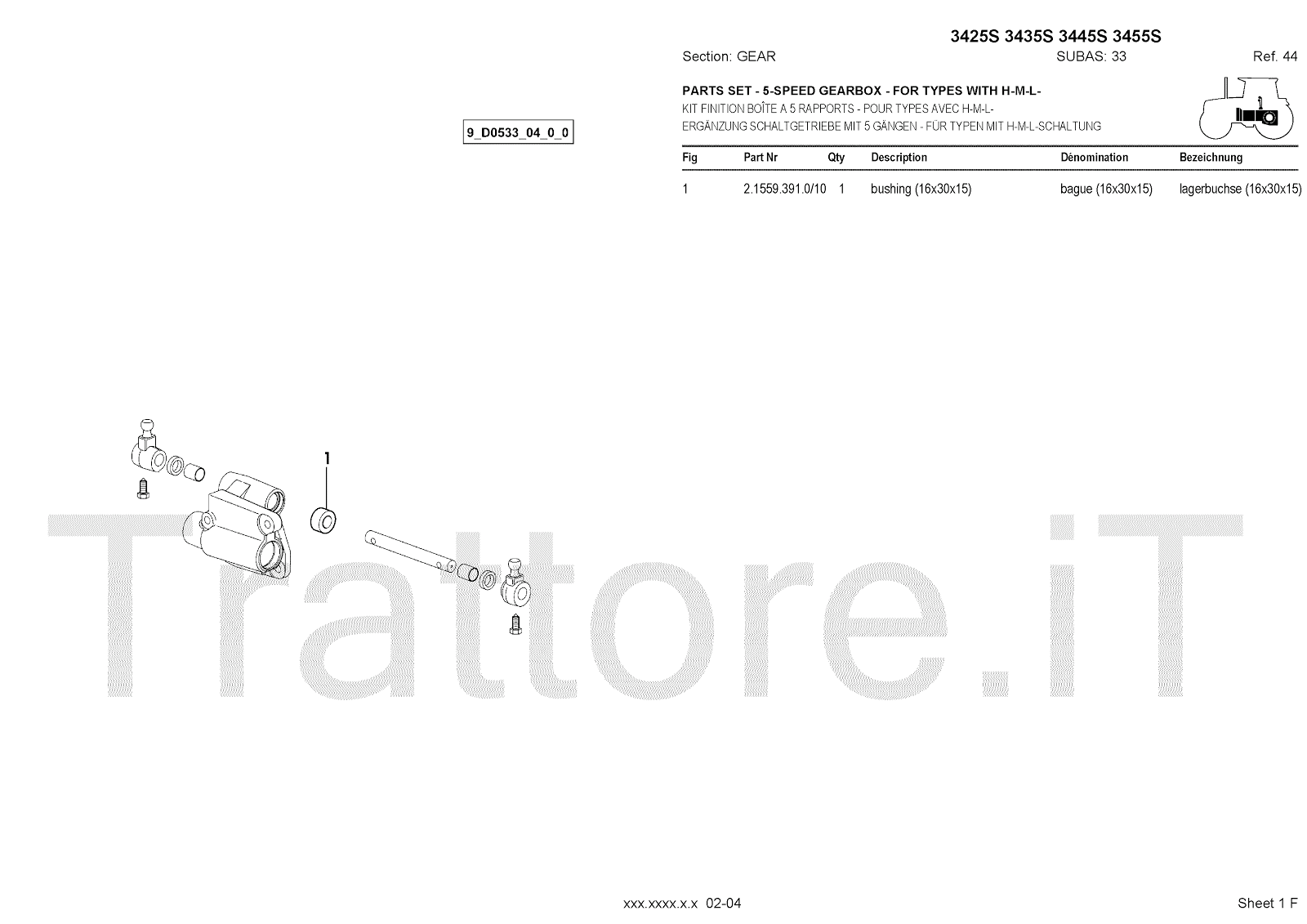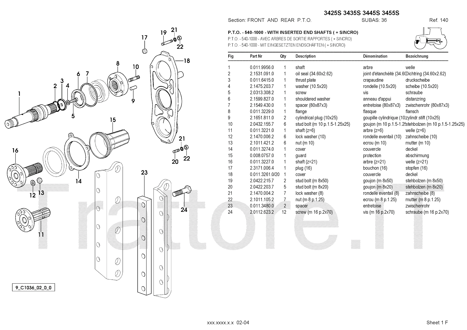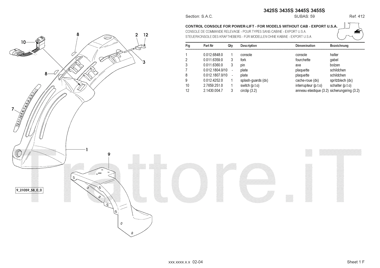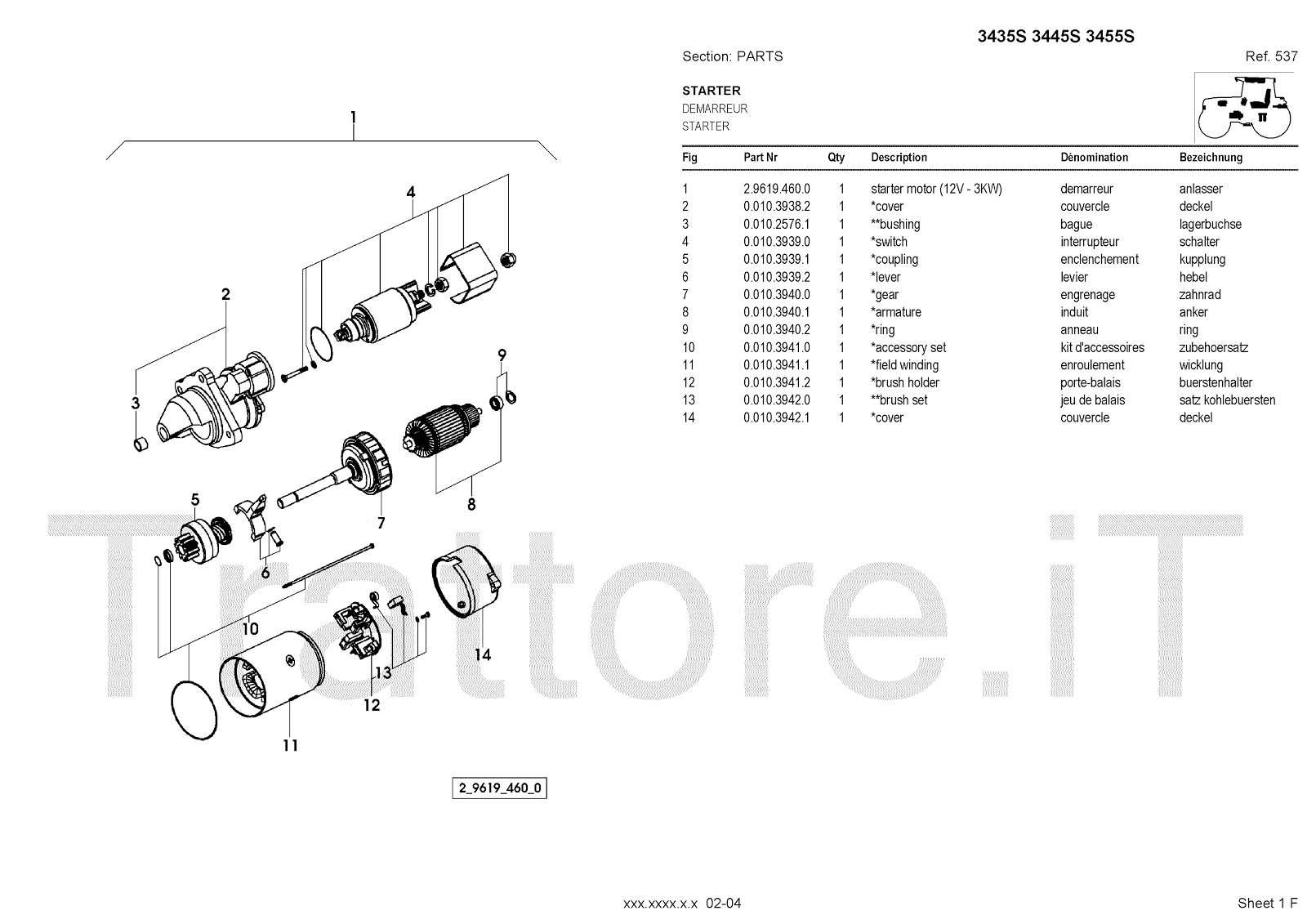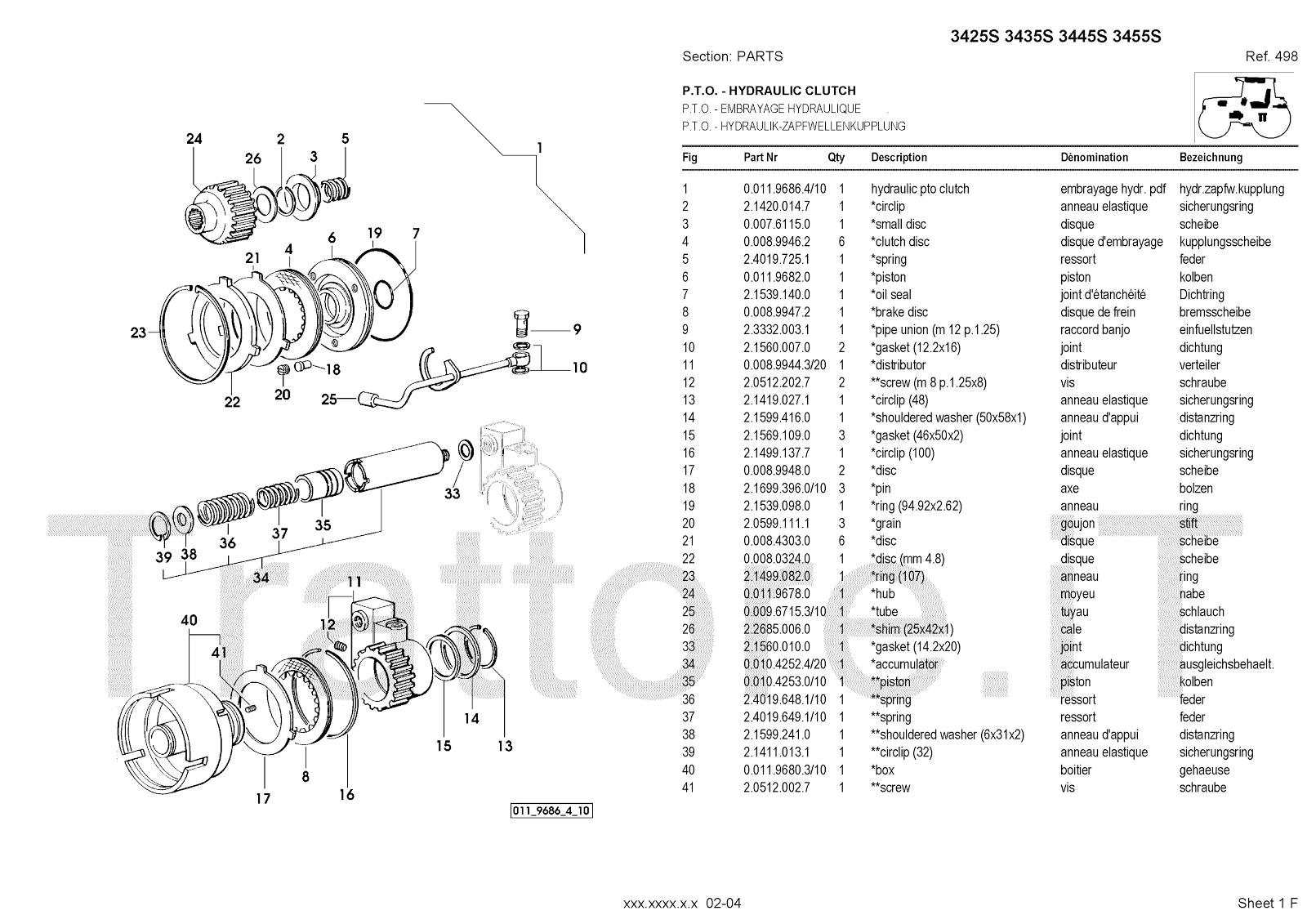 Manuale (esploso meccanico) per trattore / trattrice Massey Ferguson 3425S