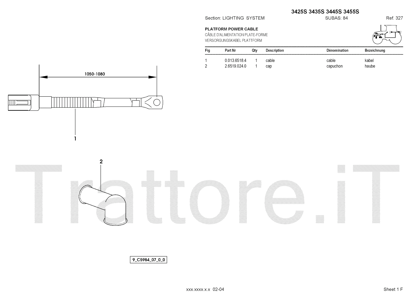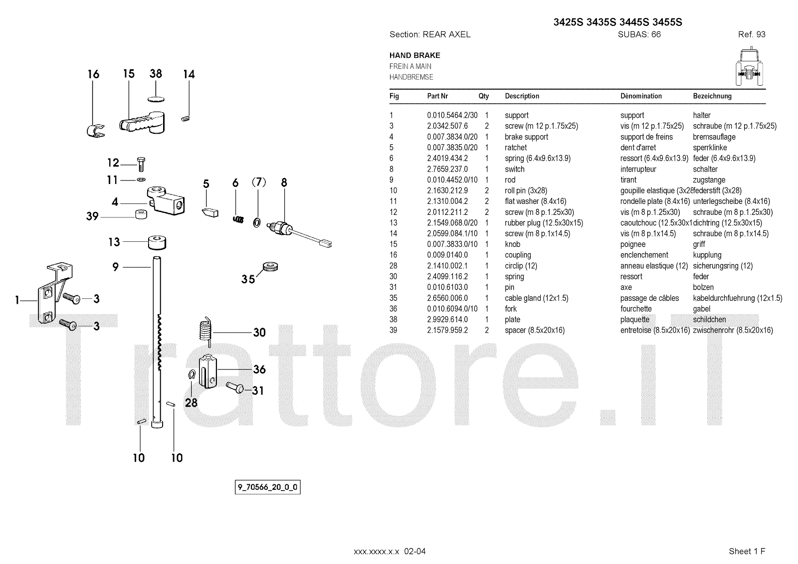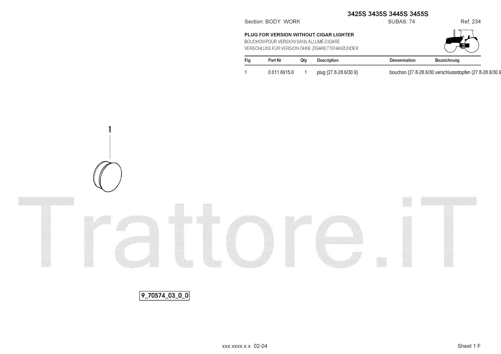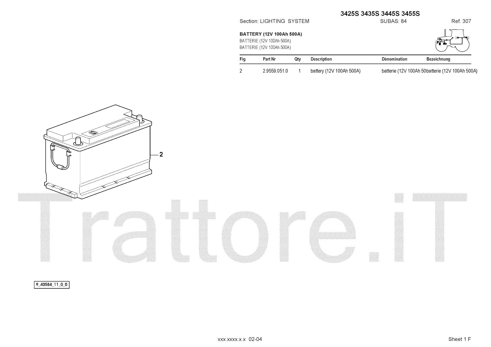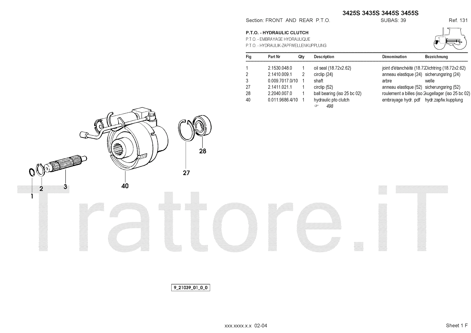 Manuale (esploso meccanico) per trattore / trattrice Massey Ferguson 3425S