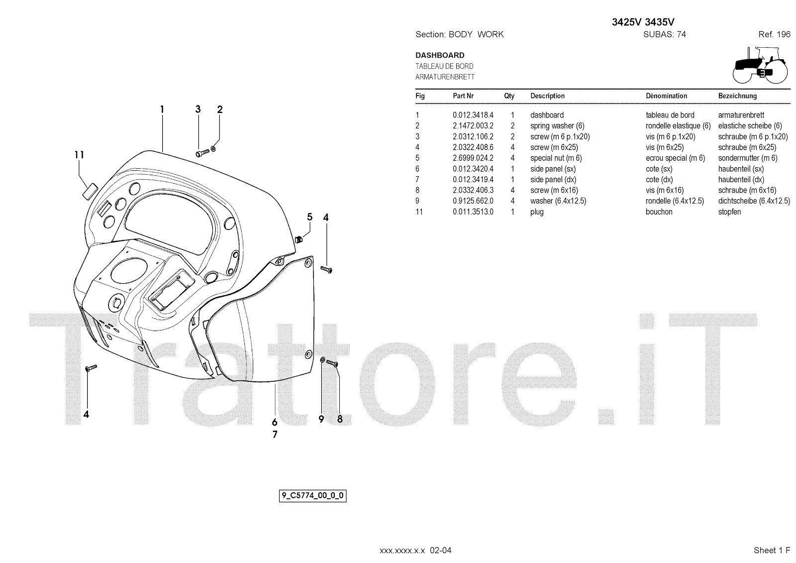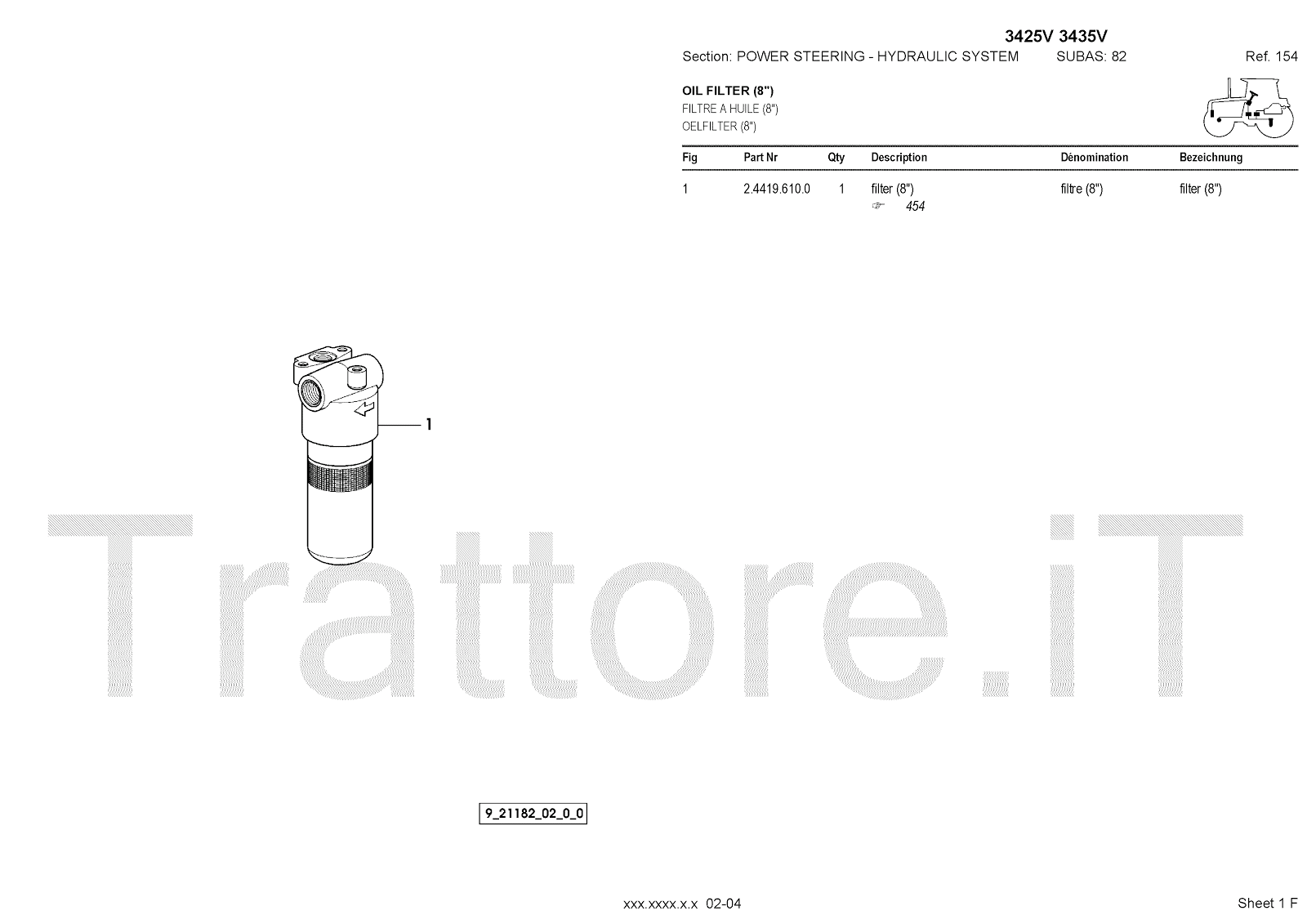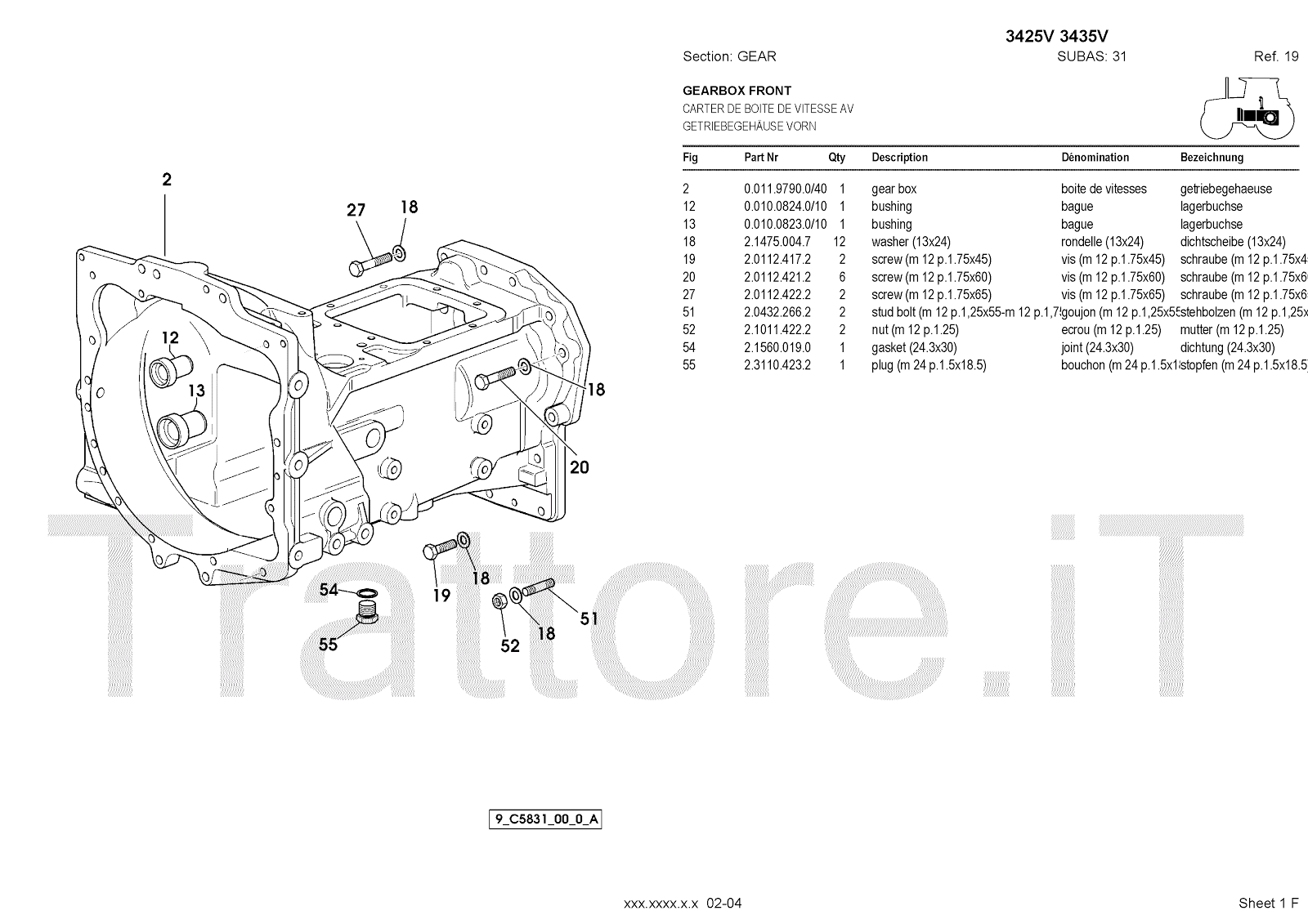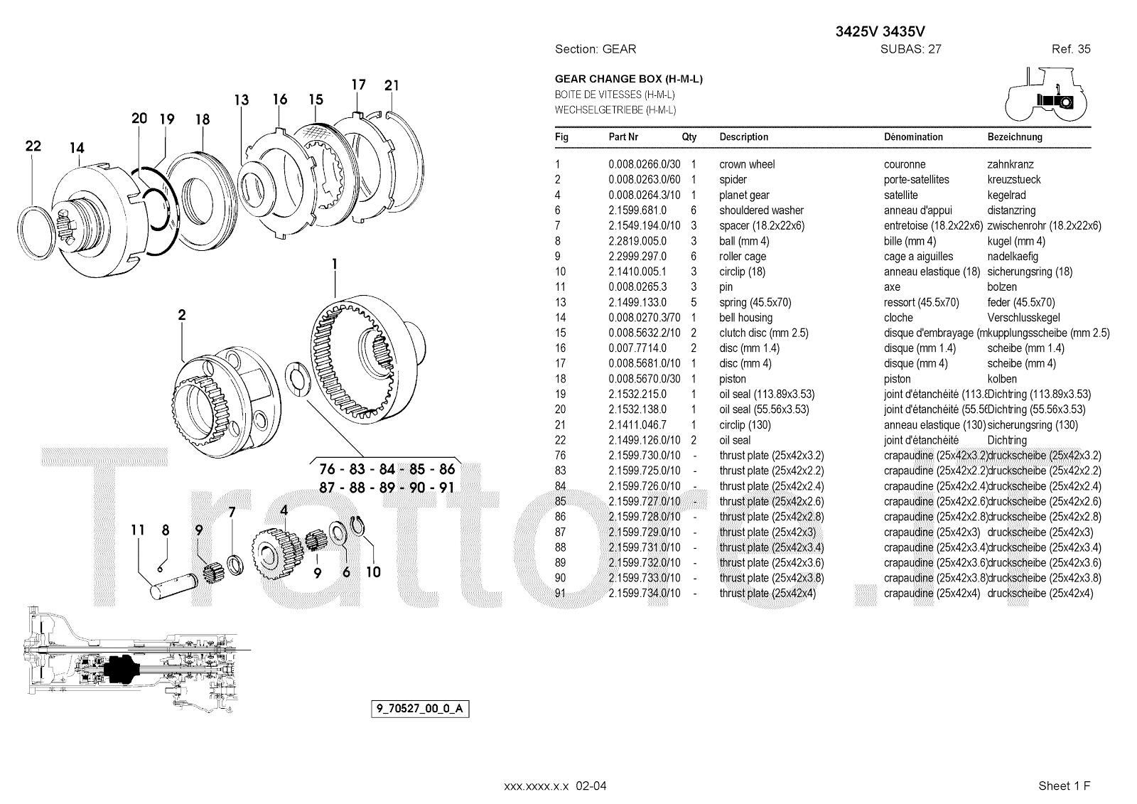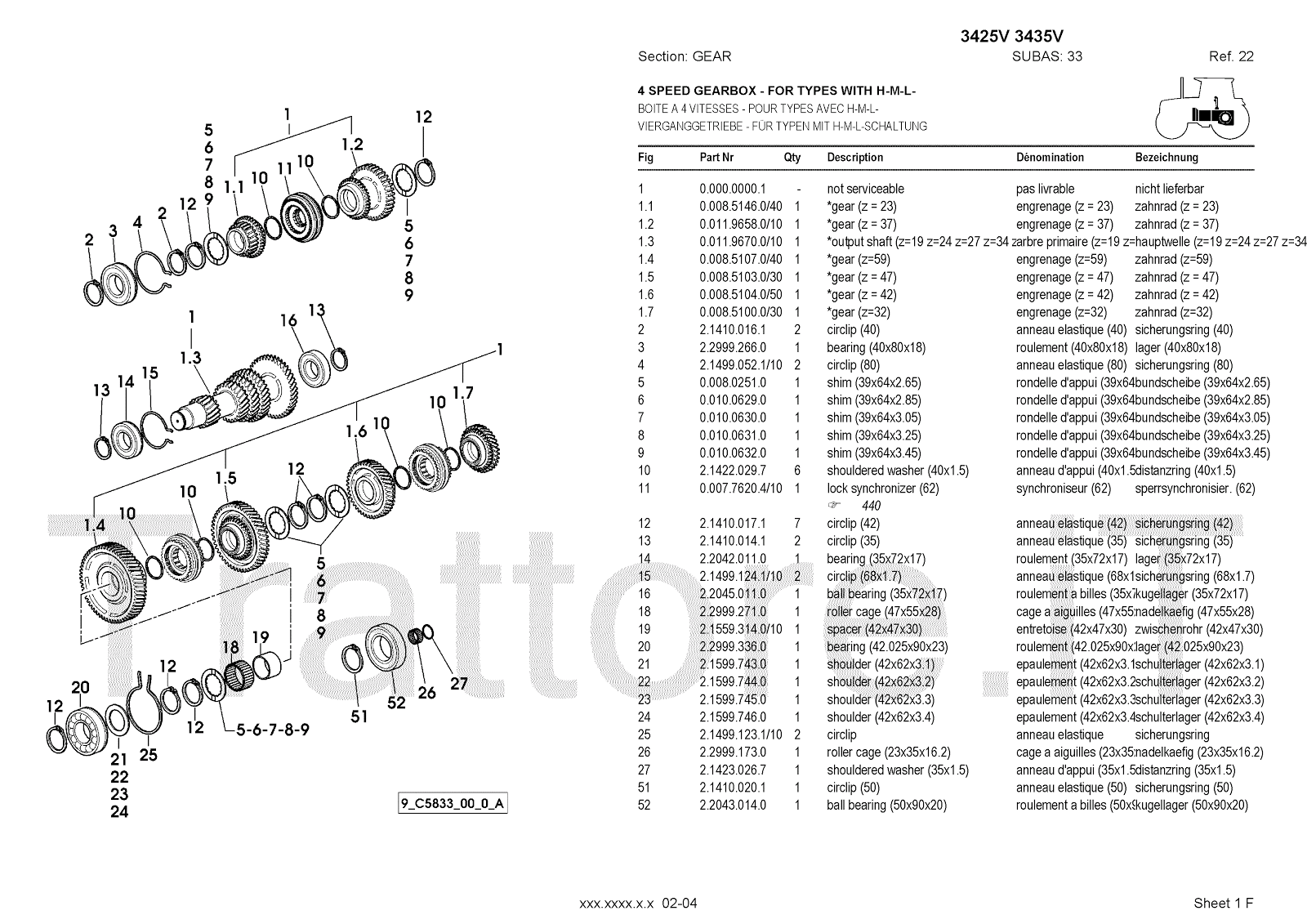 Manuale (esploso meccanico) per trattore / trattrice Massey Ferguson 3425V