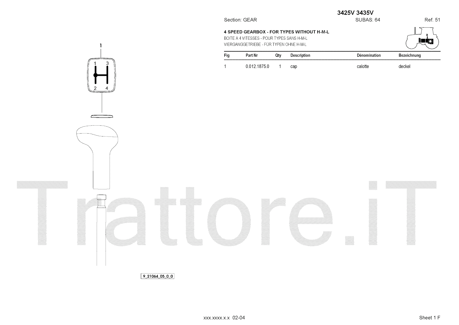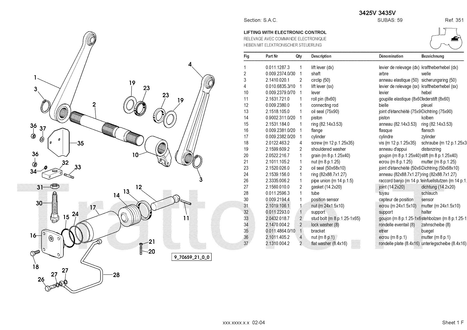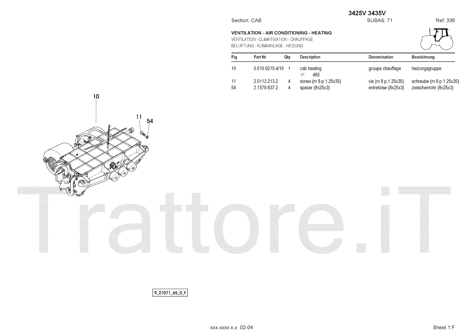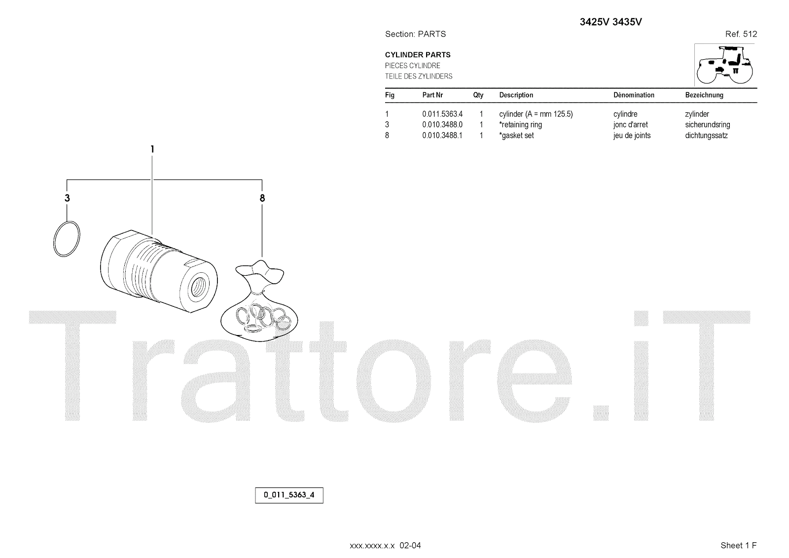 Manuale (esploso meccanico) per trattore / trattrice Massey Ferguson 3425V