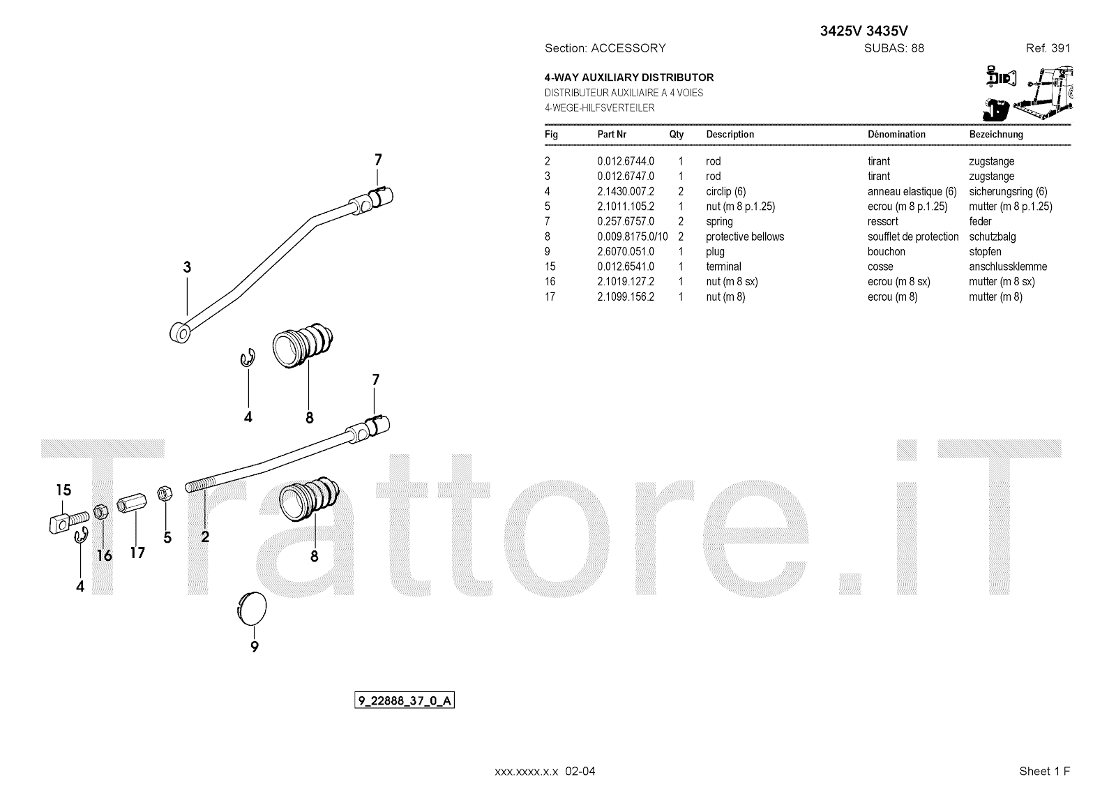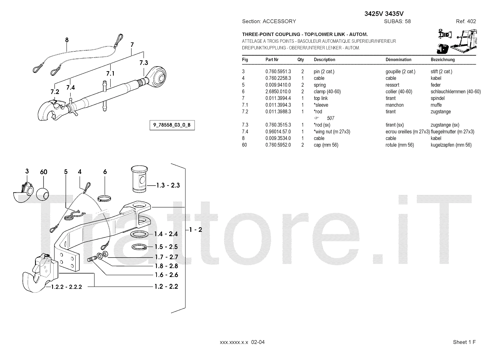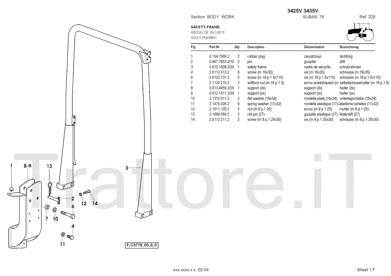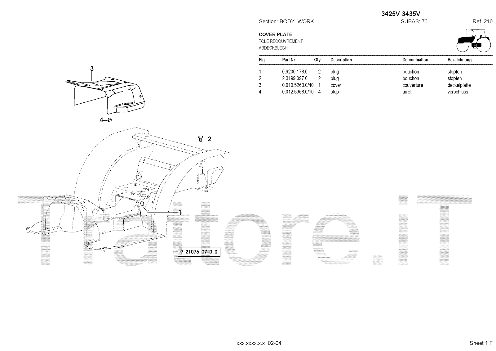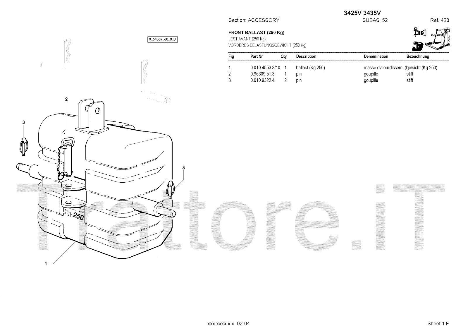 Manuale (esploso meccanico) per trattore / trattrice Massey Ferguson 3425V