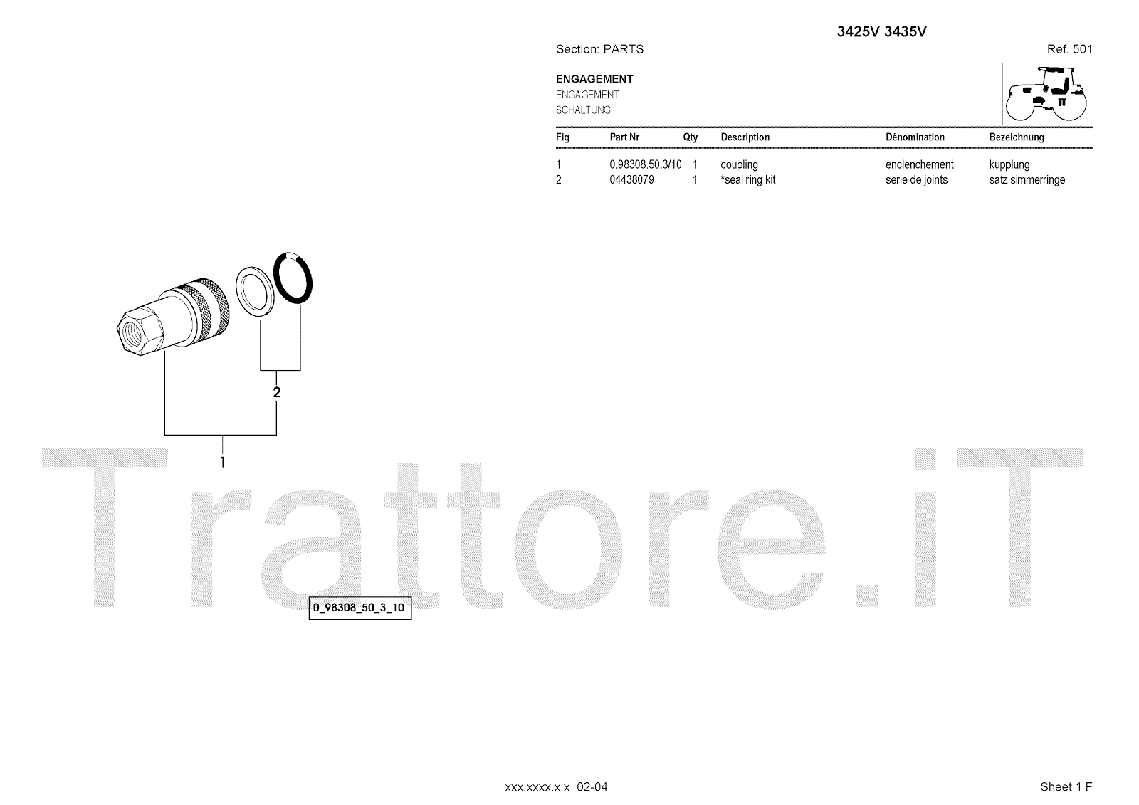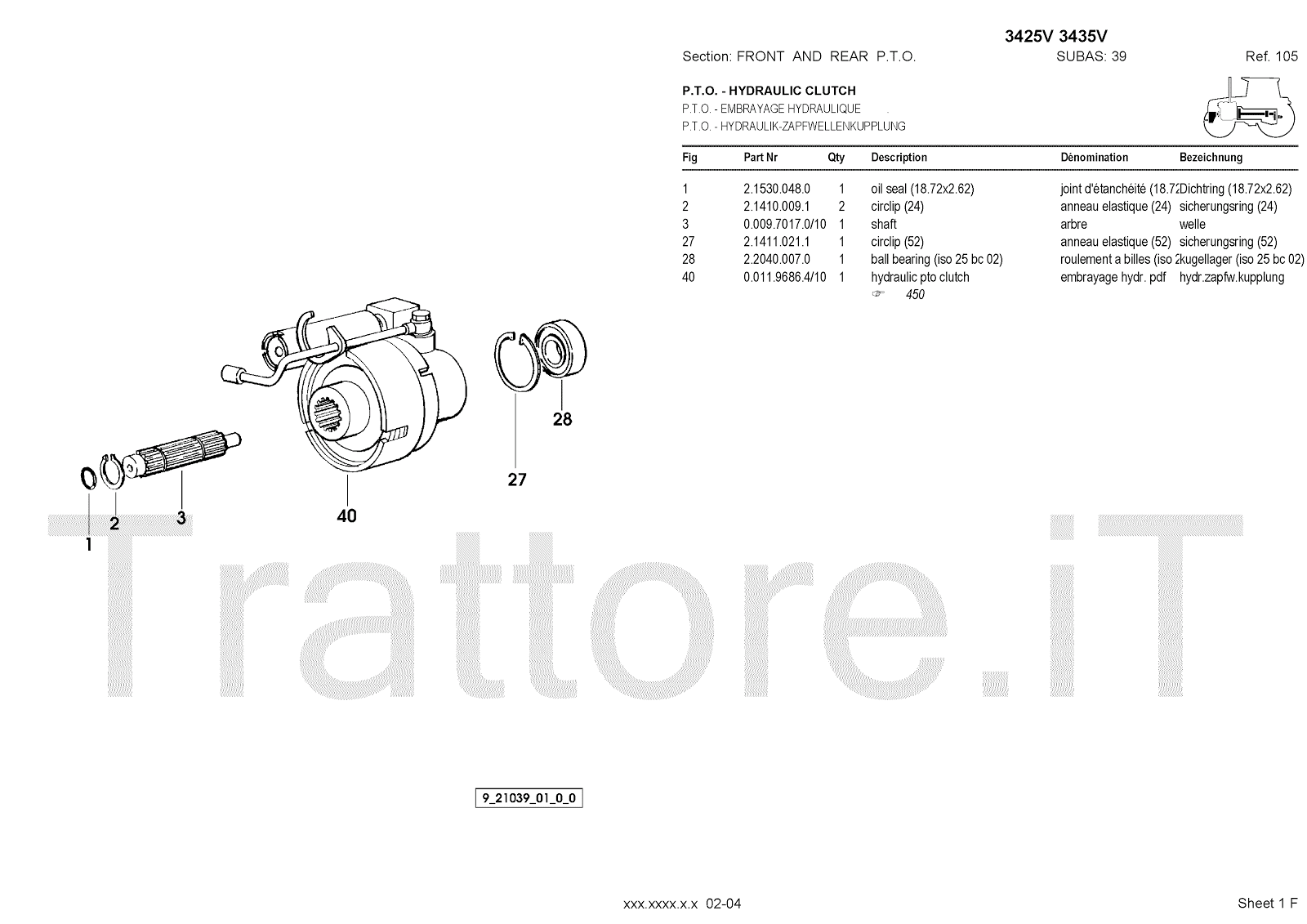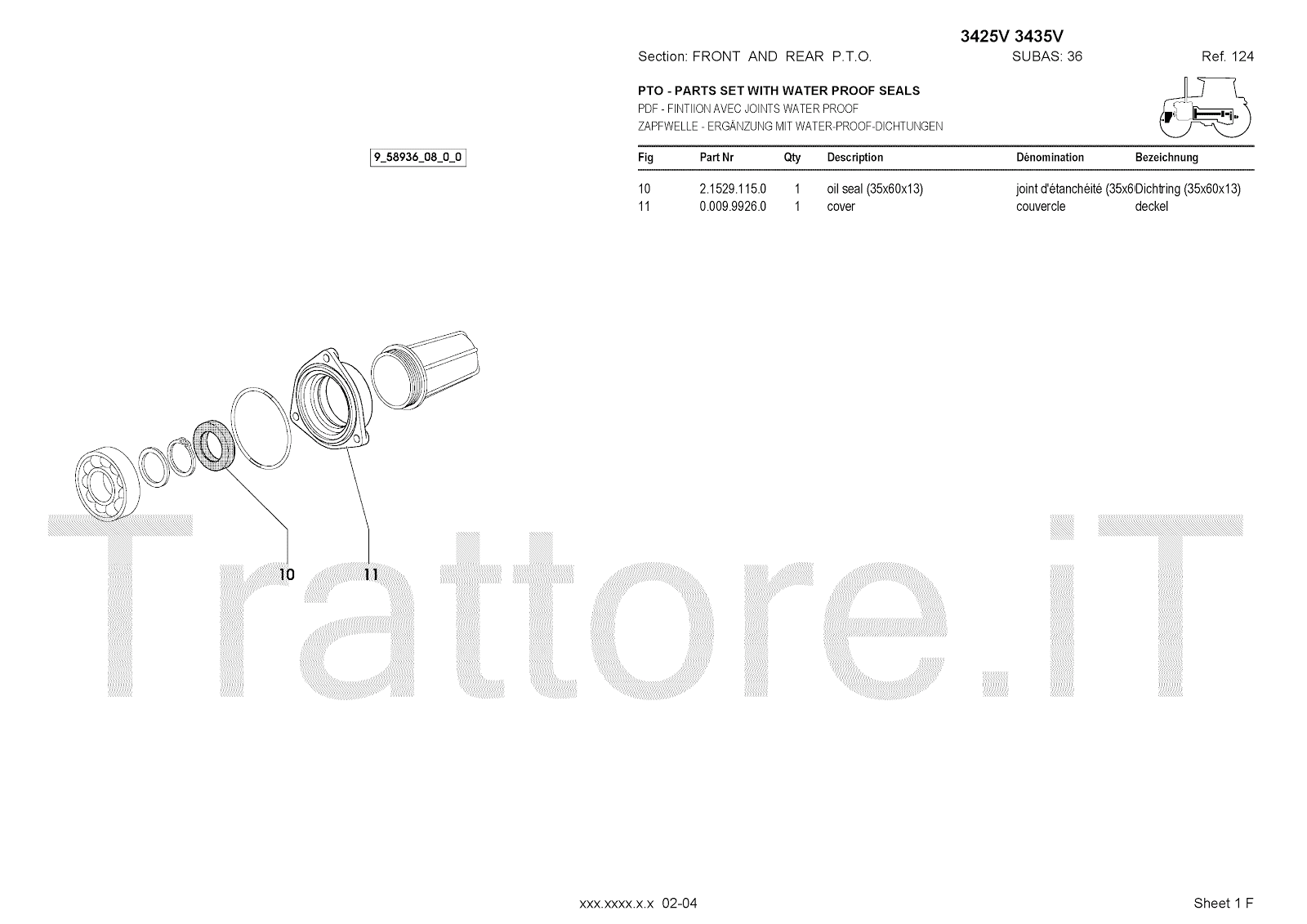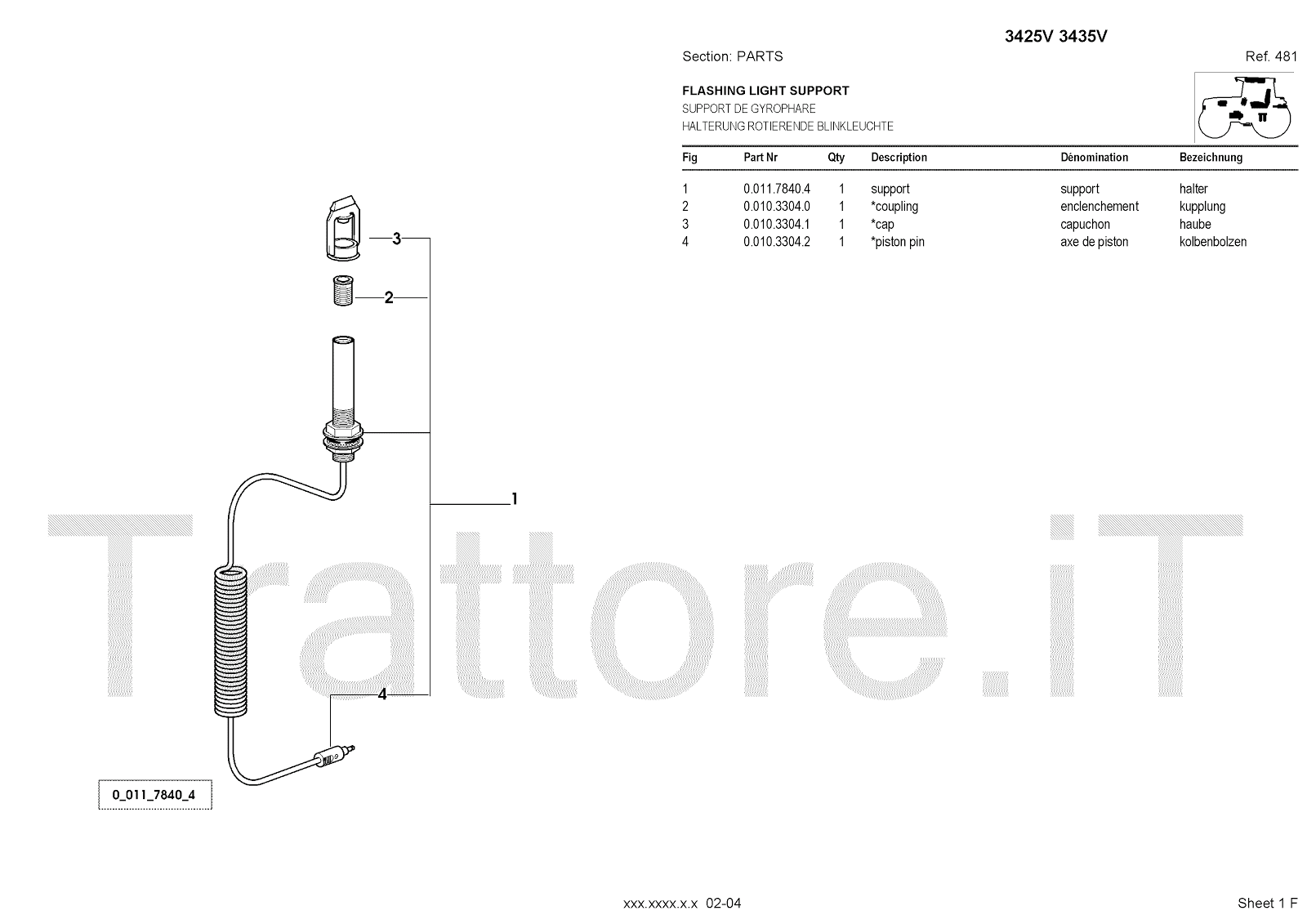 Manuale (esploso meccanico) per trattore / trattrice Massey Ferguson 3425V