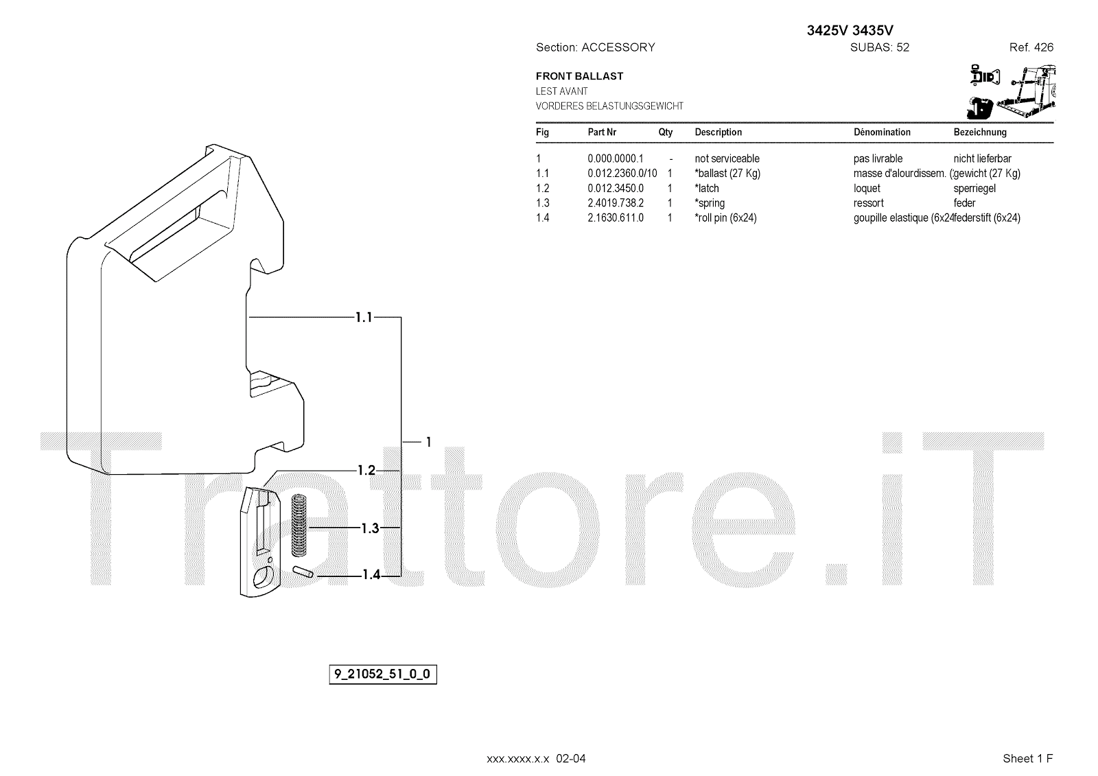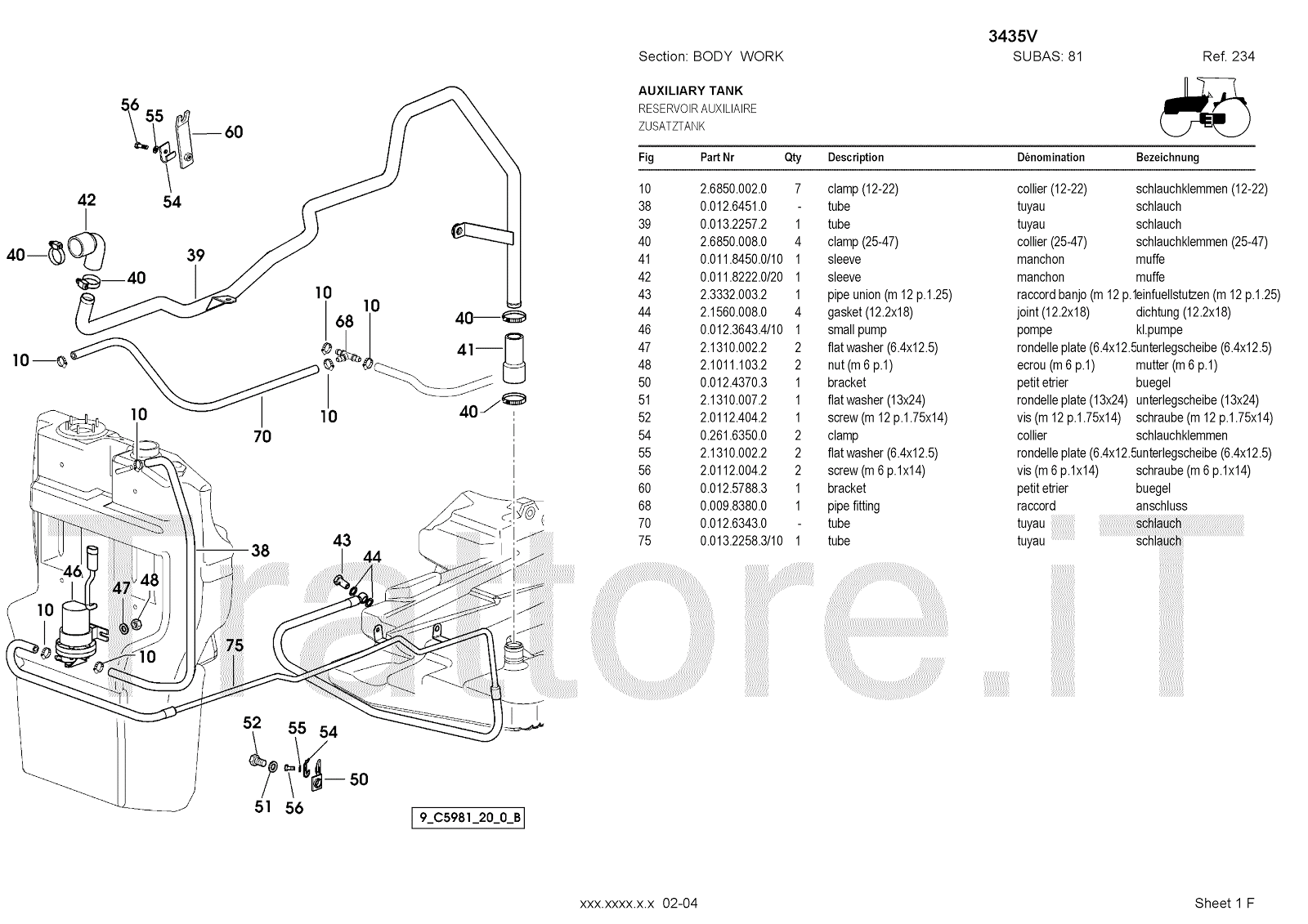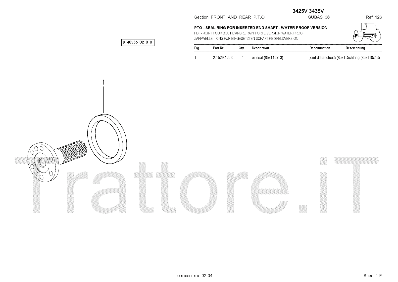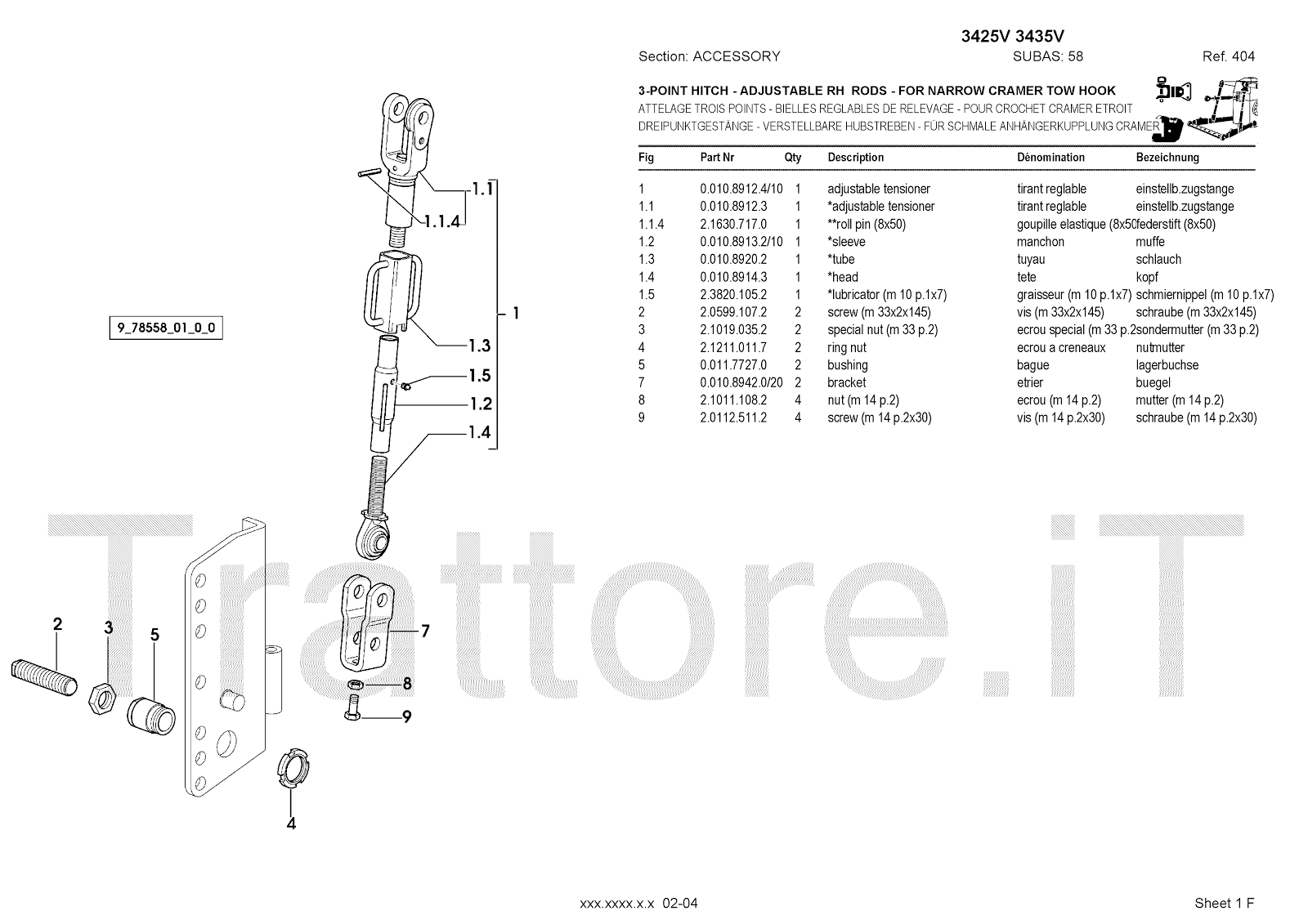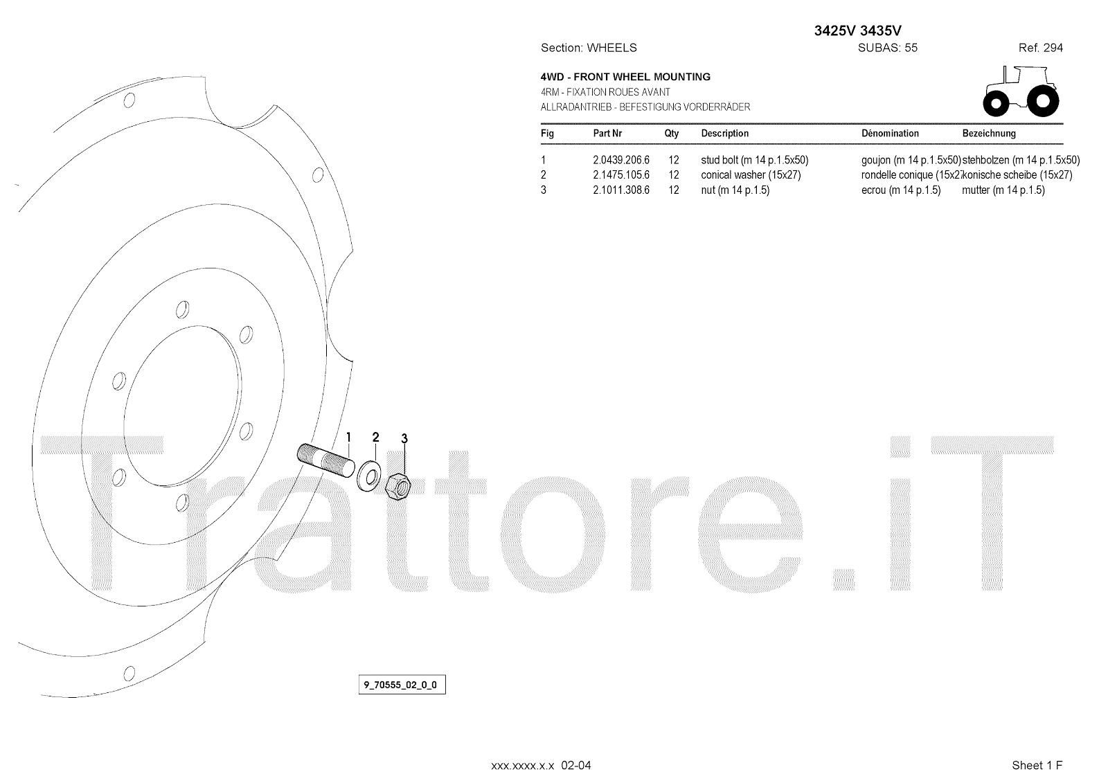 Manuale (esploso meccanico) per trattore / trattrice Massey Ferguson 3425V
