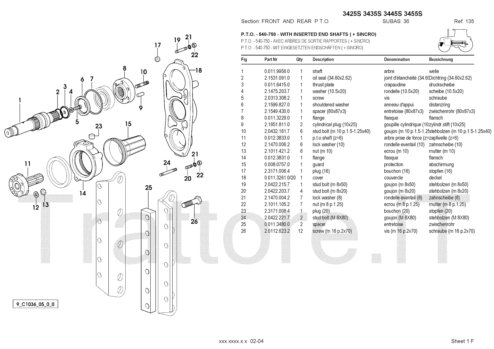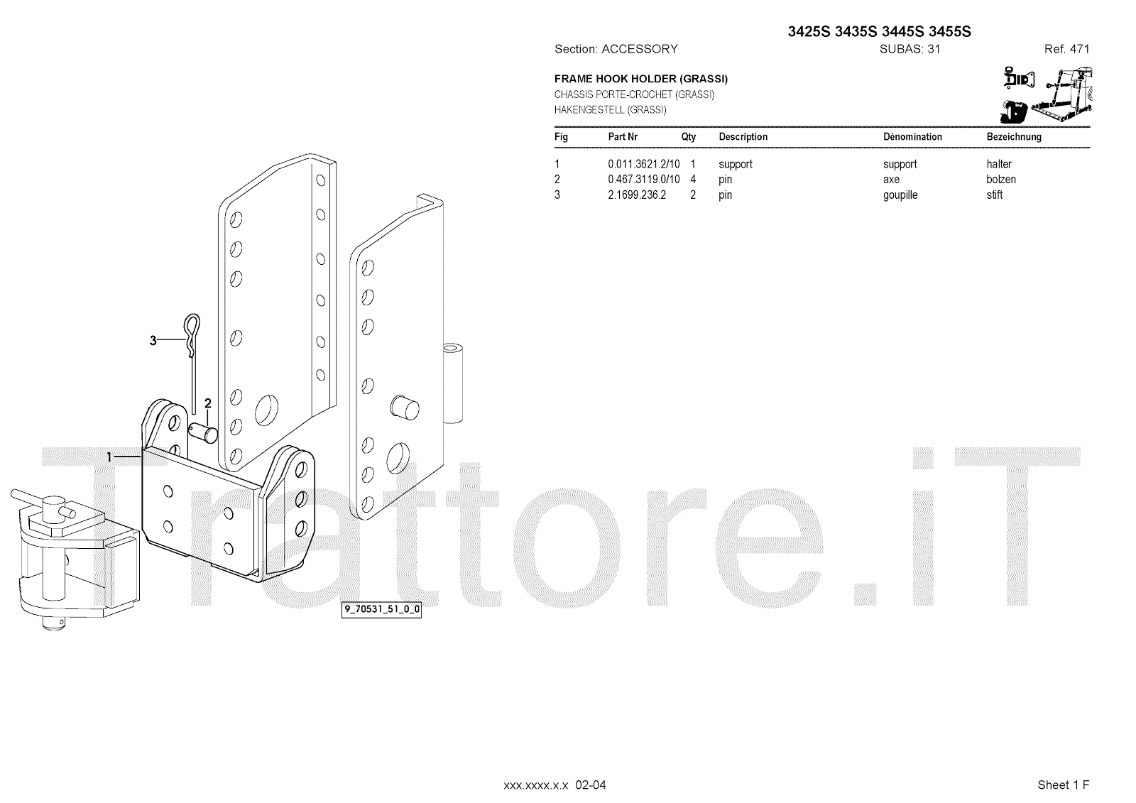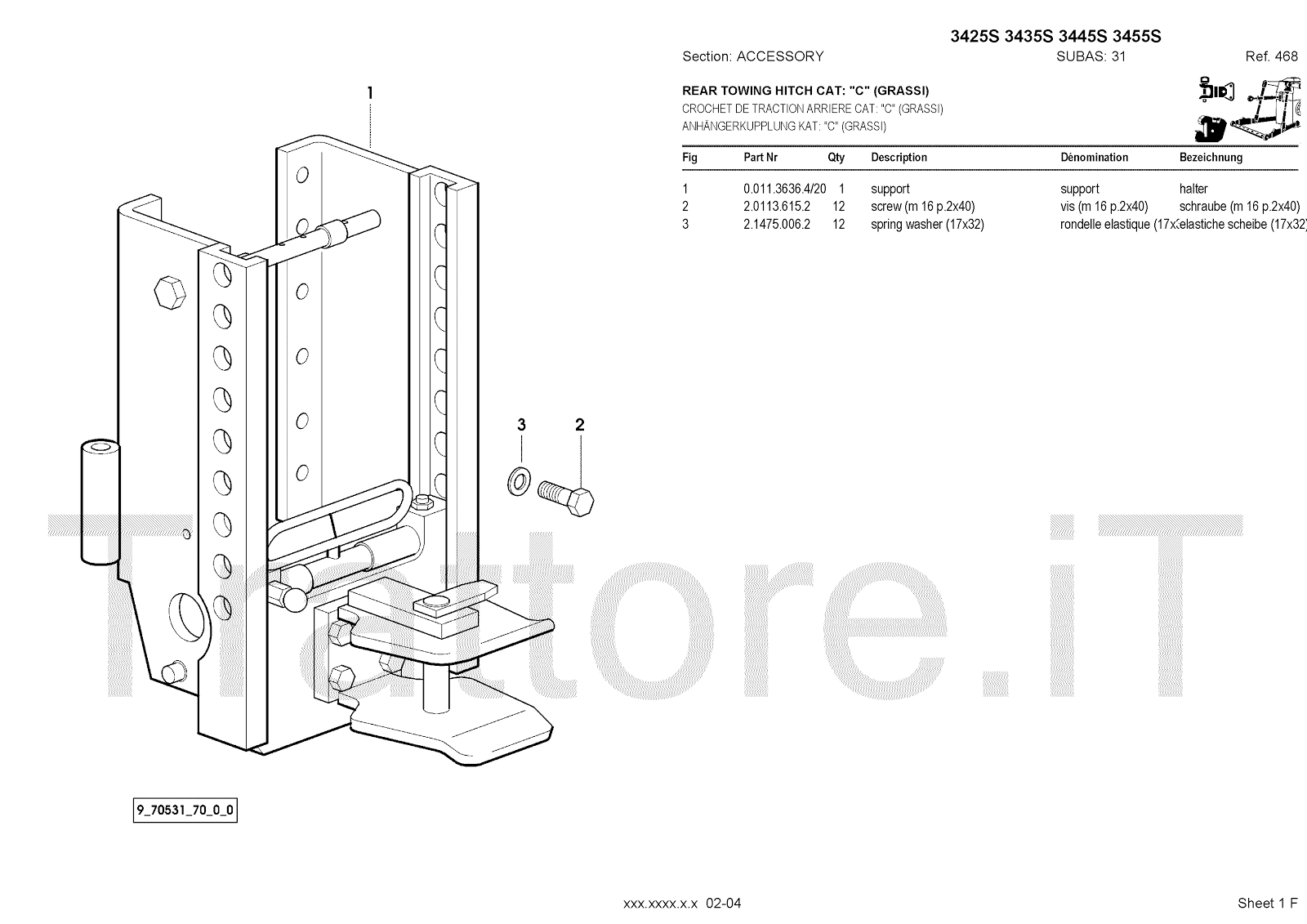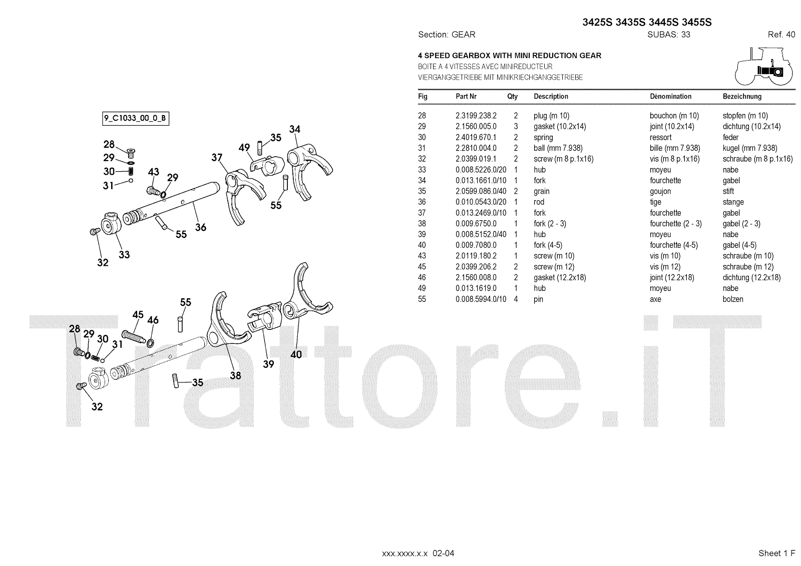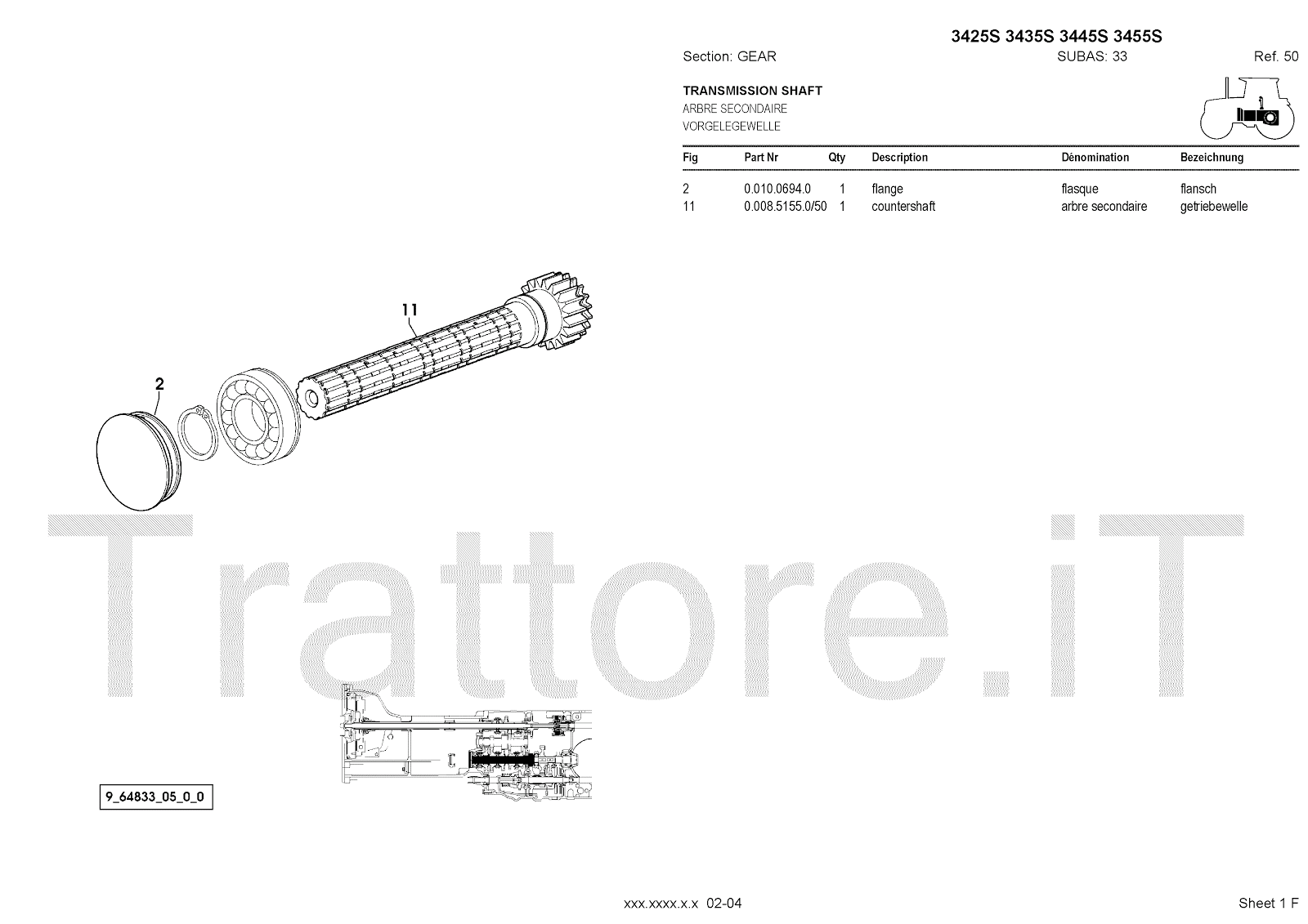 Manuale (esploso meccanico) per trattore / trattrice Massey Ferguson 3445S