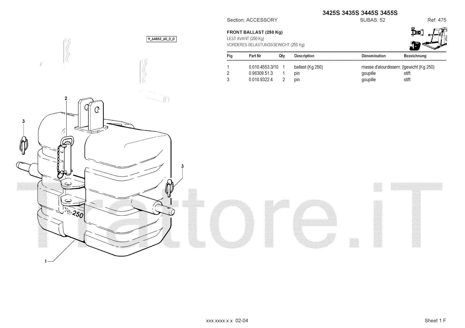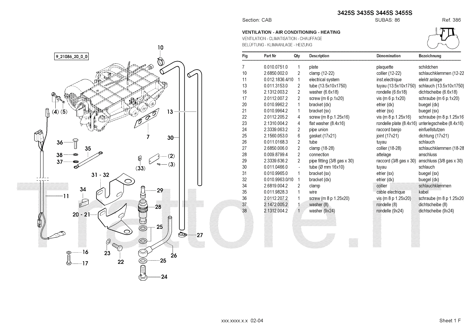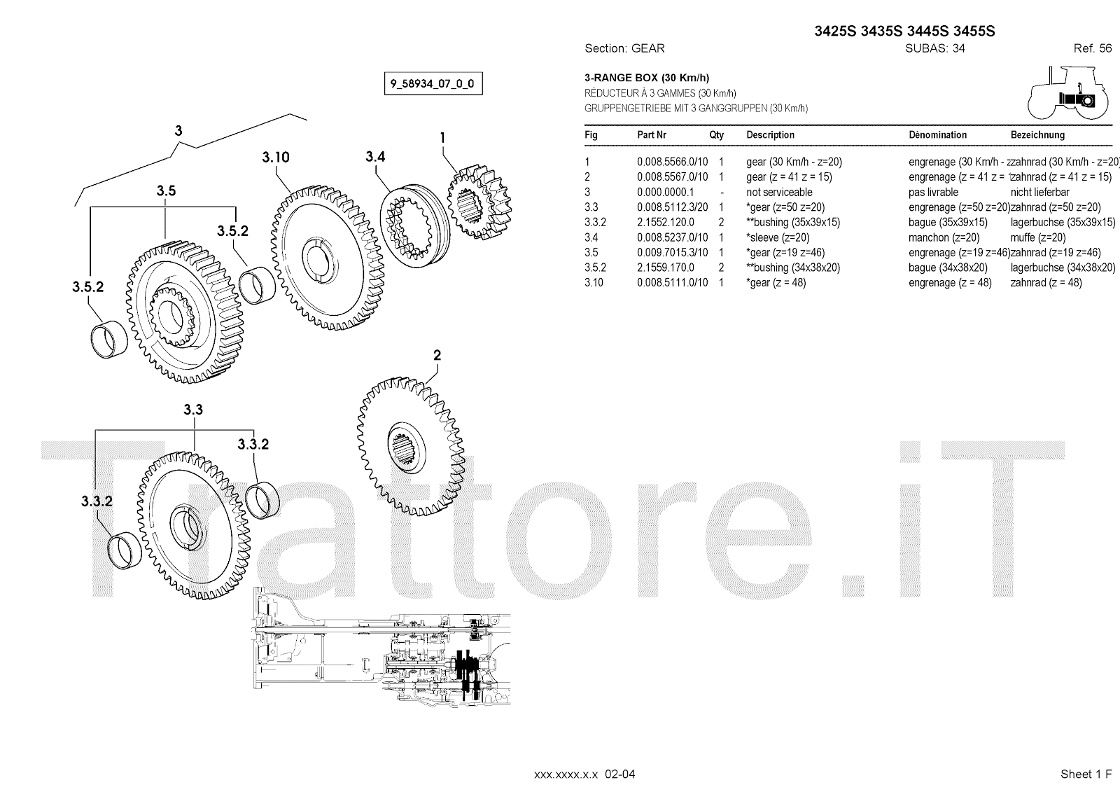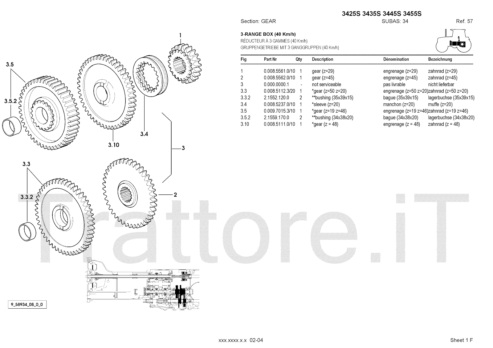 Manuale (esploso meccanico) per trattore / trattrice Massey Ferguson 3435S