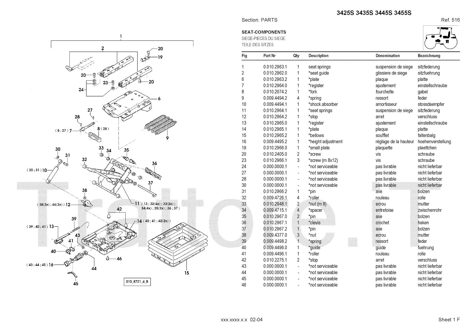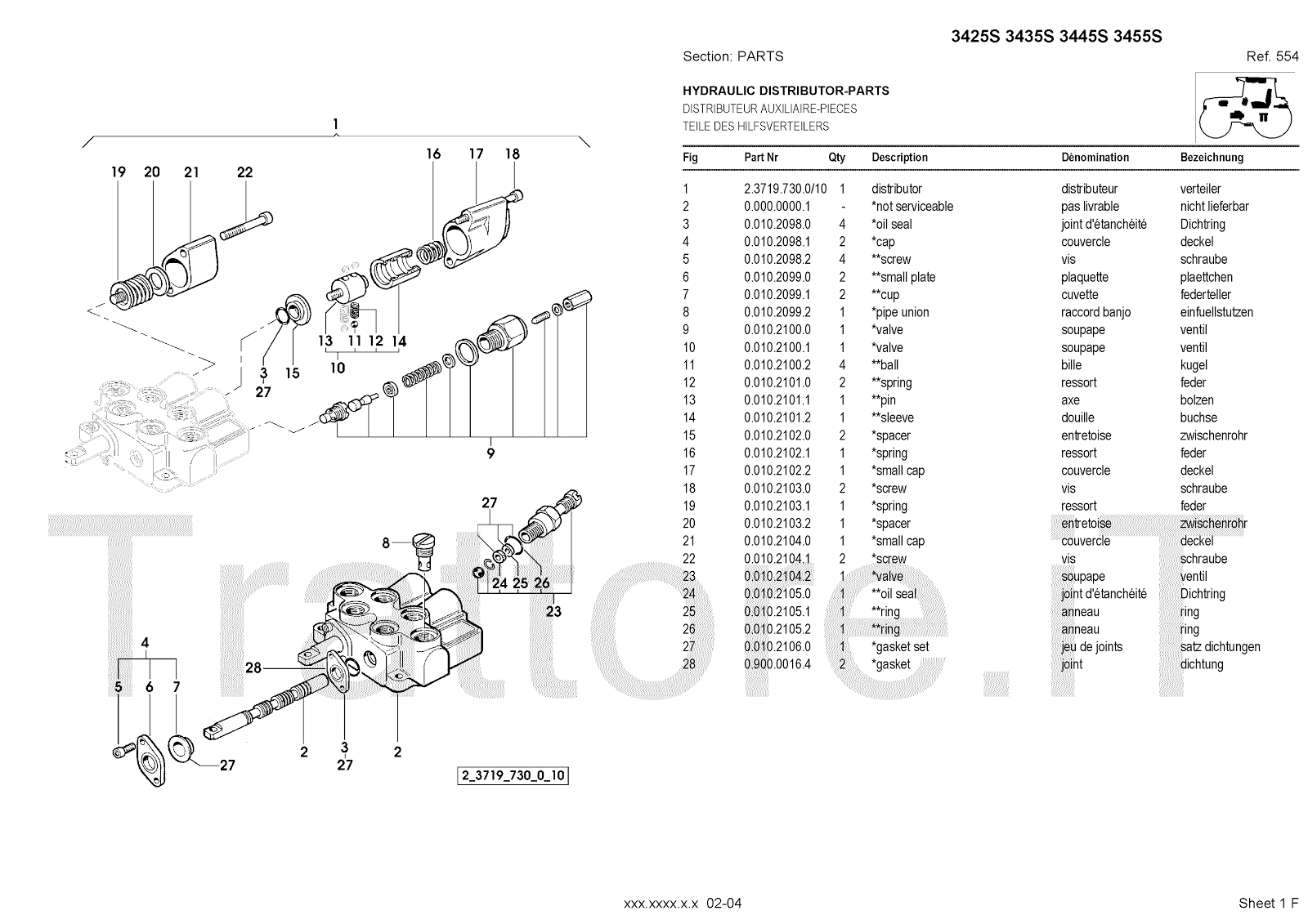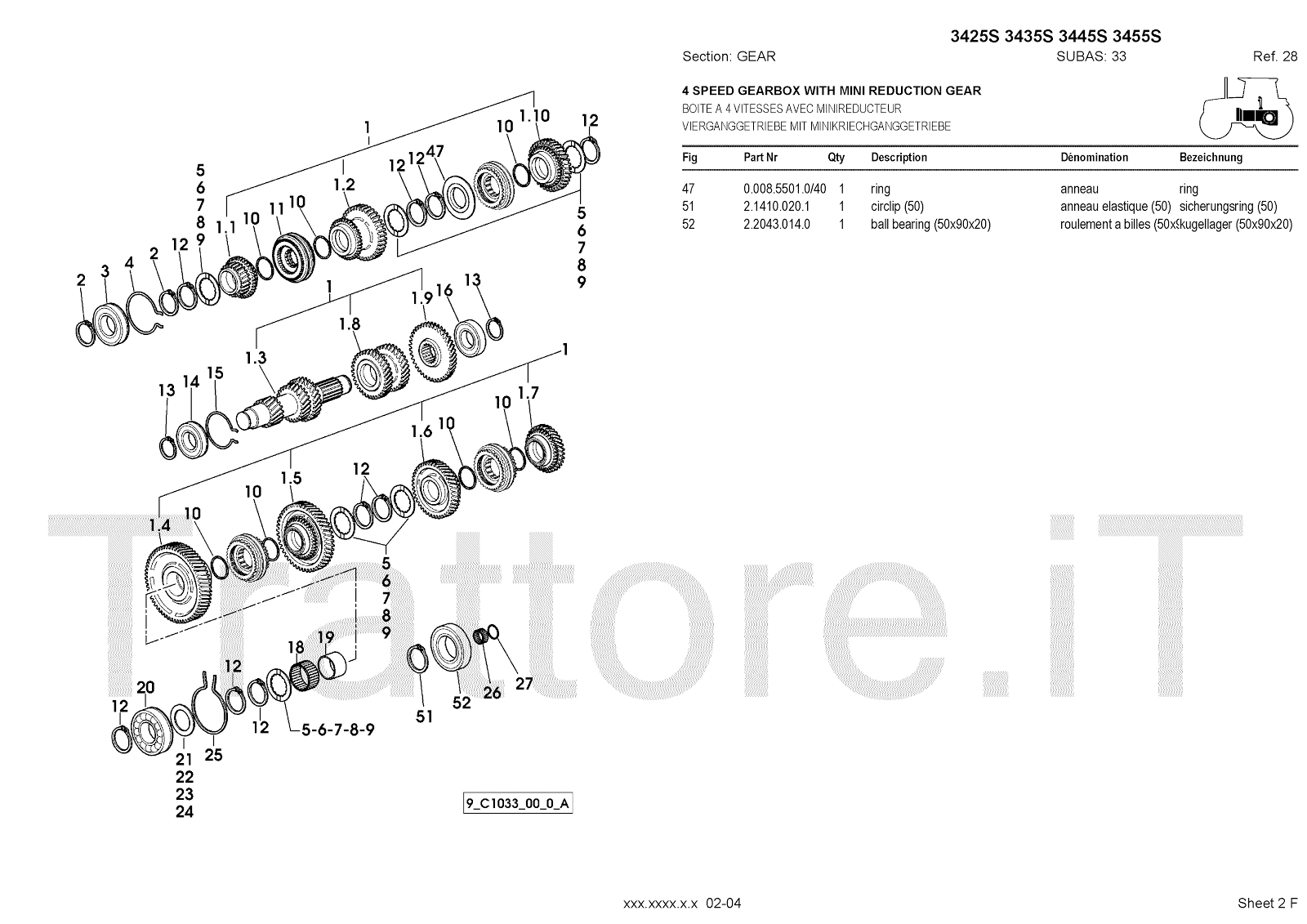 Manuale (esploso meccanico) per trattore / trattrice Massey Ferguson 3435S