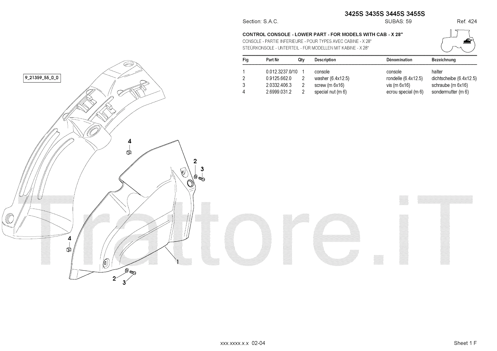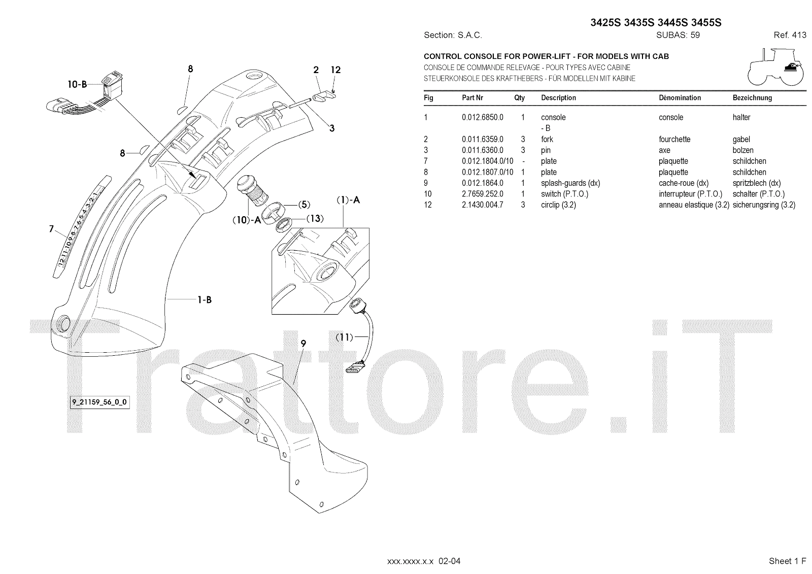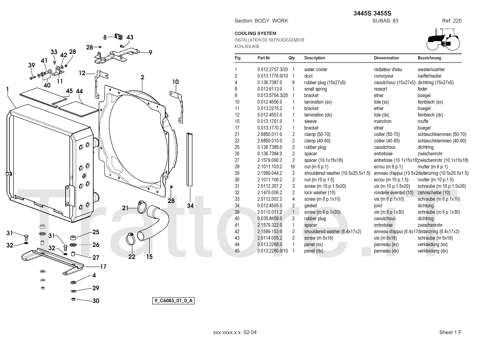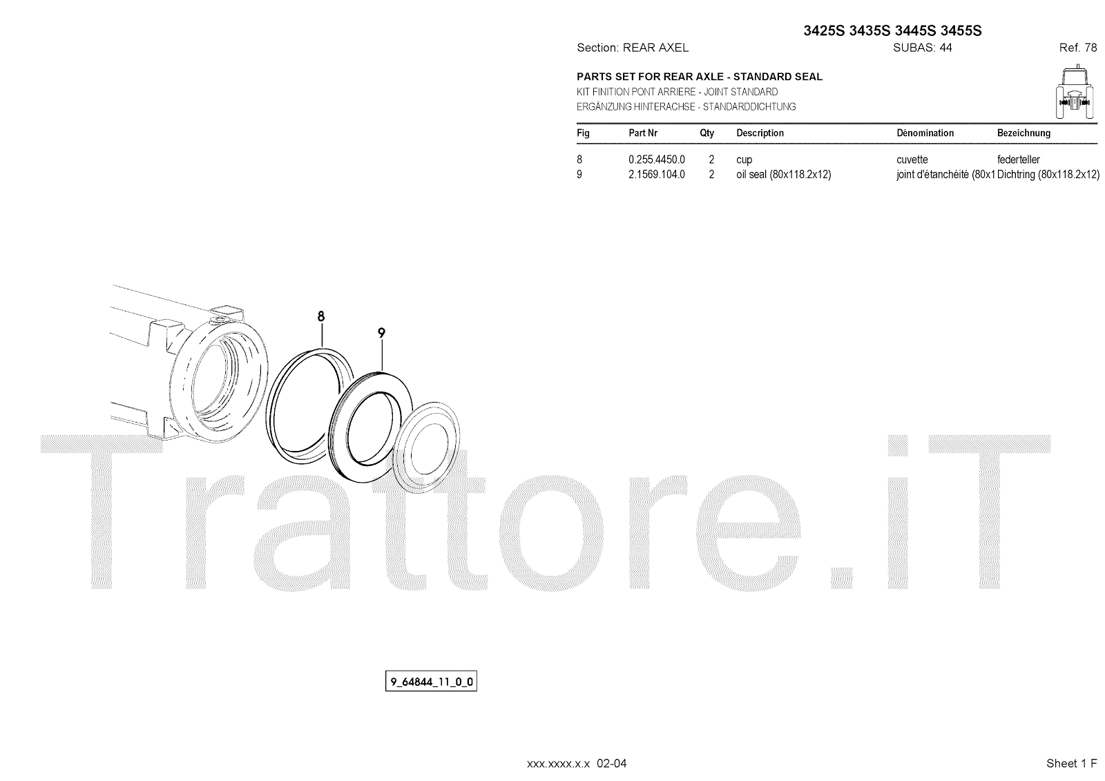 Manuale (esploso meccanico) per trattore / trattrice Massey Ferguson 3435S