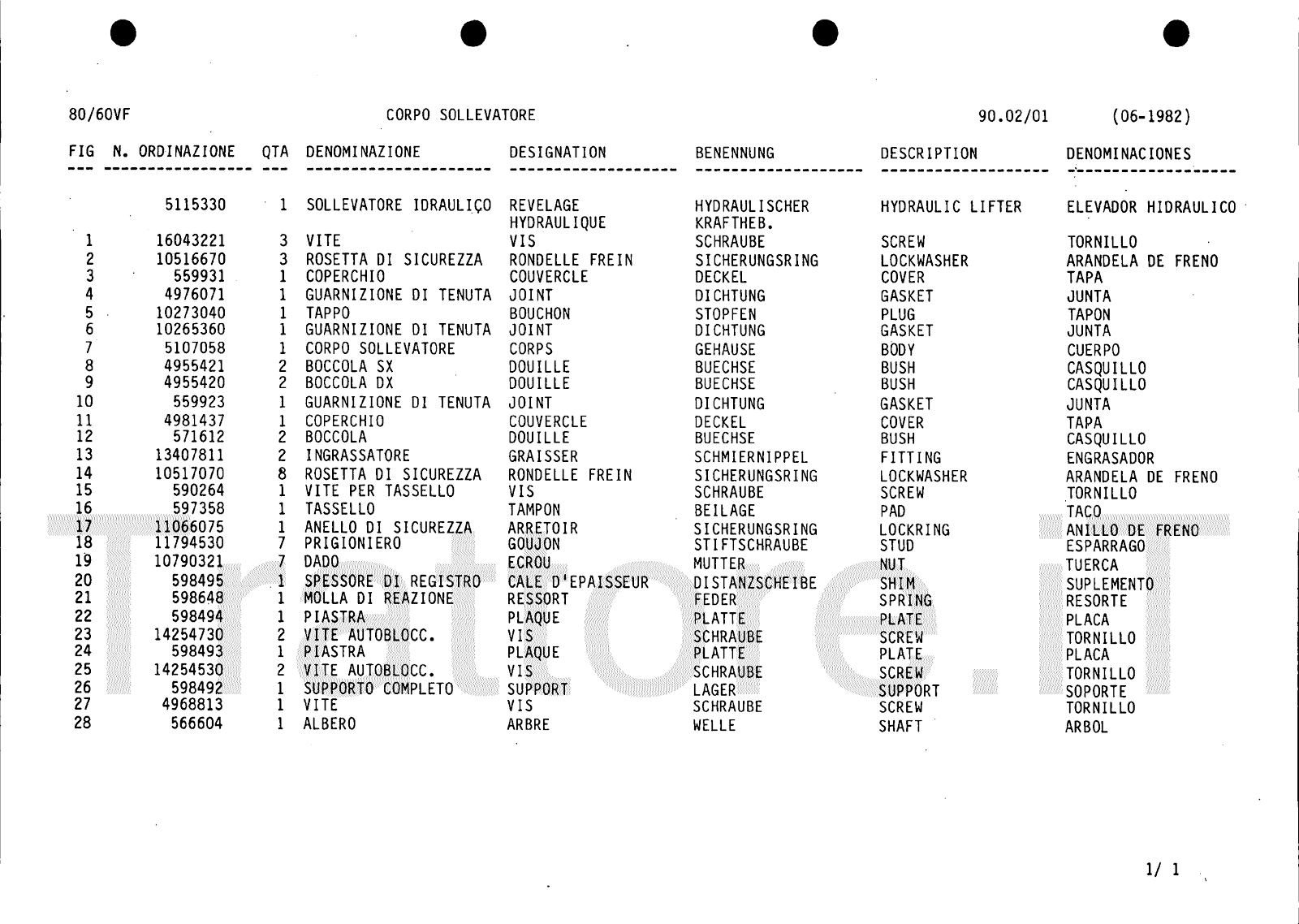 Manuale (esploso meccanico) trattore Agrifull serie 80-60 V F 2AM DT