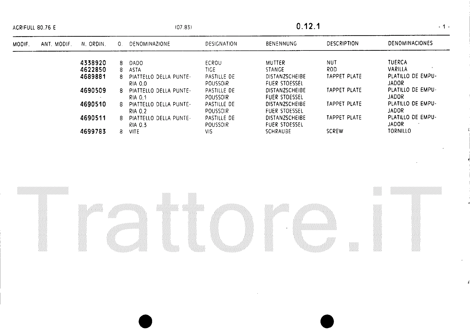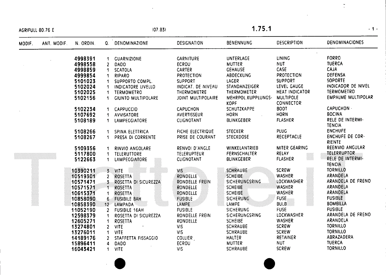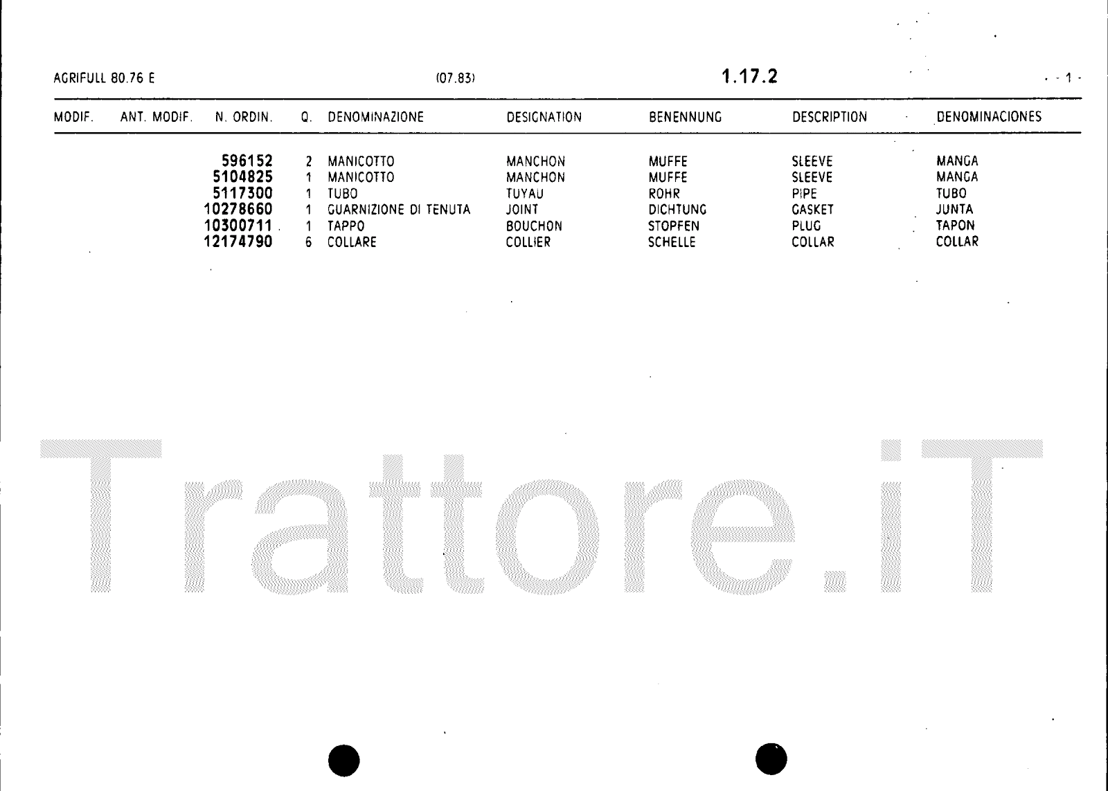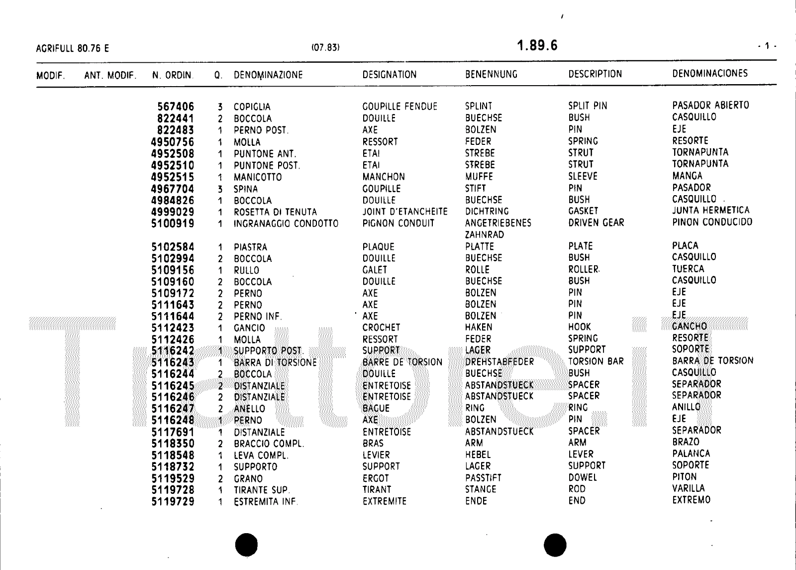 Manuale (esploso meccanico) trattore Agrifull serie 80-76E