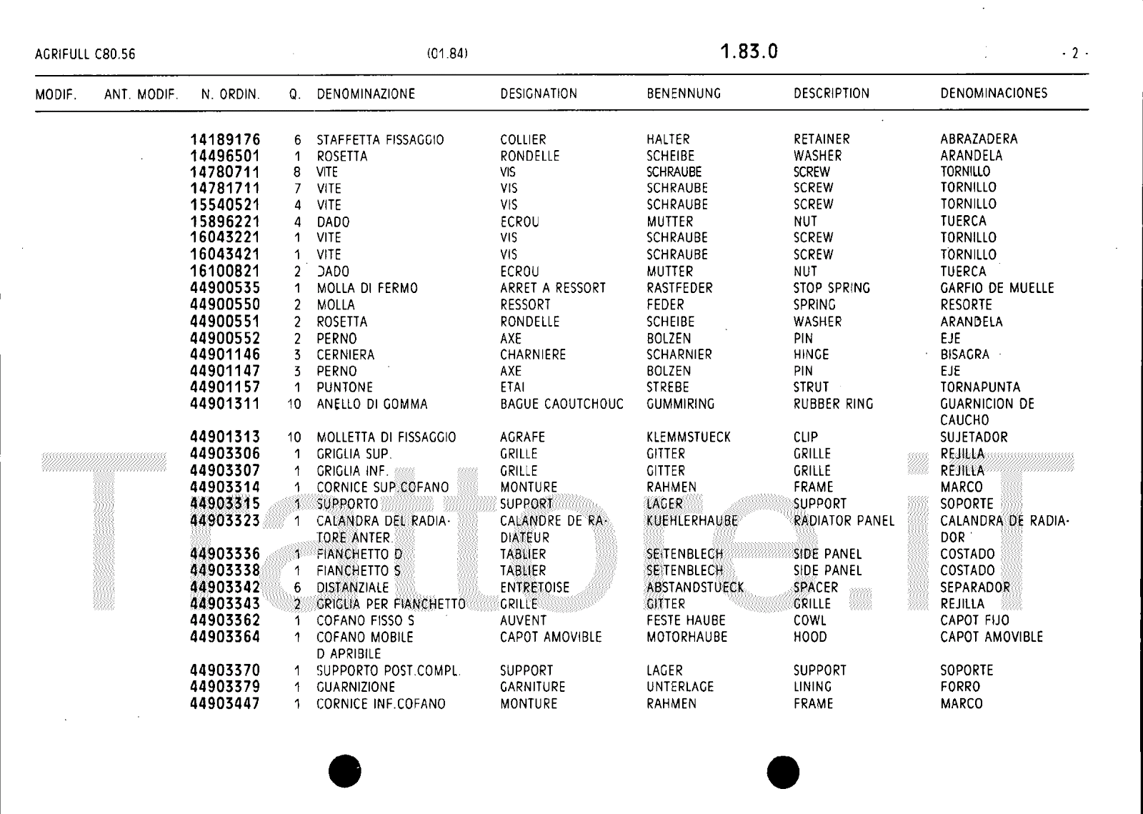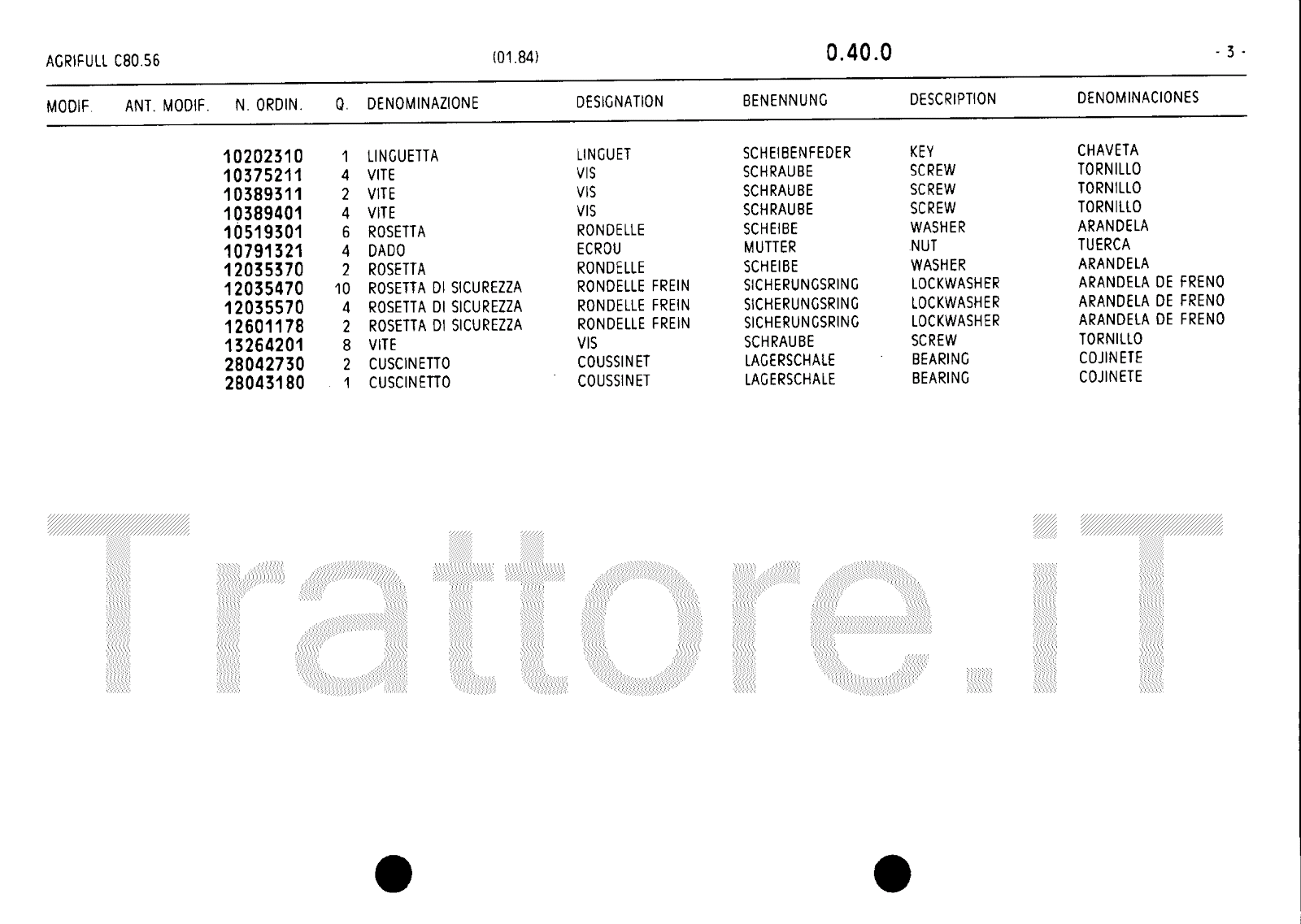 Manuale (esploso meccanico) trattore Agrifull serie C80-56