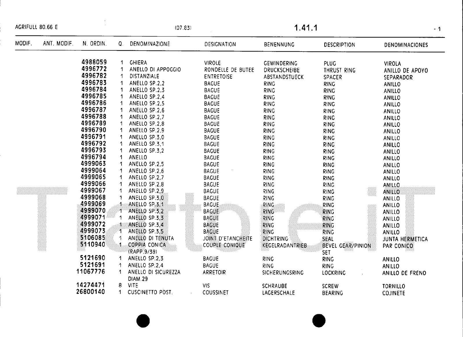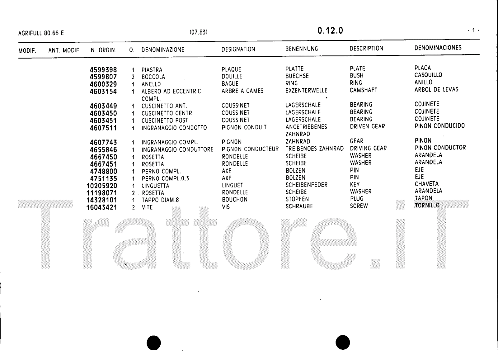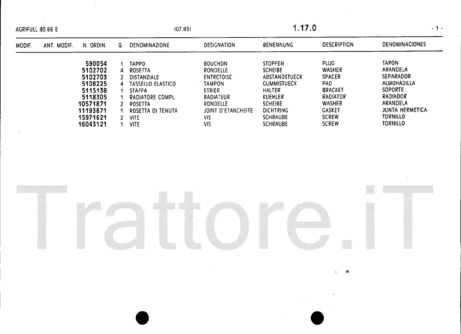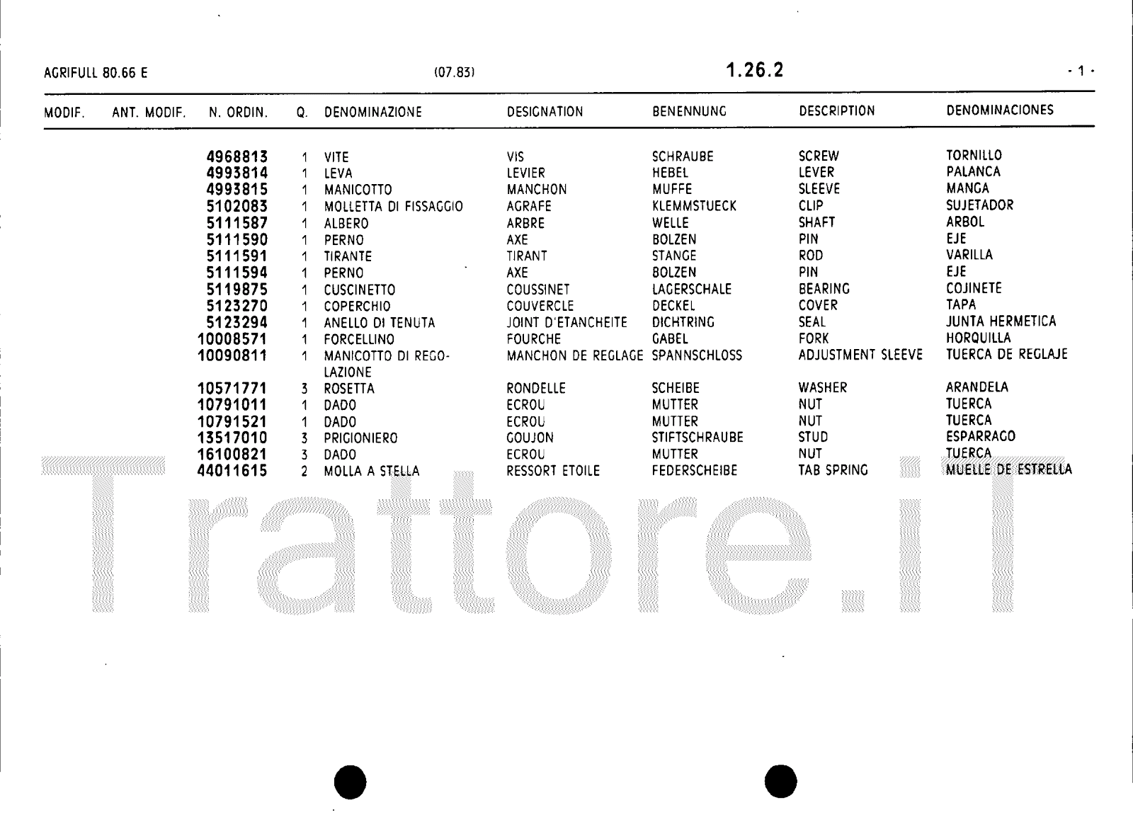 Manuale (esploso meccanico) trattore Agrifull serie 80-66E