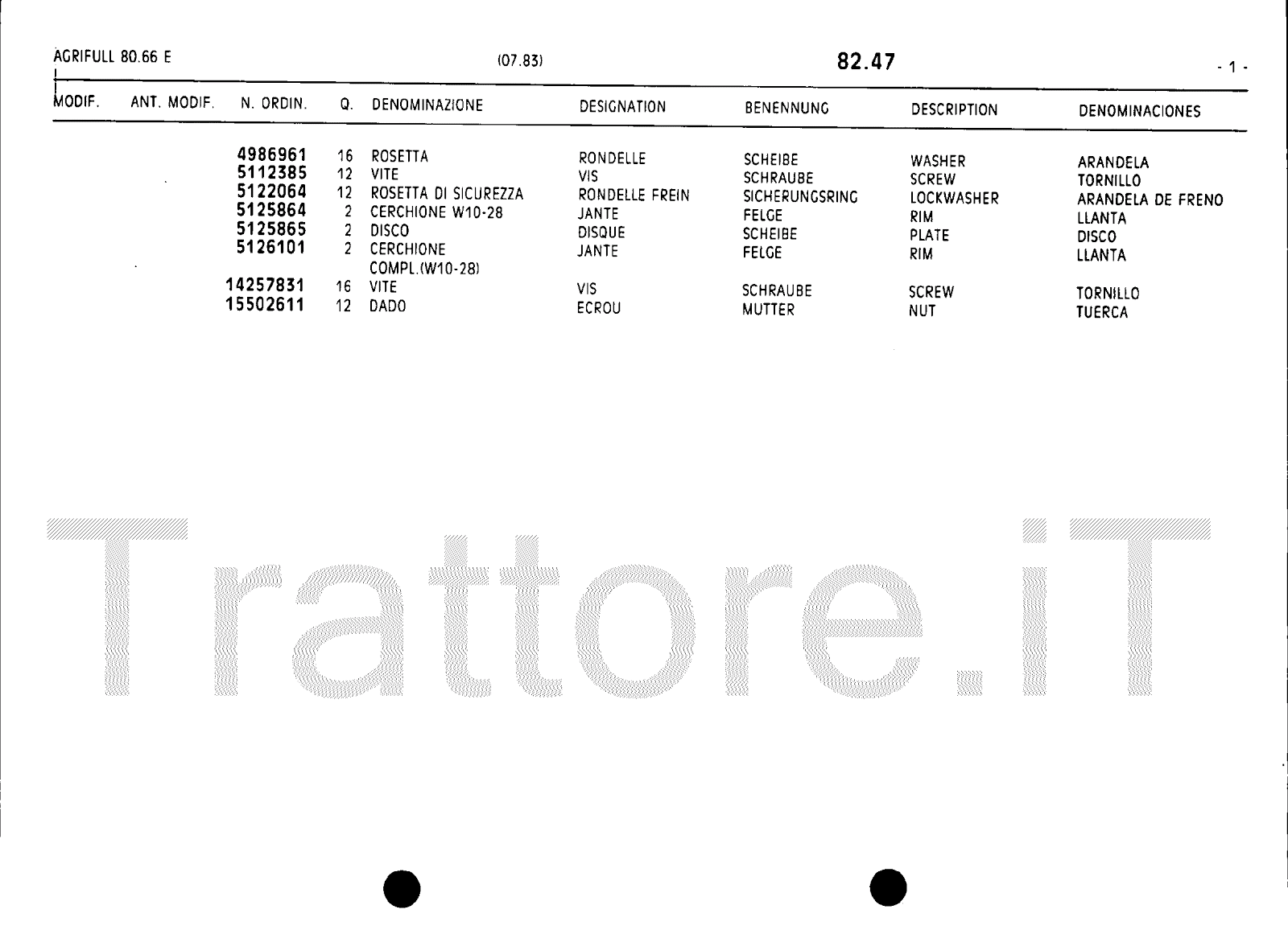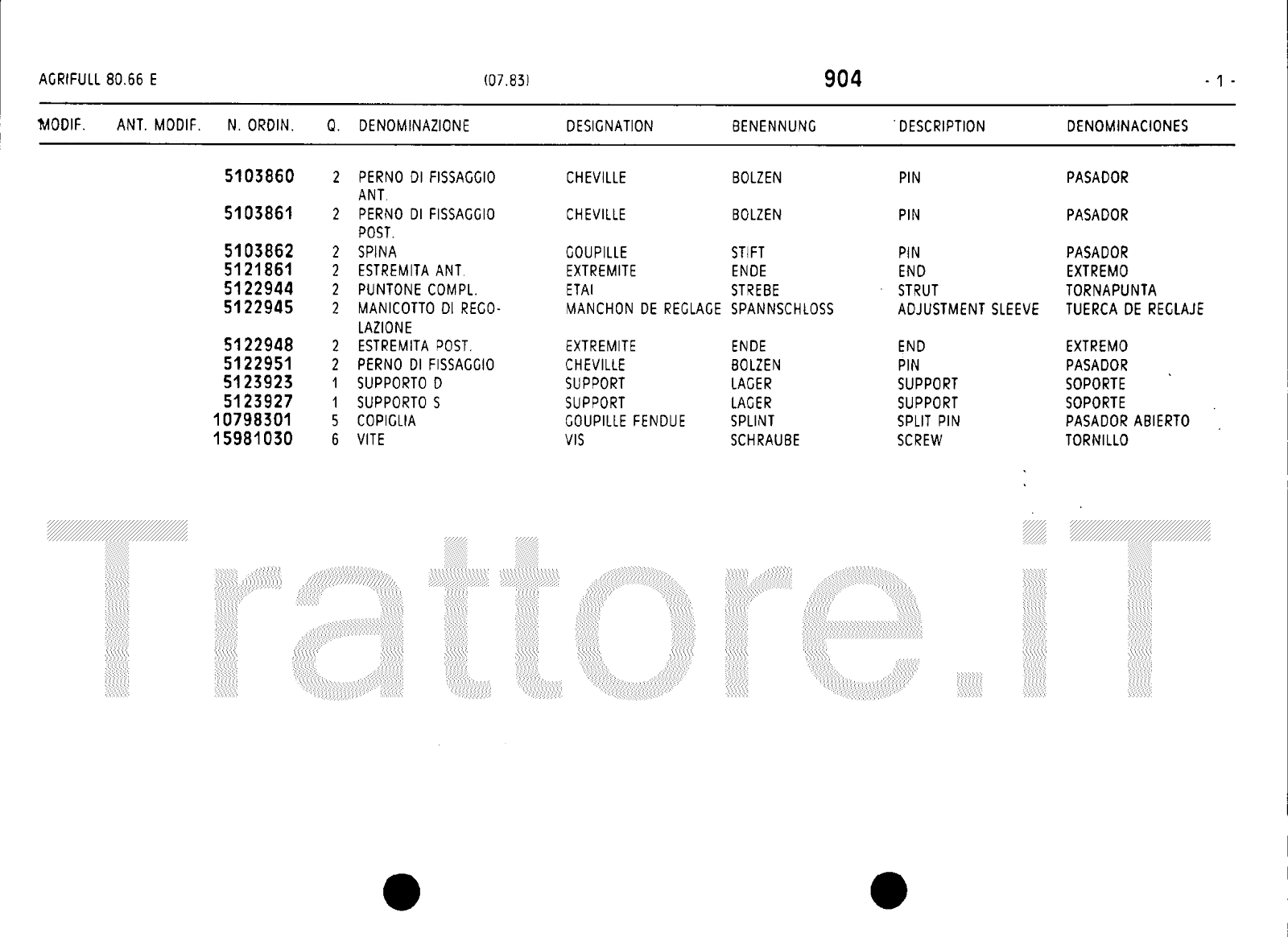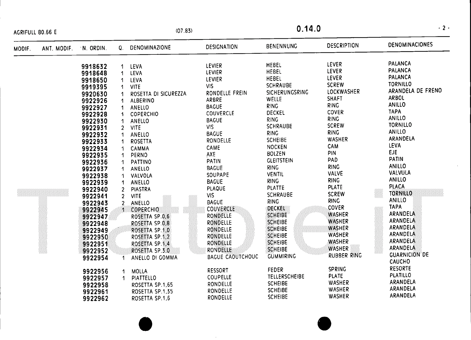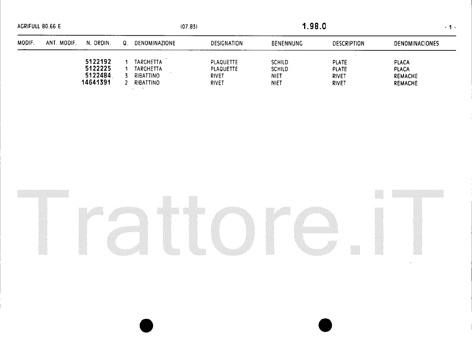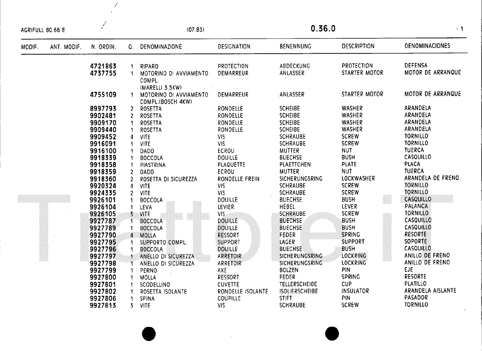 Manuale (esploso meccanico) trattore Agrifull serie 80-66E