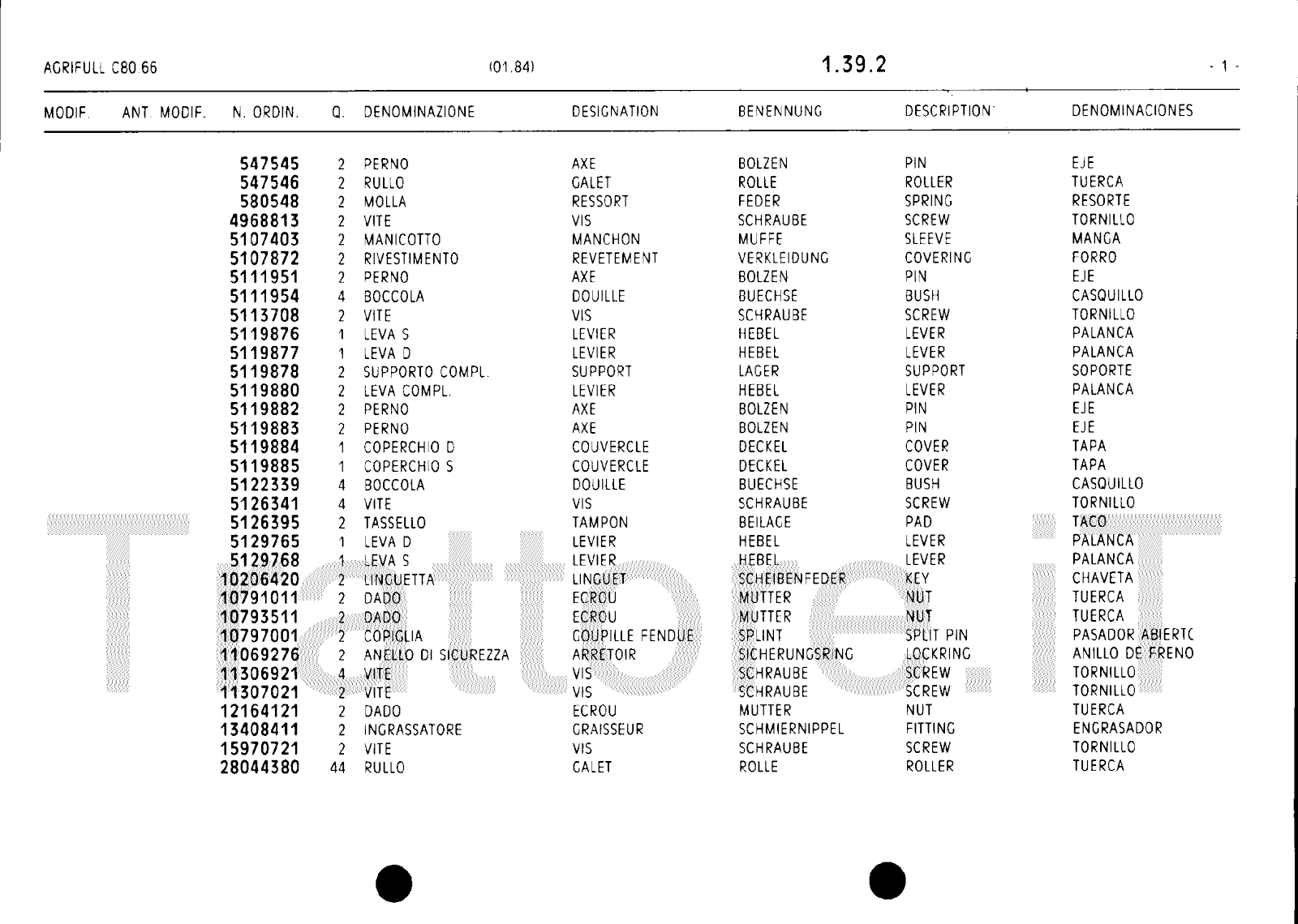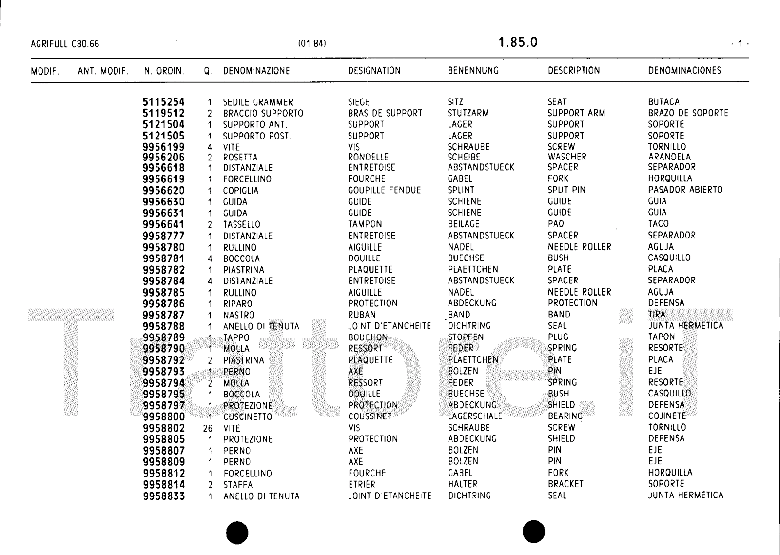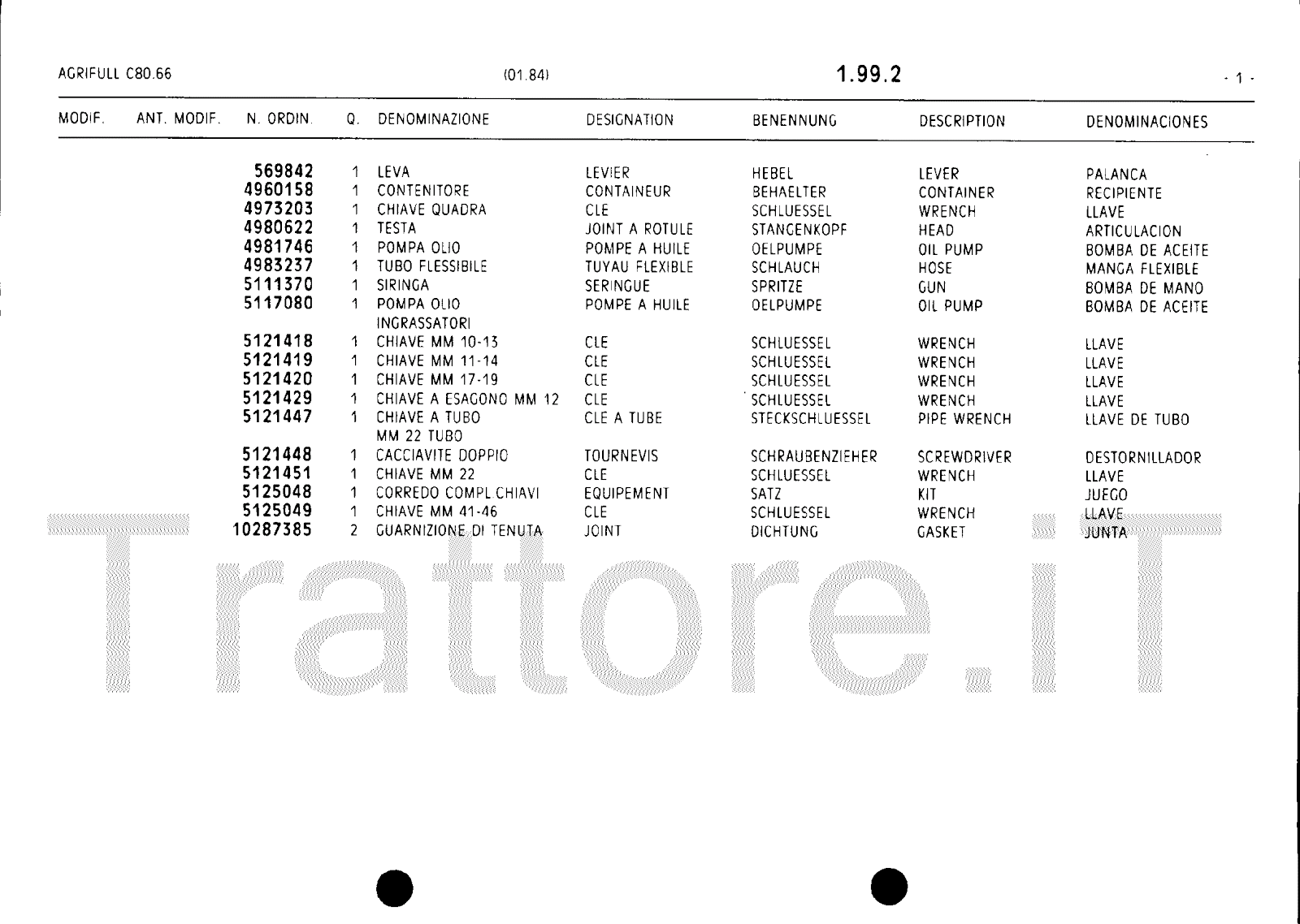 Manuale (esploso meccanico) trattore Agrifull serie C80-66